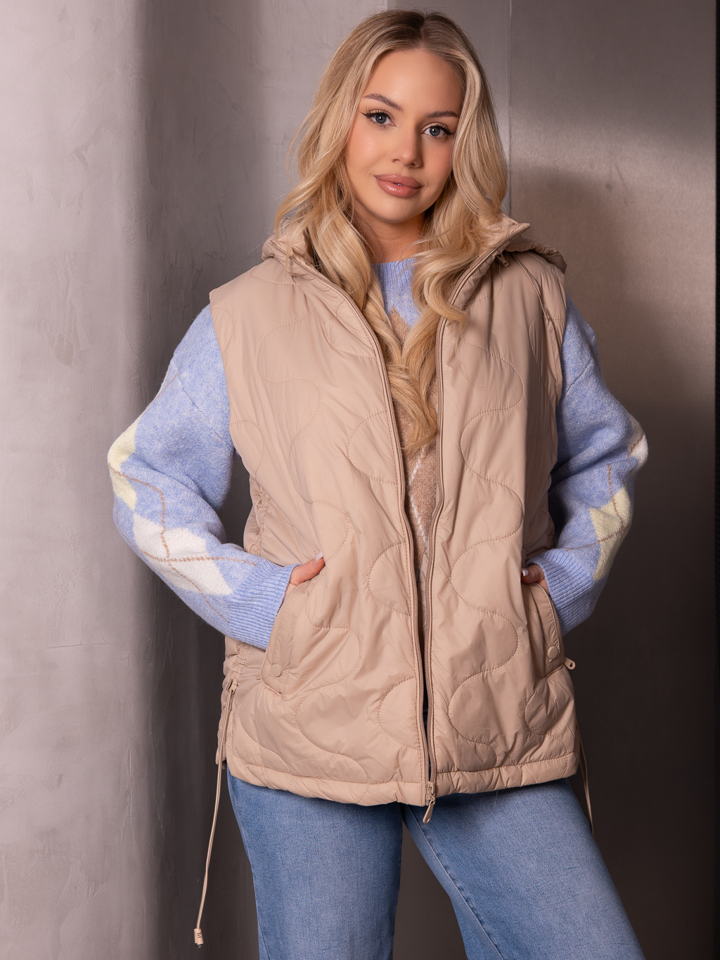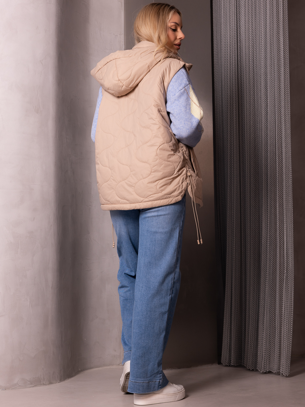 Bezrękawnik KAMIZELKA Pikowana Ściągacze ZEFIRA - Beż