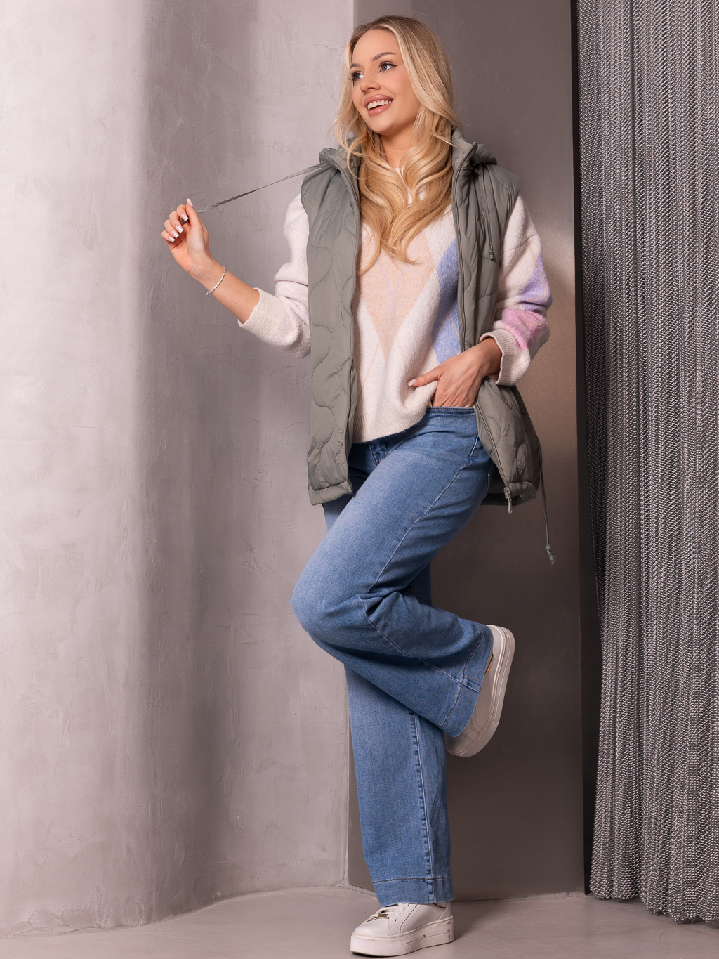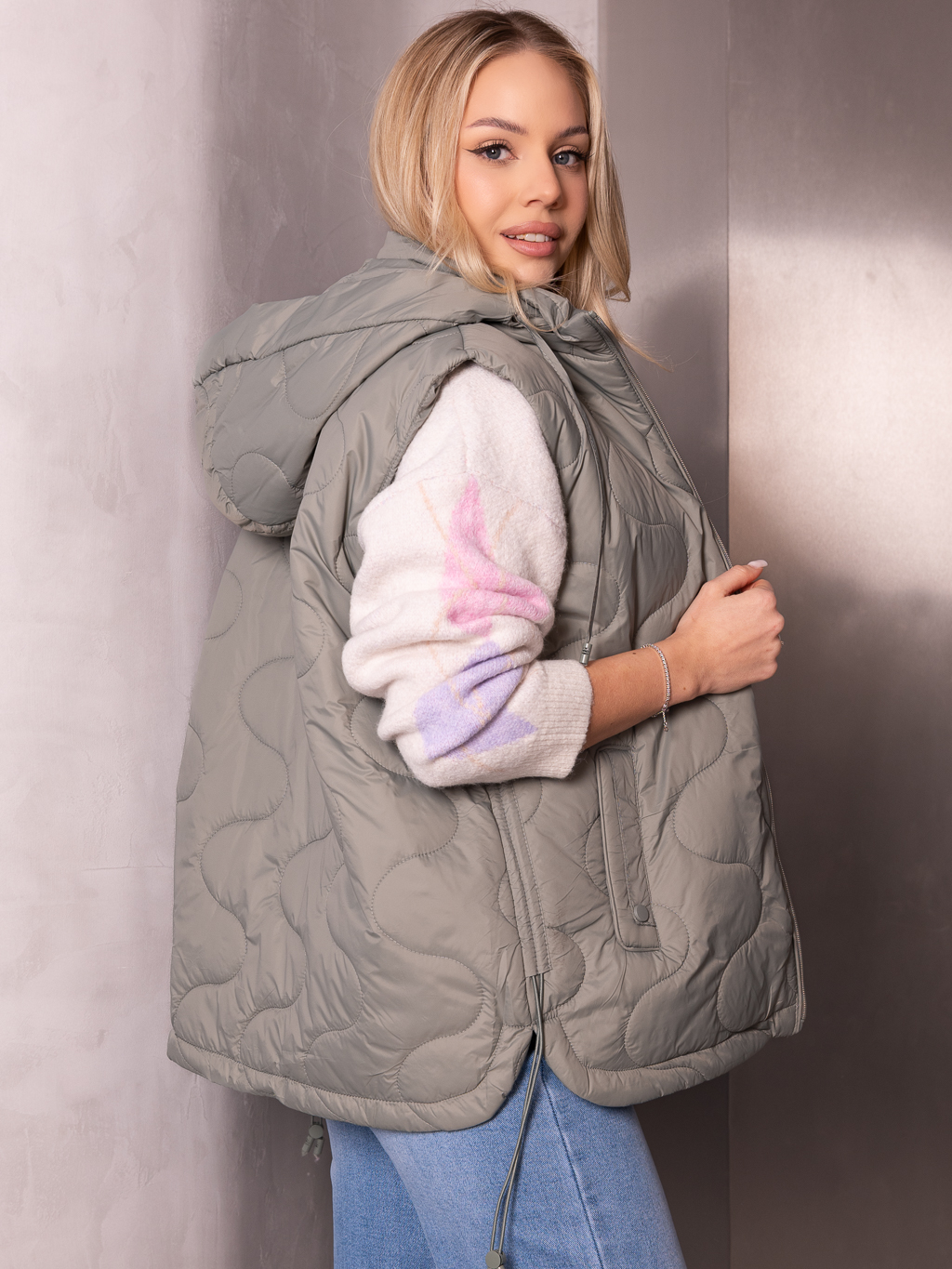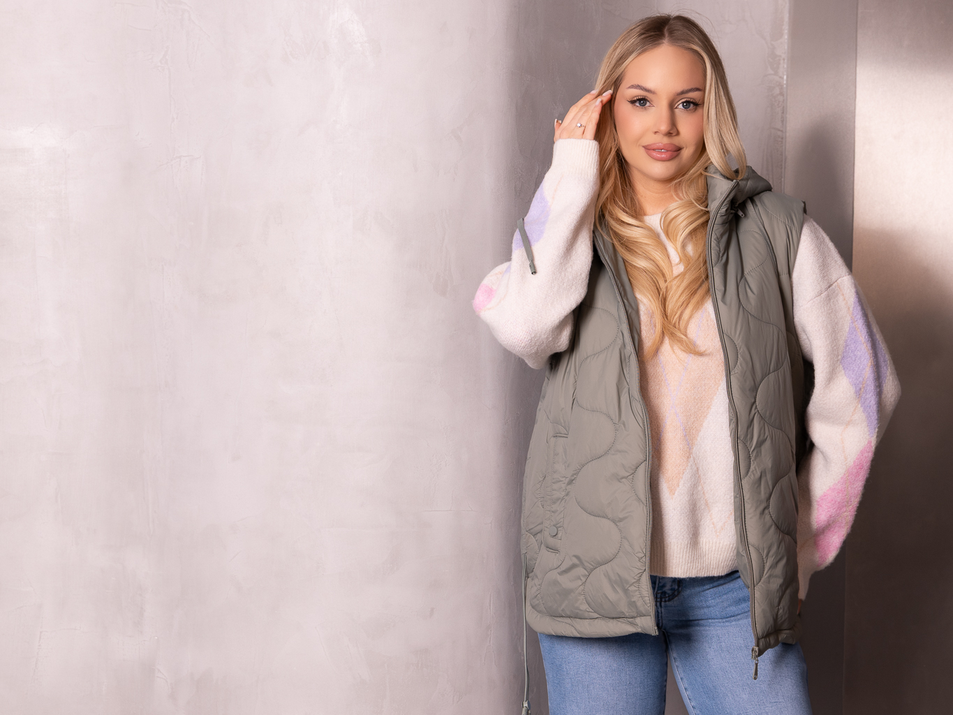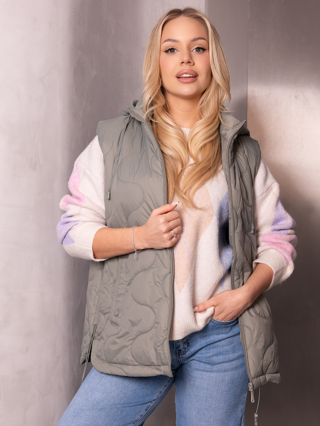 Bezrękawnik KAMIZELKA Pikowana Ściągacze ZEFIRA - Oliwka