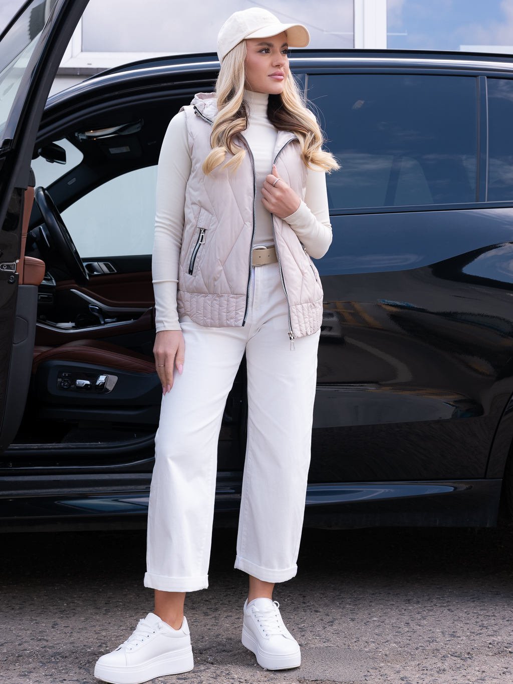 KAMIZELKA Bezrękawnik ZYGZAKI Pikowanie ZELARIA - Beż