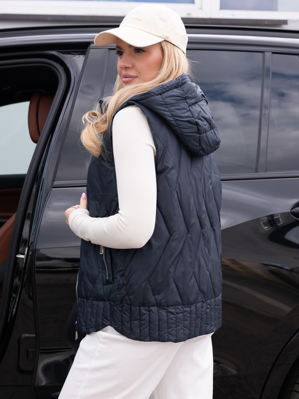 Stylowa kamizelka pikowana, która świetnie sprawdzi się w codziennych stylizacjach w chłodniejsze dni. Model wyróżnia się nowoczesnym pikowaniem w modny wzór zygzaków, nadającym całości dynamiczny charakter. Kamizelka posiada praktyczne kieszenie zapinane na zamek, idealne do bezpiecznego przechowywania drobiazgów. Komfortowa i lekka konstrukcja sprawia, że doskonale leży na bluzie czy swetrze, a kaptur zapewnia dodatkową ochronę przed wiatrem i chłodem. Dzięki połączeniu stylu, funkcjonalności i wygody, kamizelka jest świetnym wyborem na co dzień, zarówno do spacerów, jak i miejskich stylizacji.