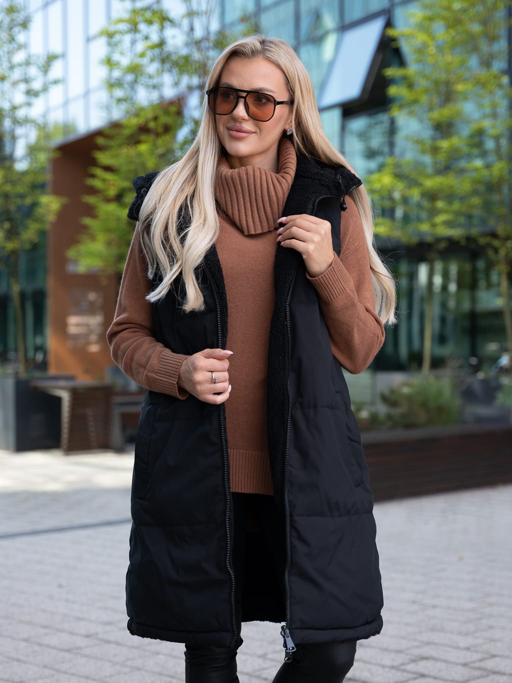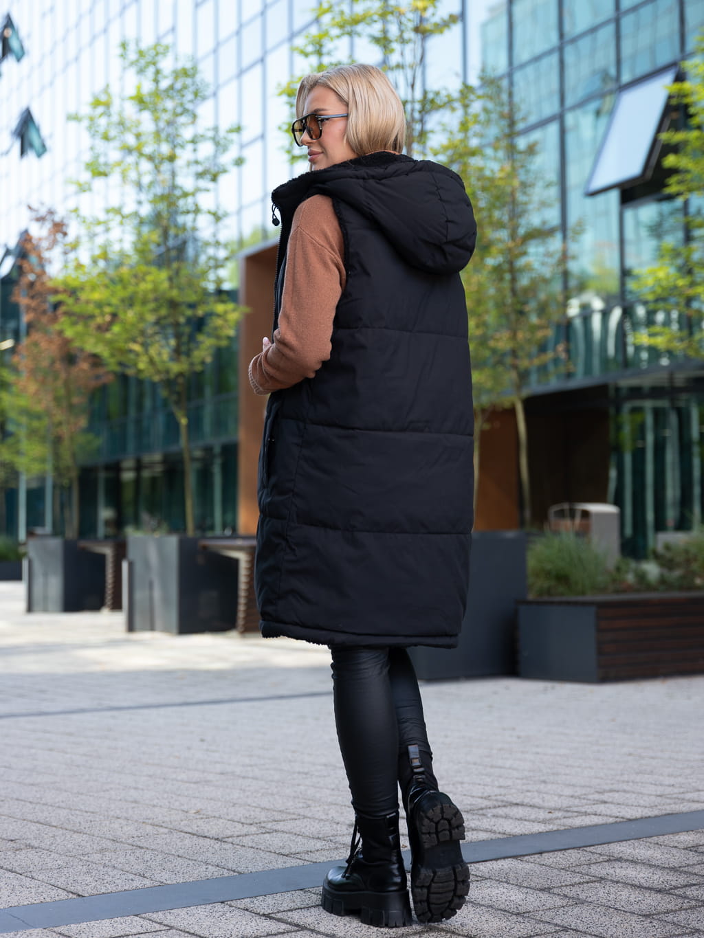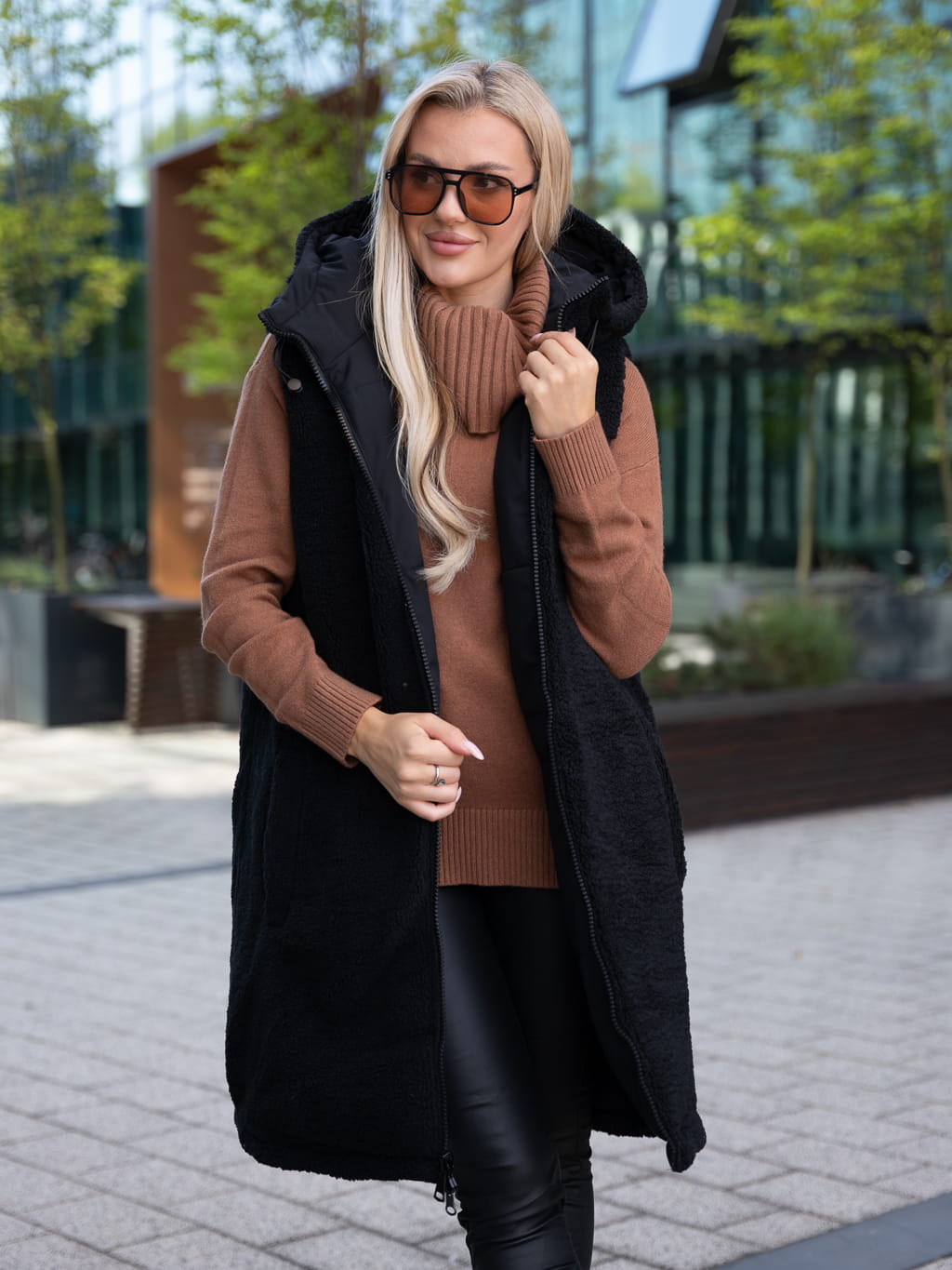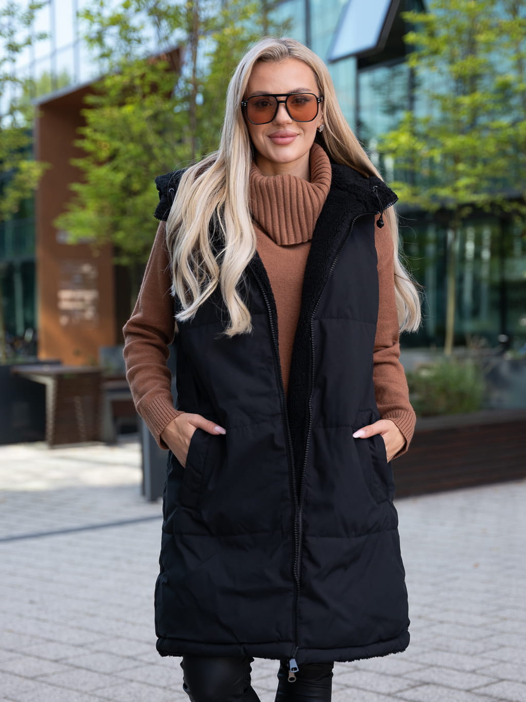 KAMIZELKA dwustronna z futerkiem TORI - onyx
