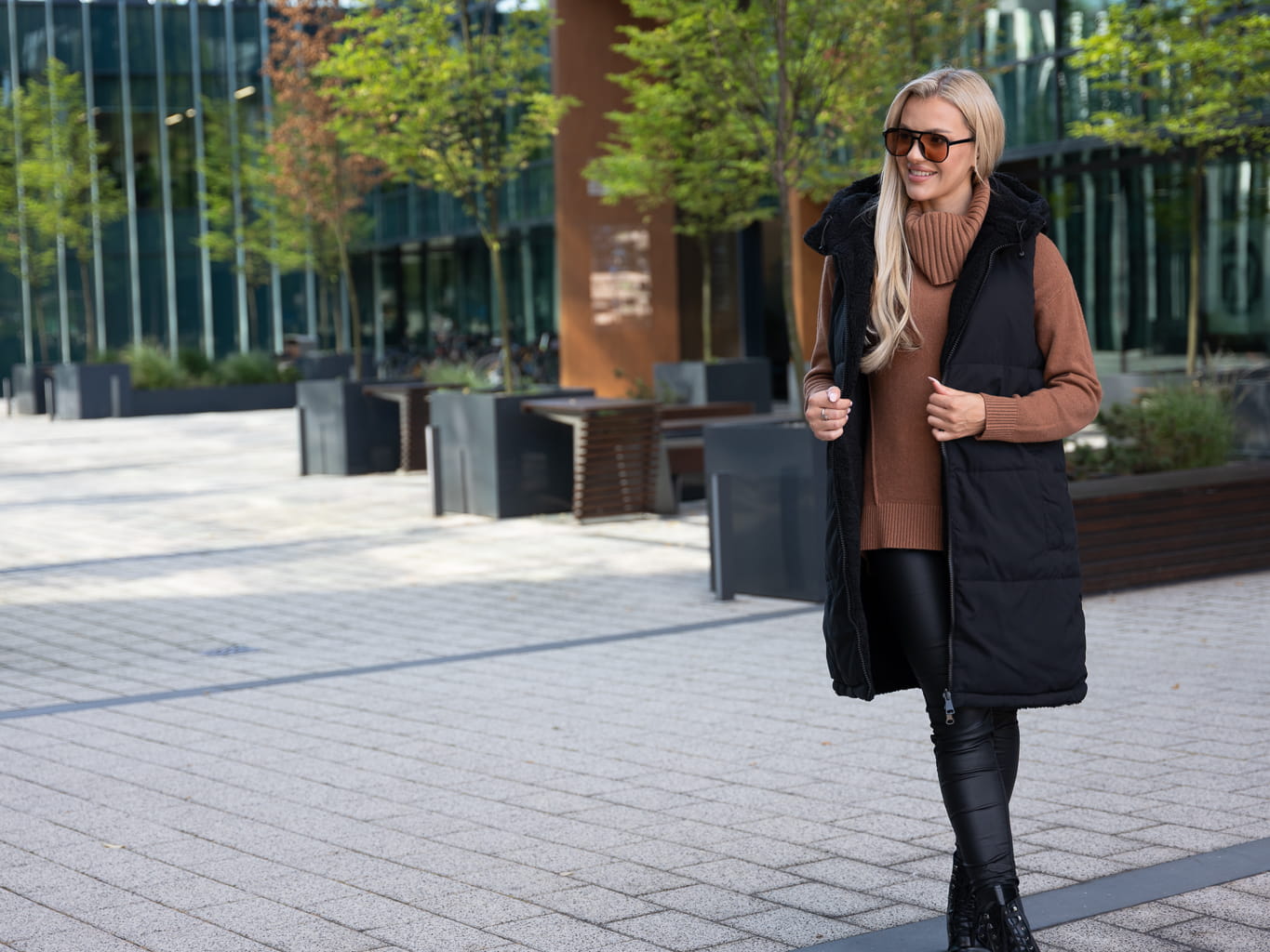 Dwustronna kamizelka z futerkiem to praktyczny i stylowy element garderoby na chłodniejsze dni. Jedna strona zachwyca miękkim futerkiem, druga gładkim wykończeniem — idealna do tworzenia różnych stylizacji w zależności od nastroju.