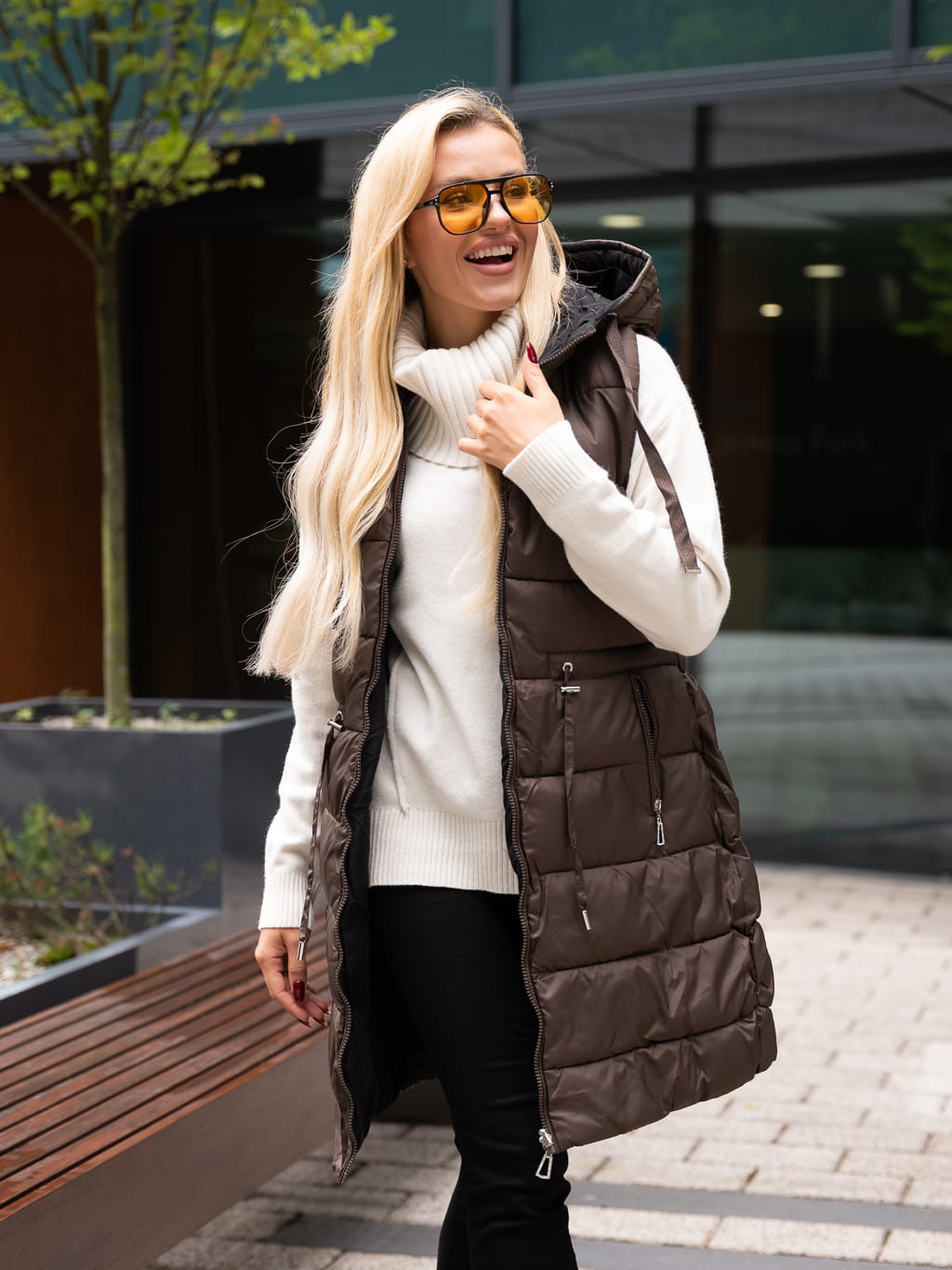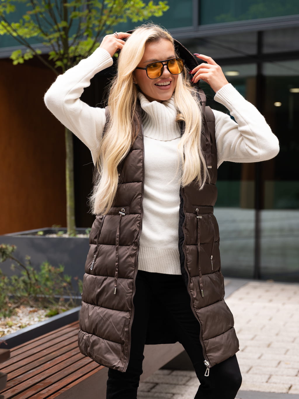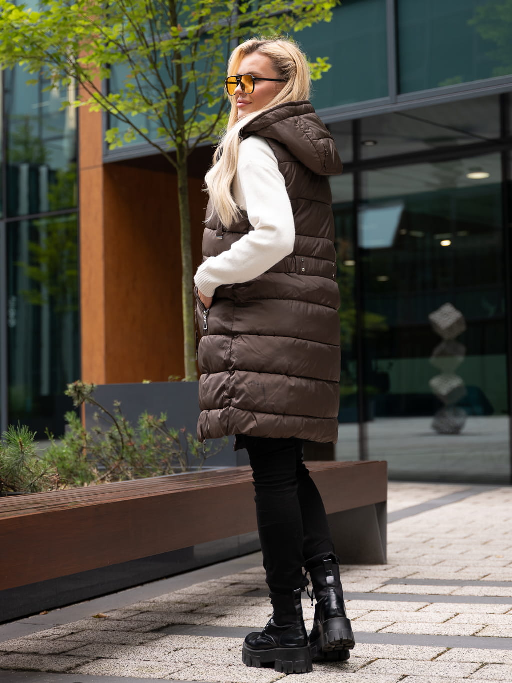 KAMIZELKA pikowana z kapturem LARISA - brąz