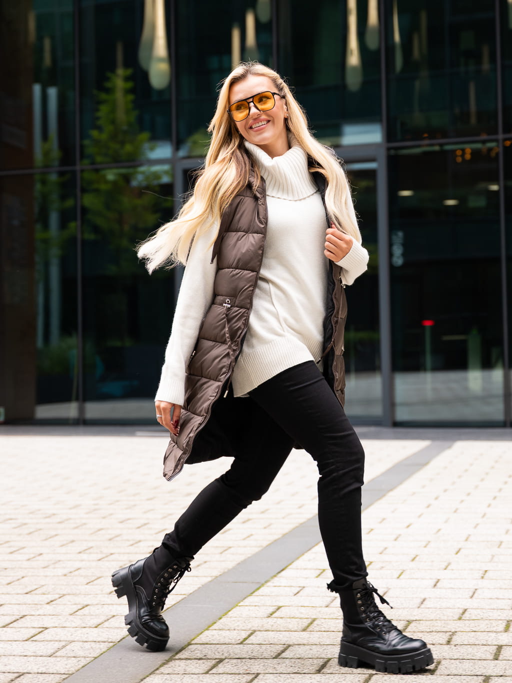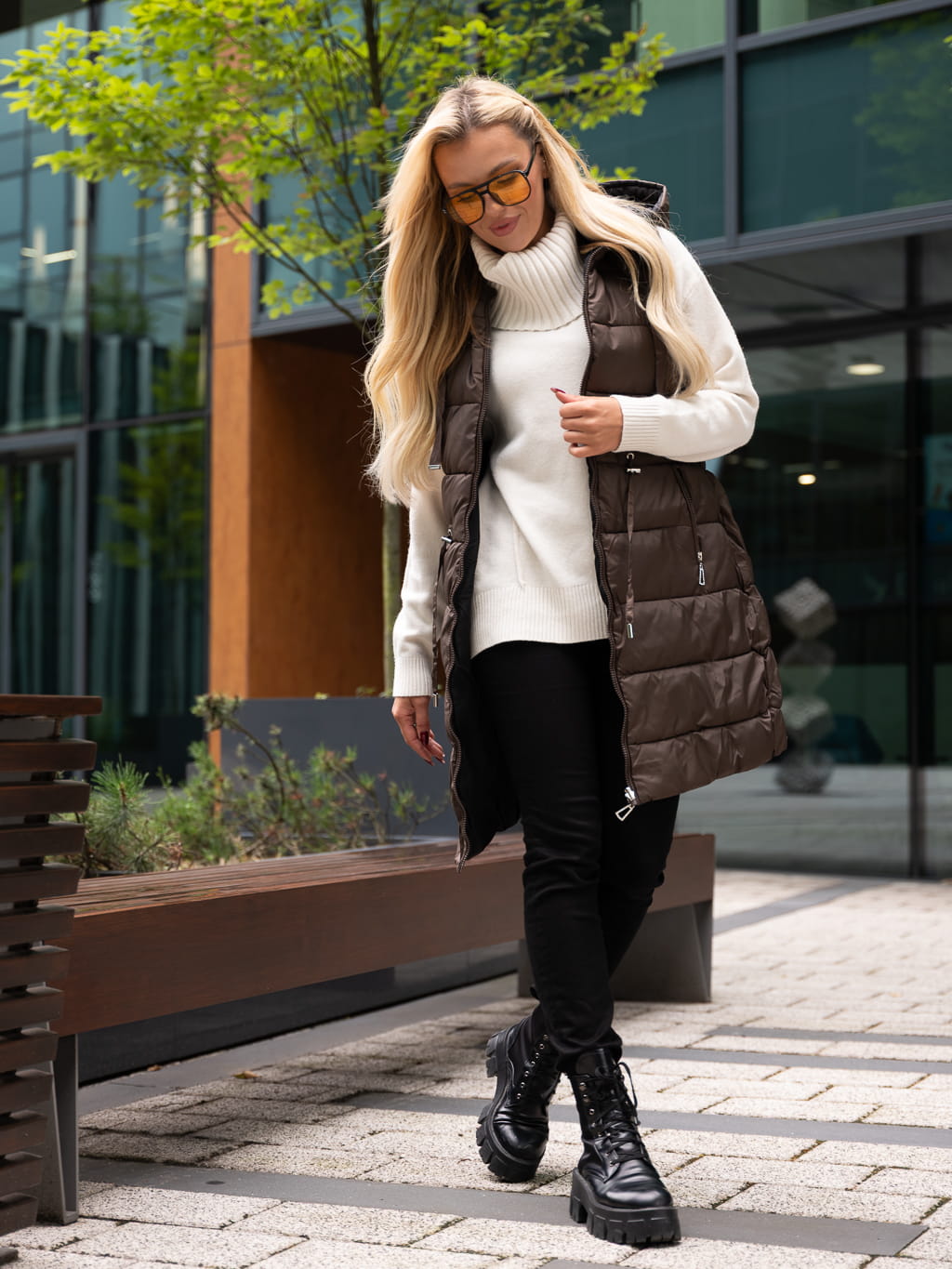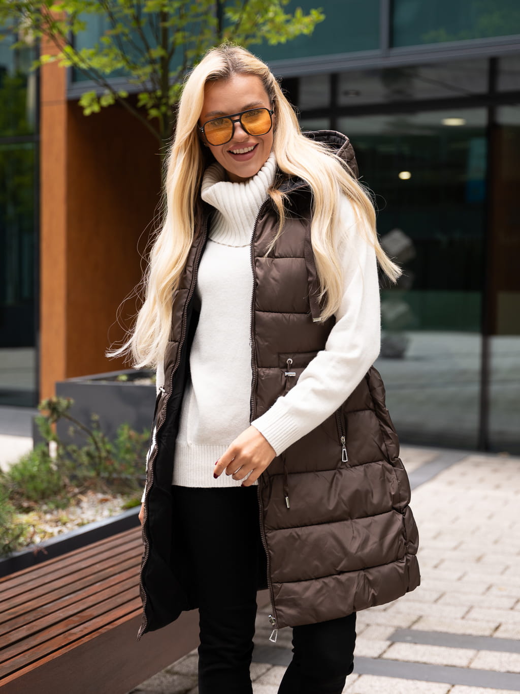 KAMIZELKA pikowana z kapturem LARISA - brąz