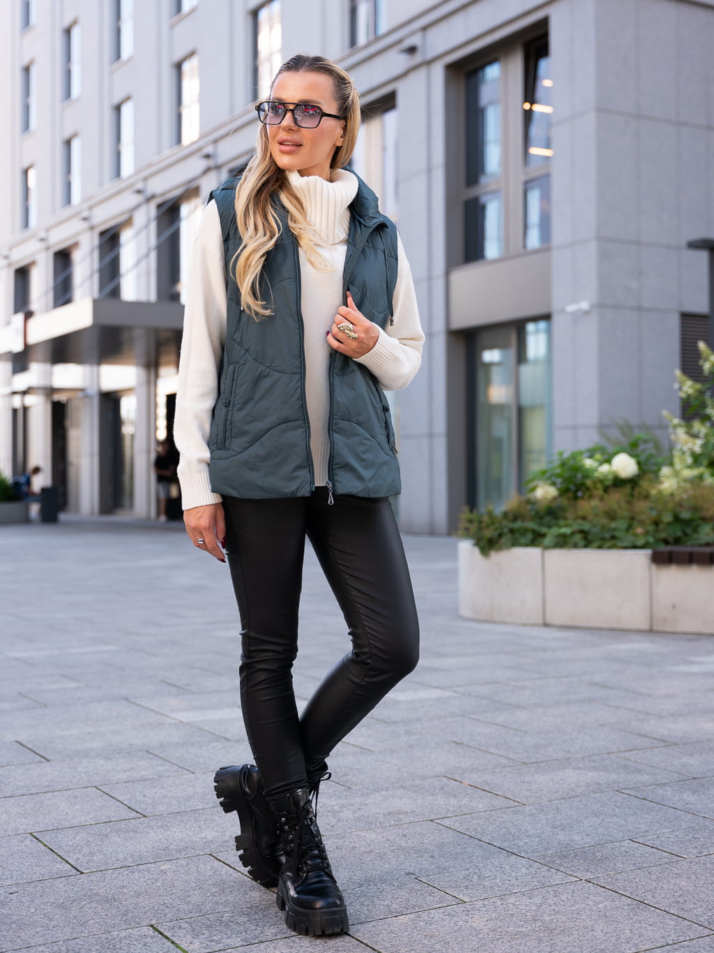 KAMIZELKA pikowana ze ściągaczem DARIA - morski