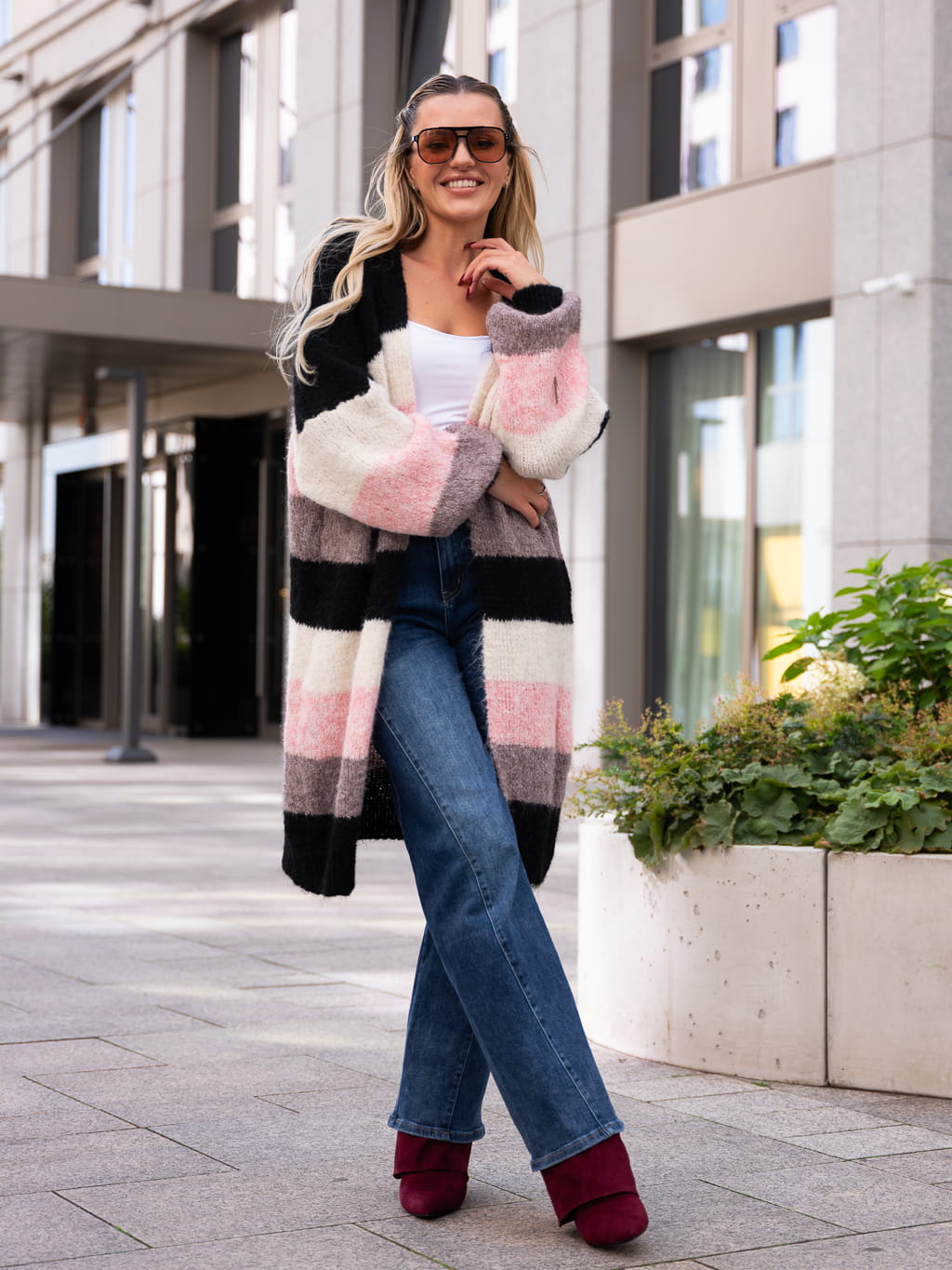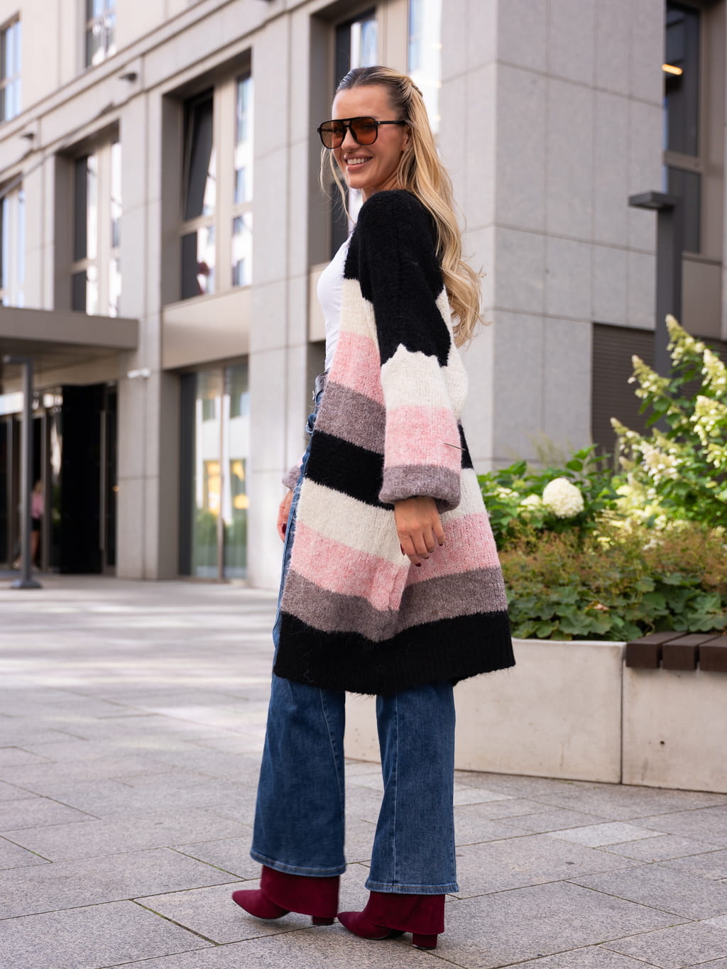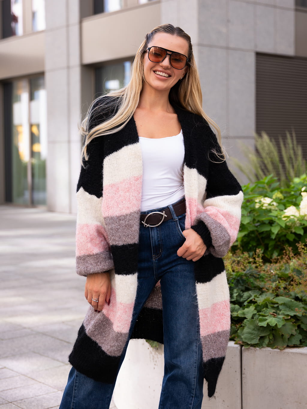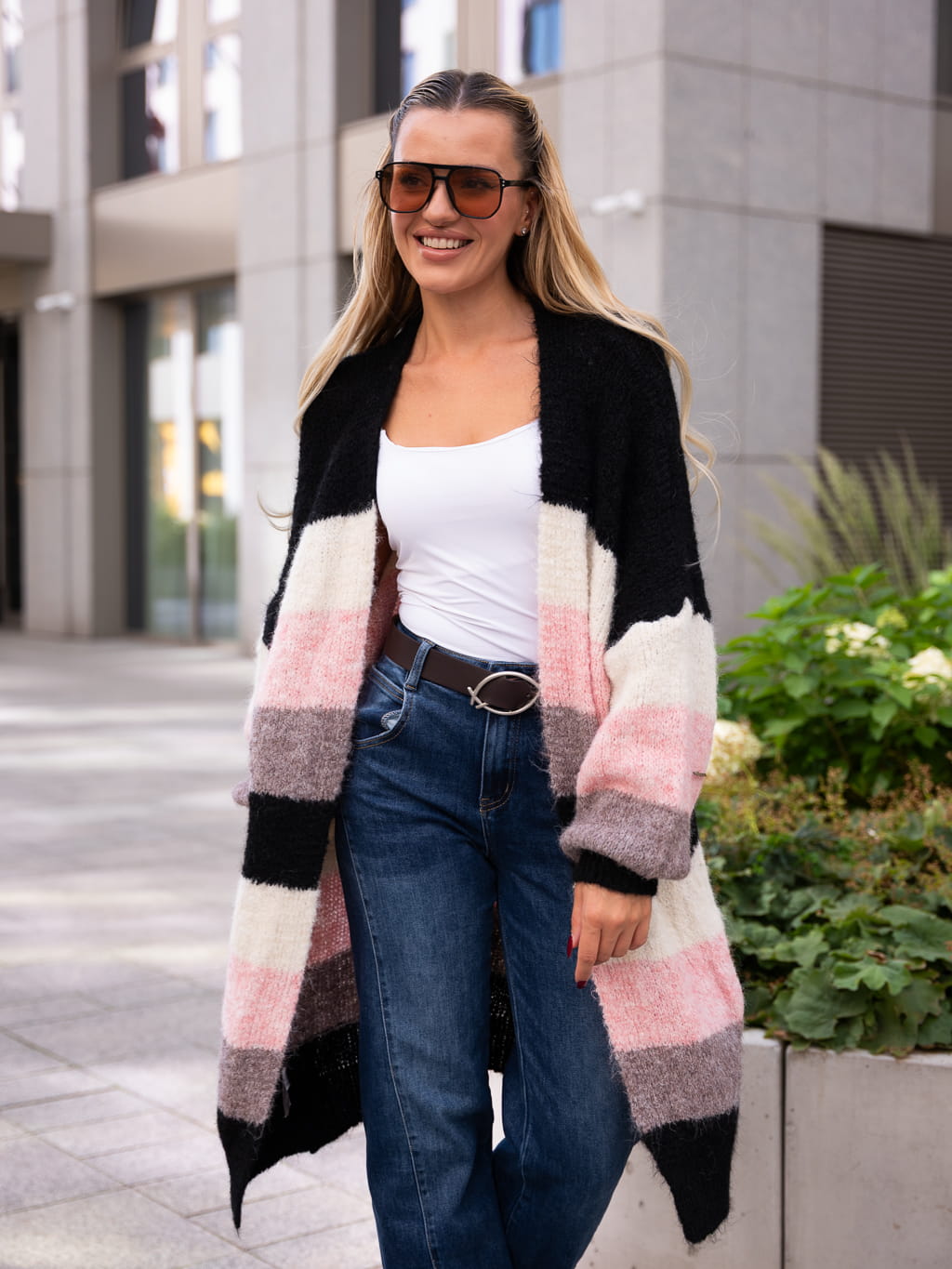 KARDIGAN w pasy trzy kolory PATTY - czarny