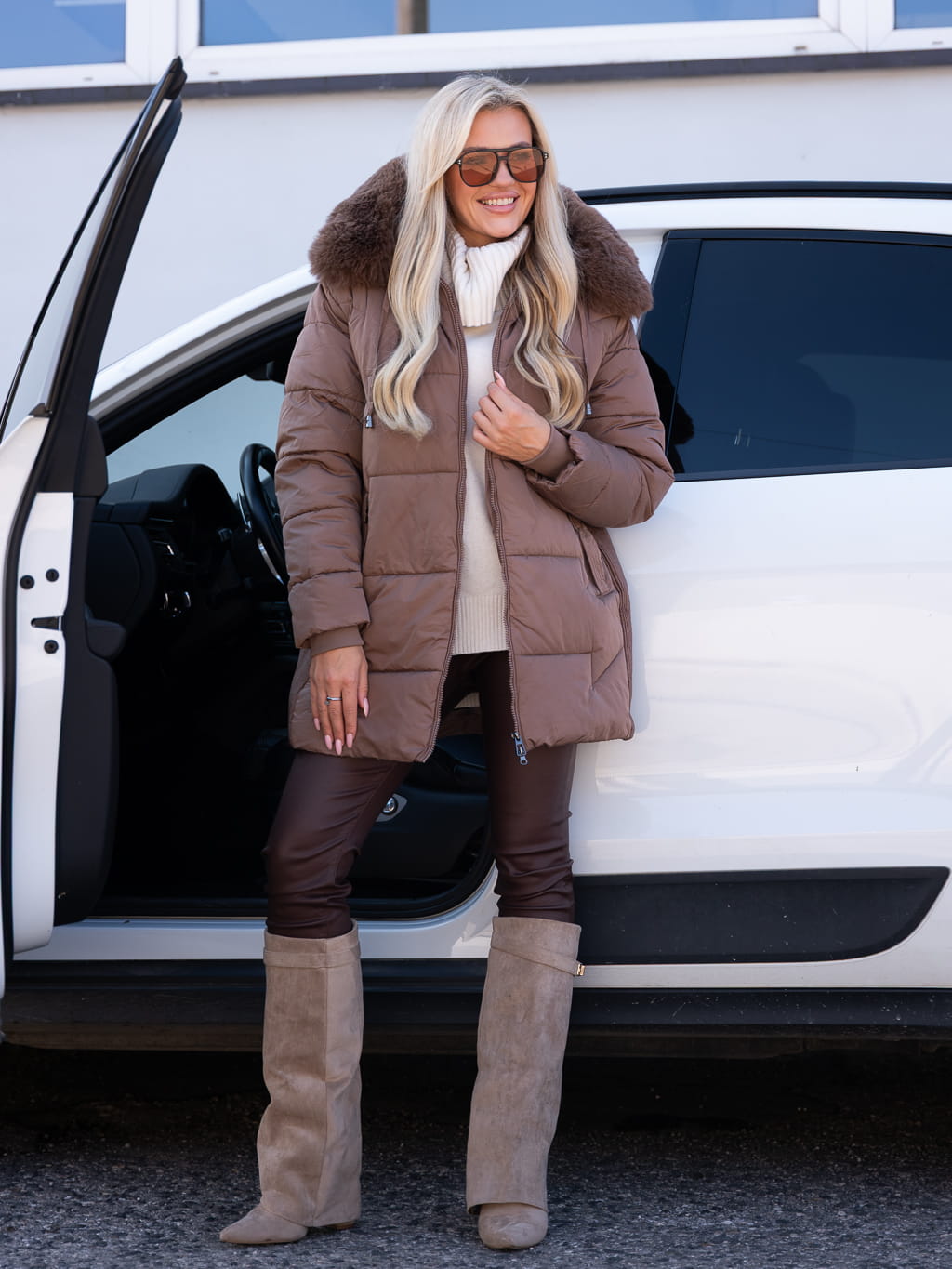 Modna i funkcjonalna kurtka puchowa. Wykonana z porządnego materiału- doskonale chroni przed wiatrem i zimnem zapewniając jednocześnie komfort noszenia. Posiada obszerny kaptur wykończony miękkim futerkiem, które dodaje elegancji i stylu. Specjalne marszczenie po bokach podkreśla sylwetkę i nadaje całości kobiecego charakteru! Noś na luzie z jeansami i bluzą lub na elegancko- do spódniczki i kozaków!
