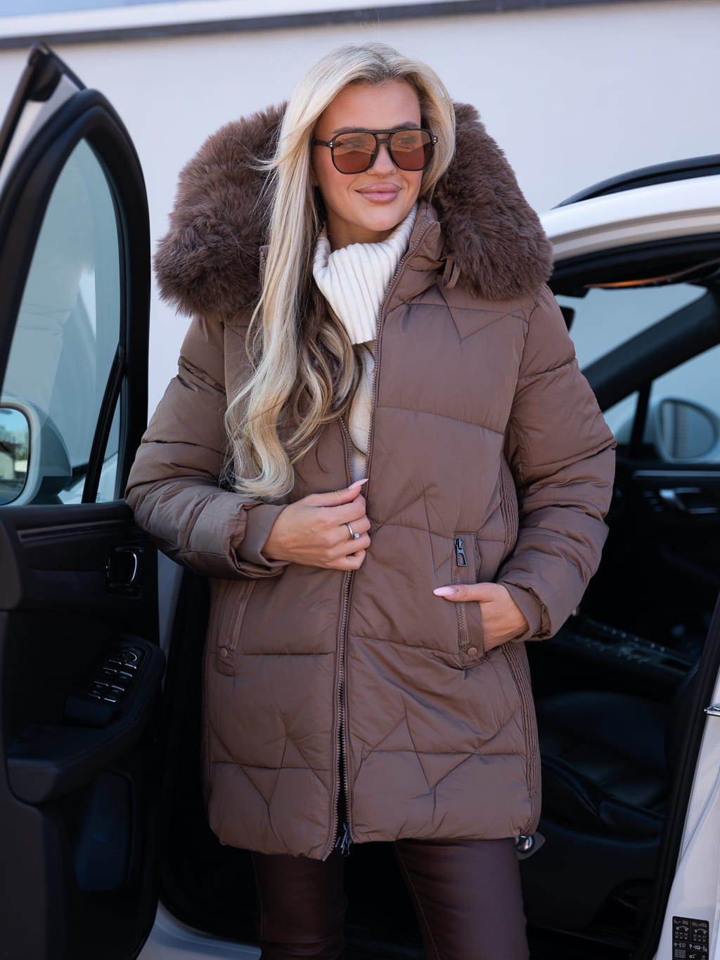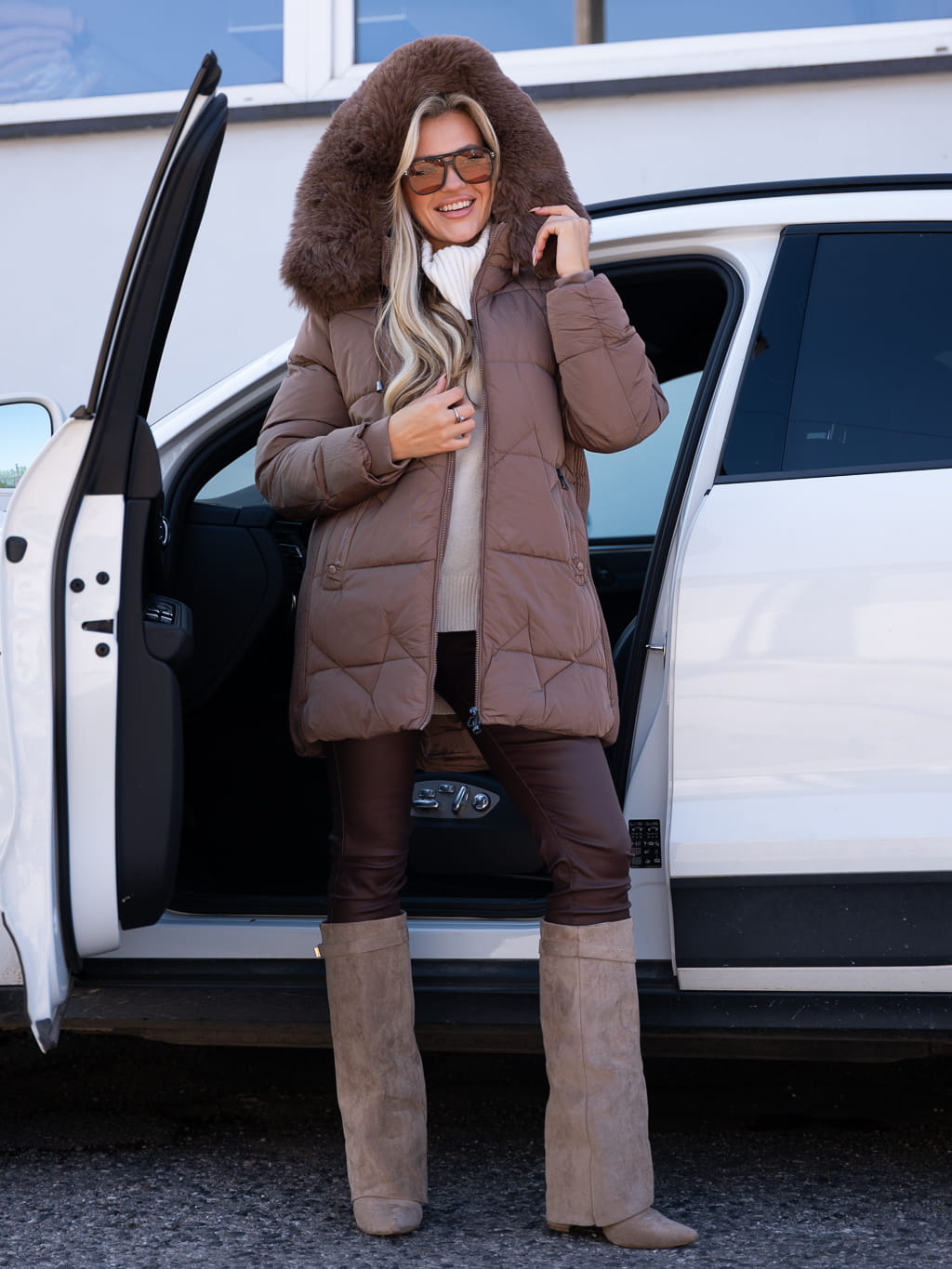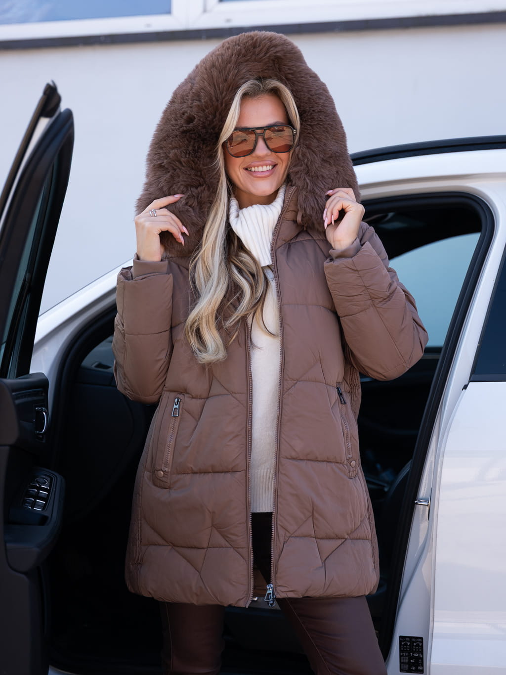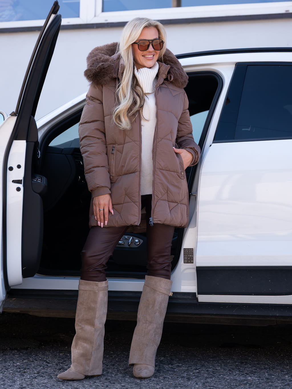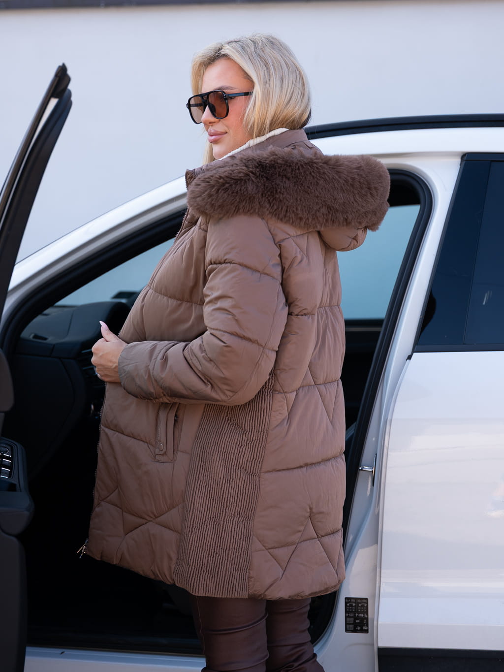 KURTKA Puchowa z marszczeniem i futerkiem JOVIE - orzech