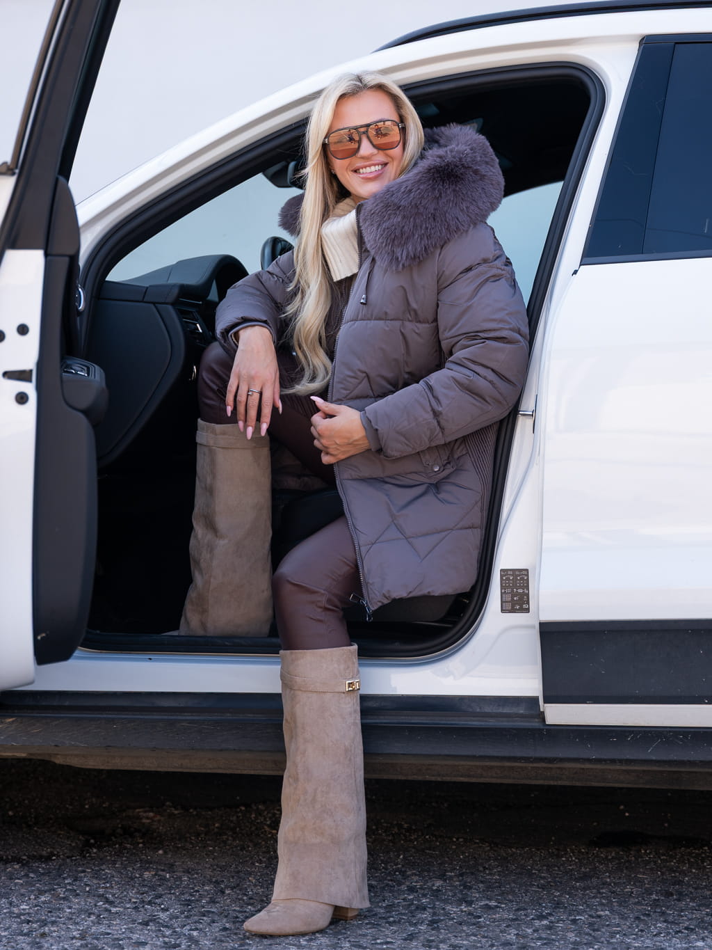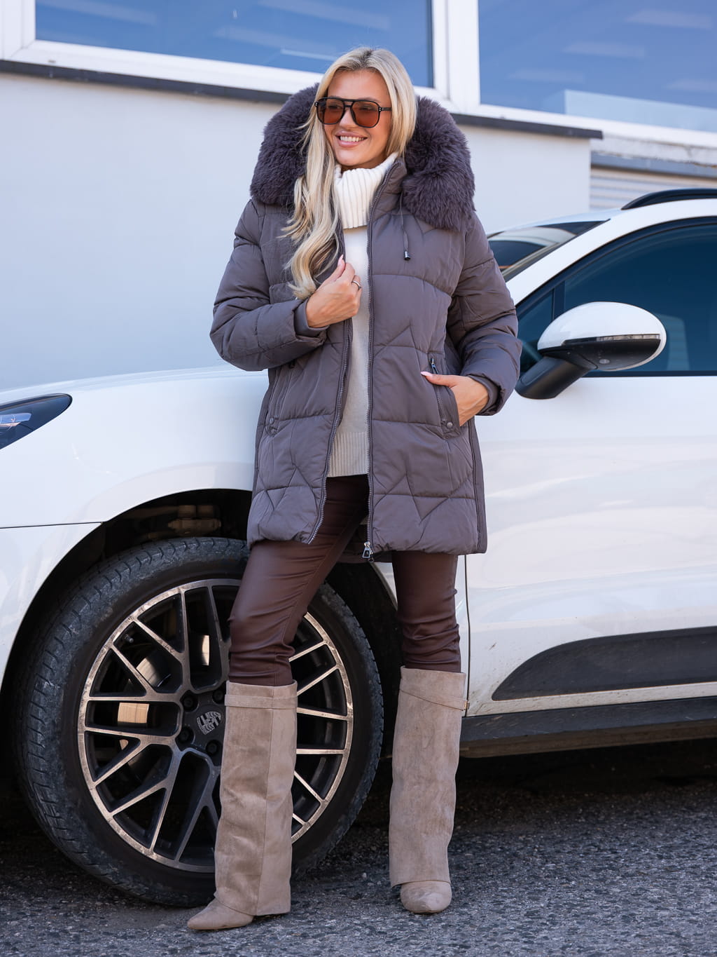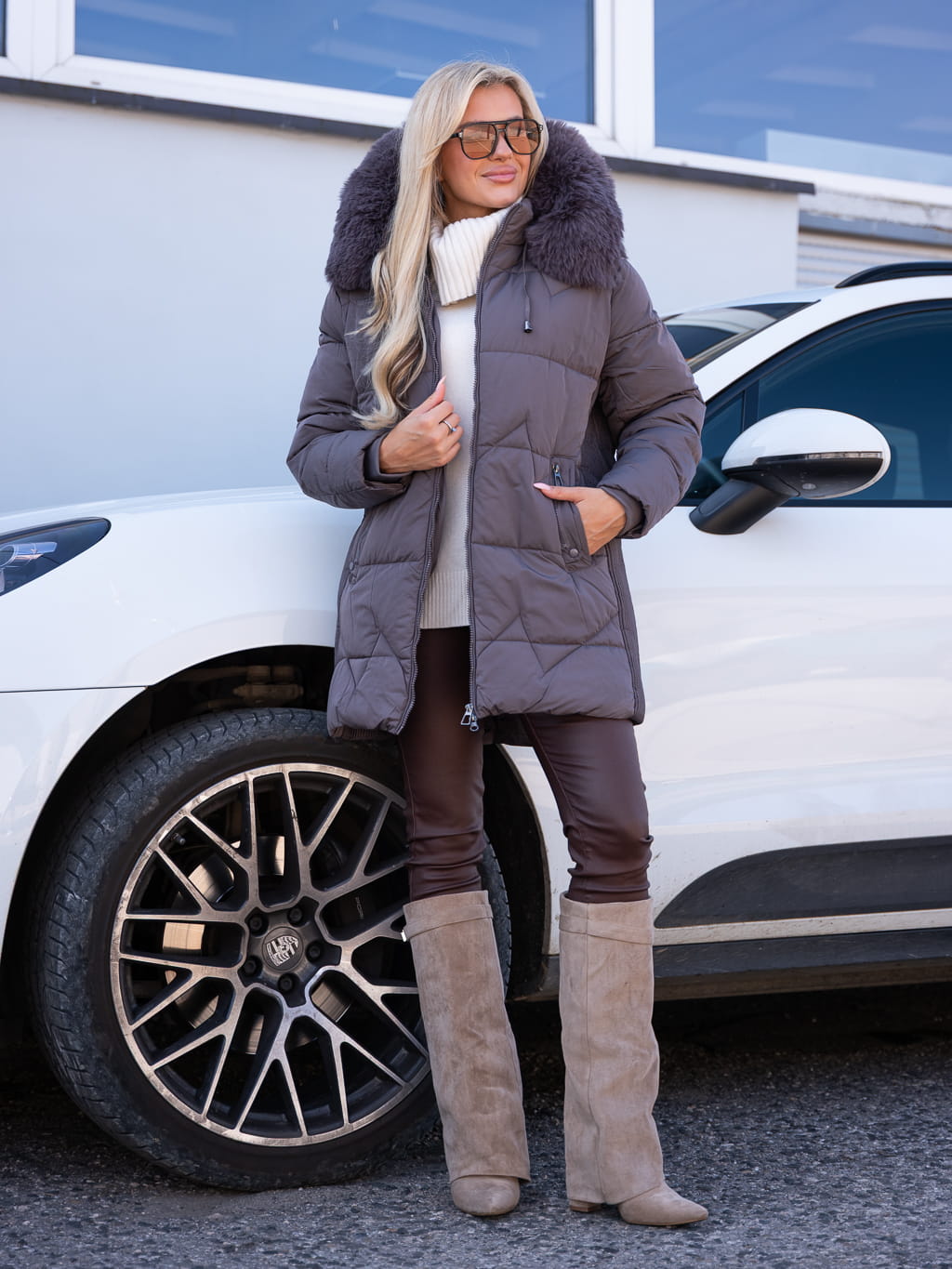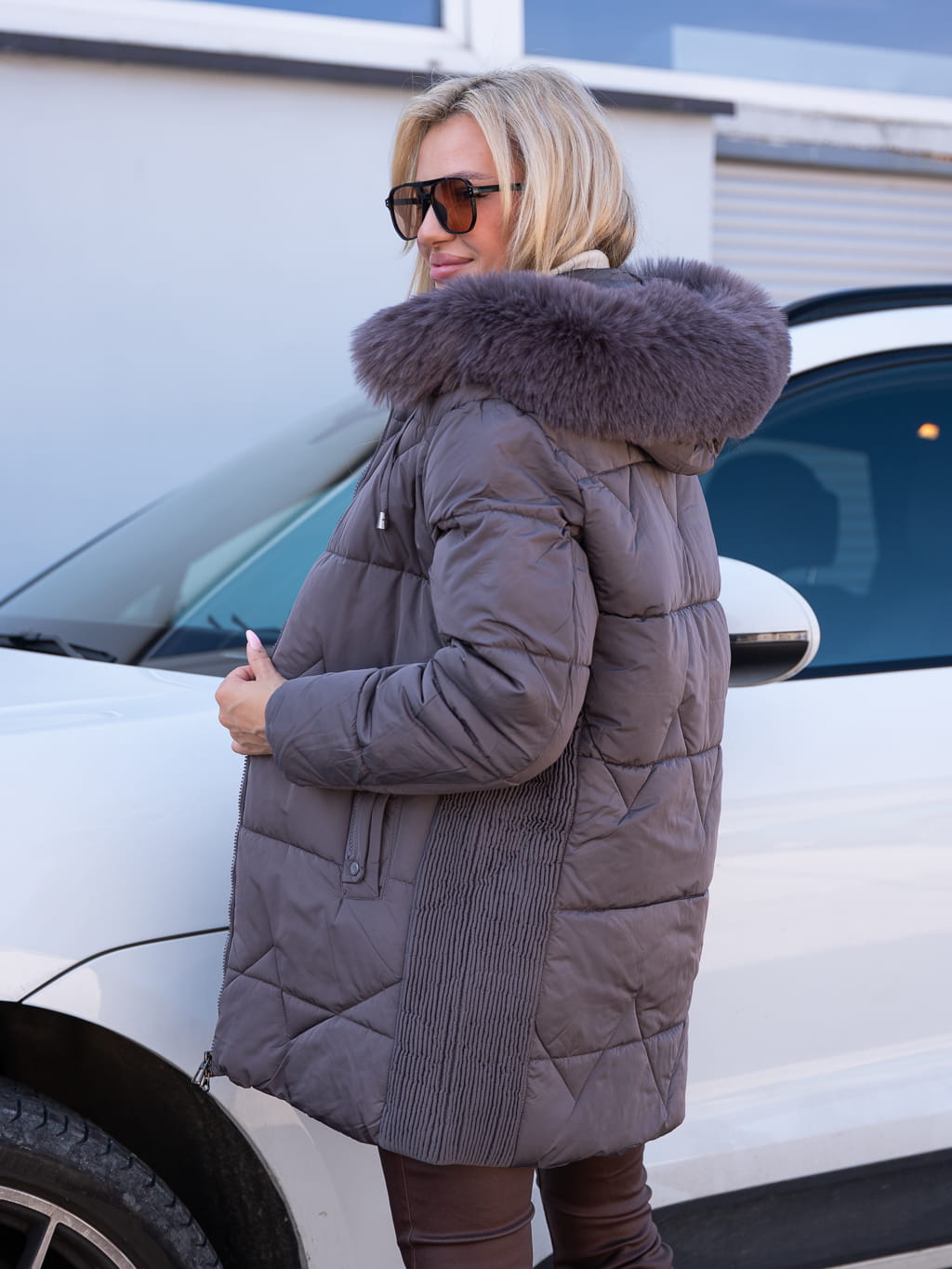 KURTKA Puchowa z marszczeniem i futerkiem JOVIE - szary