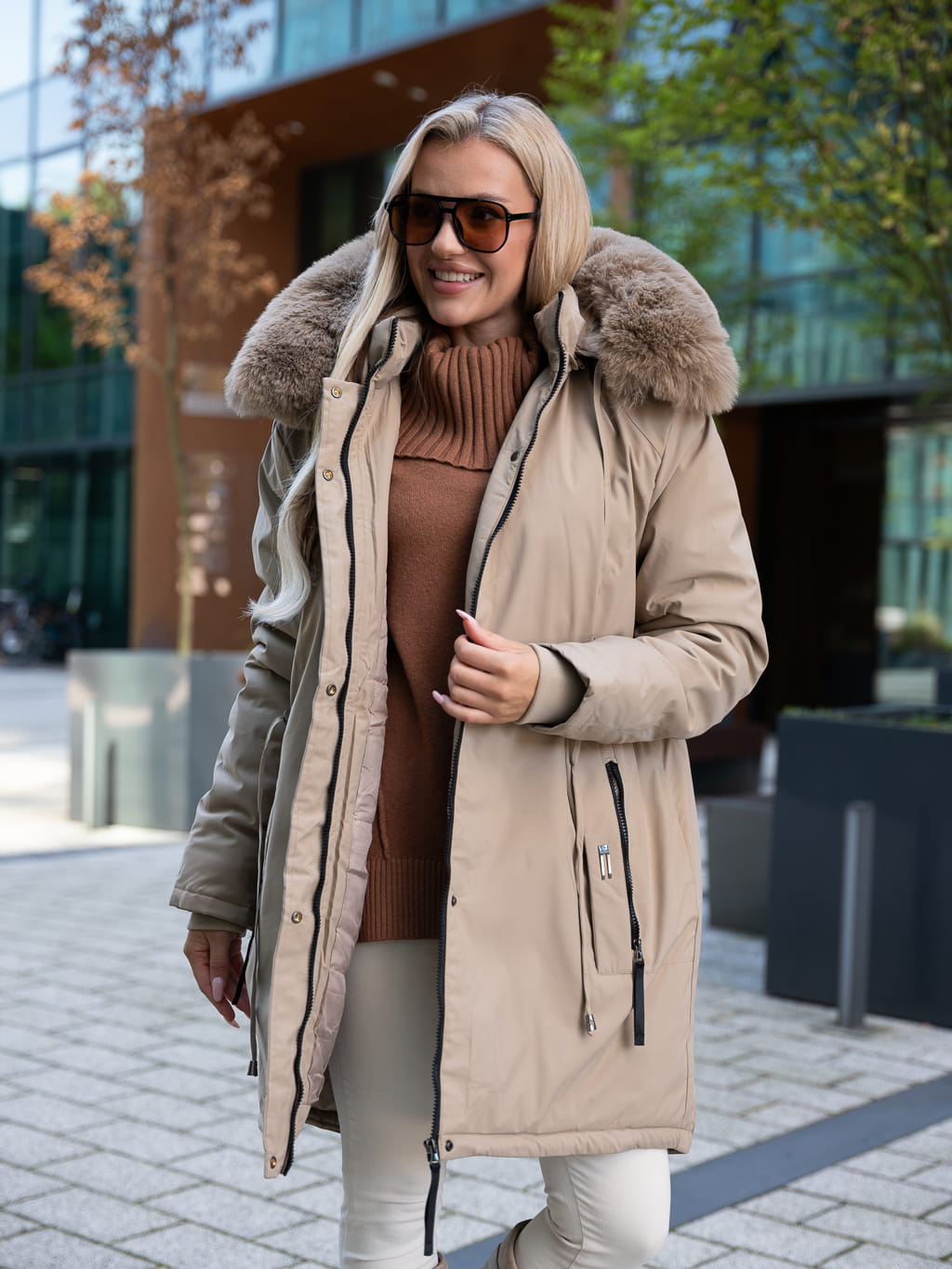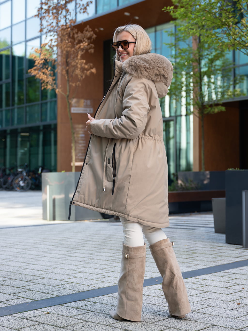 KURTKA parka z futrem i ściągaczem RHEA - karmel