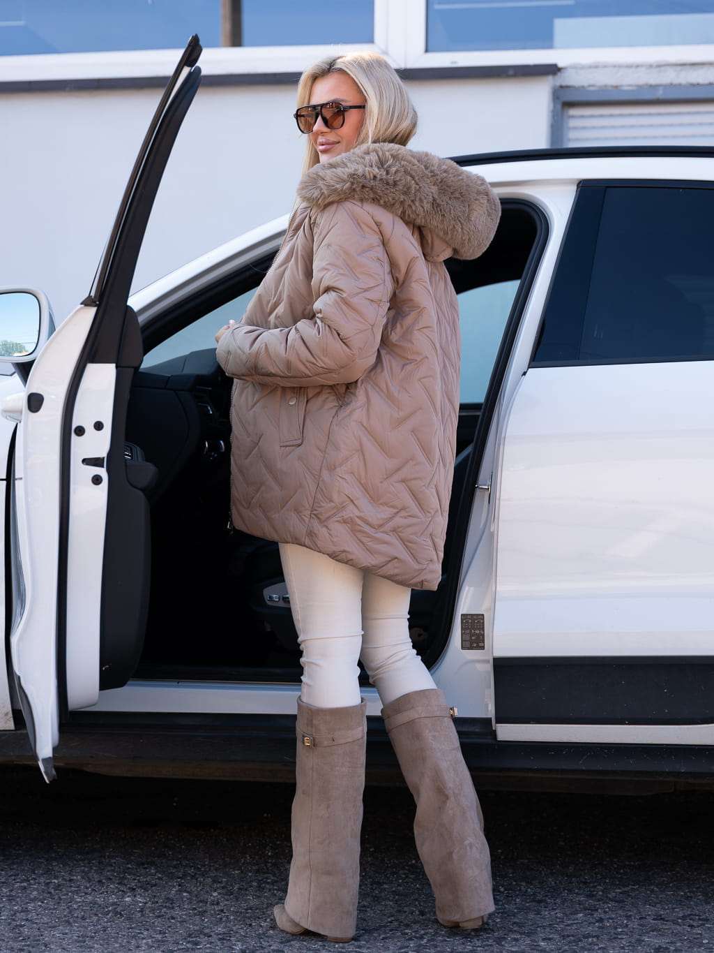KURTKA pikowana z tłoczeniami w zygzaki GIANA - latte