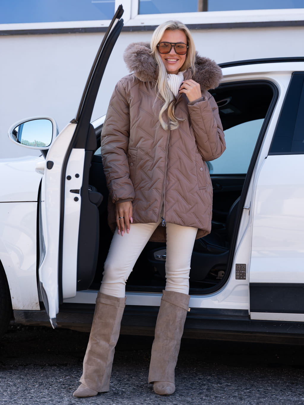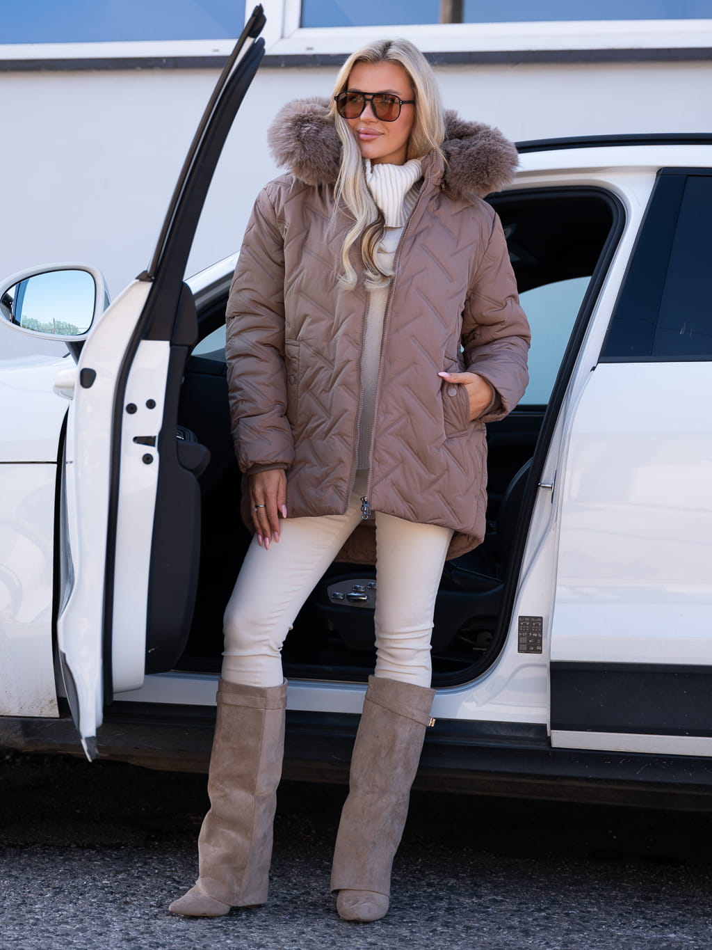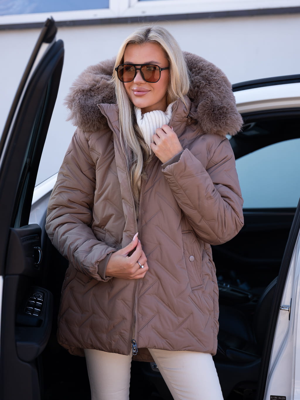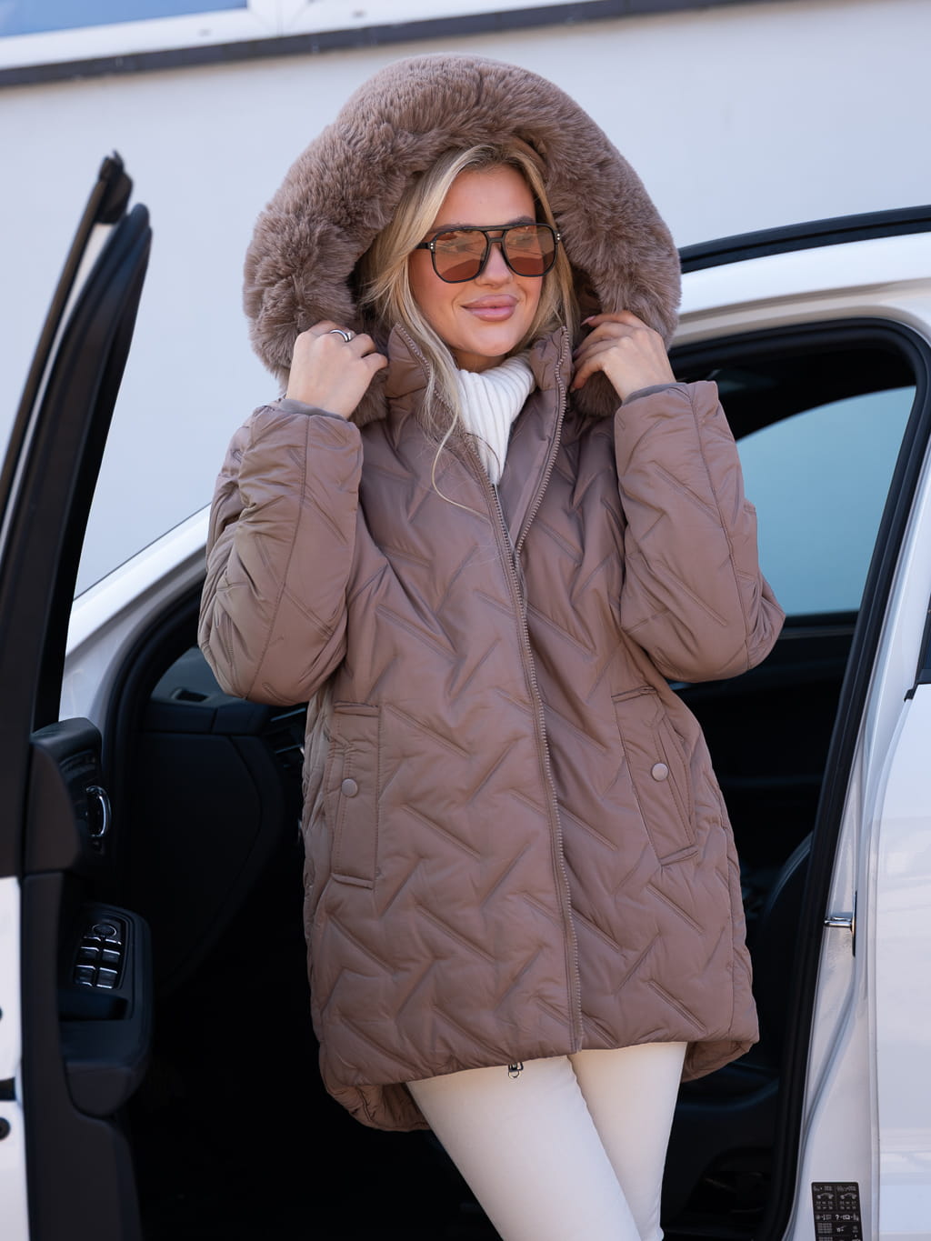 Wyróżnij się tej jesieni w kurtce, która łączy nowoczesny design z przytulnym komfortem. Model z efektownym tłoczeniem w kształcie zygzaków to więcej niż tylko ochrona przed chłodem- to wybór, który zapewni Ci stylowy wygląd niezależnie od pogody! Wykończony gęstym, puszystym futrem przy kołnierzu, otula i chroni przed wiatrem, a geometryczny wzór nadaje modowego pazura! Idealna do miejskich stylizacji, jak i jako wyrazisty element eleganckiego zestawu!