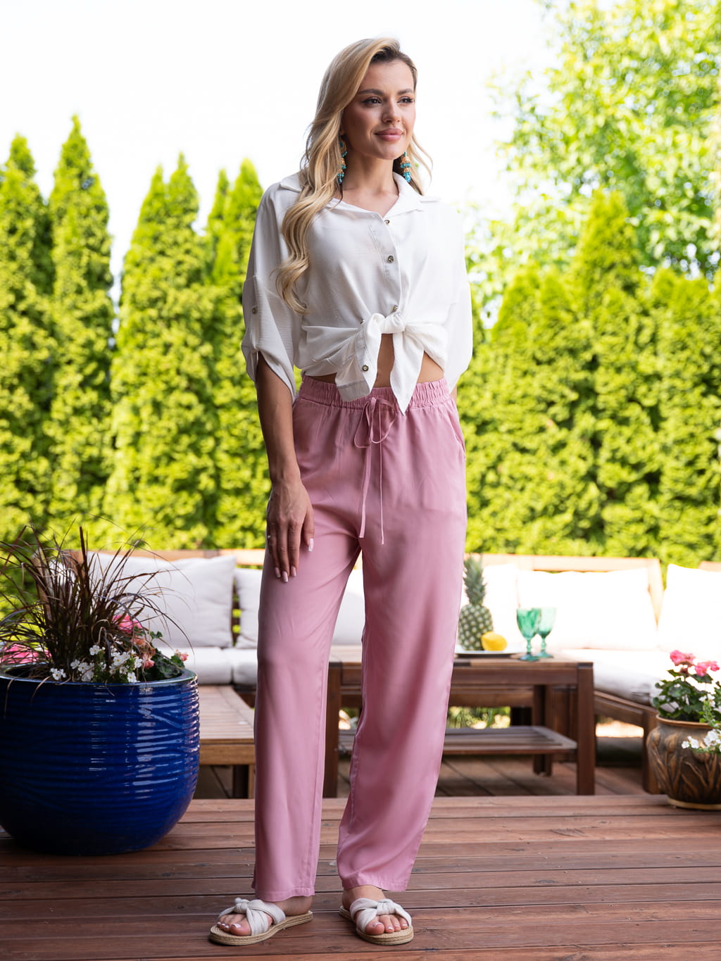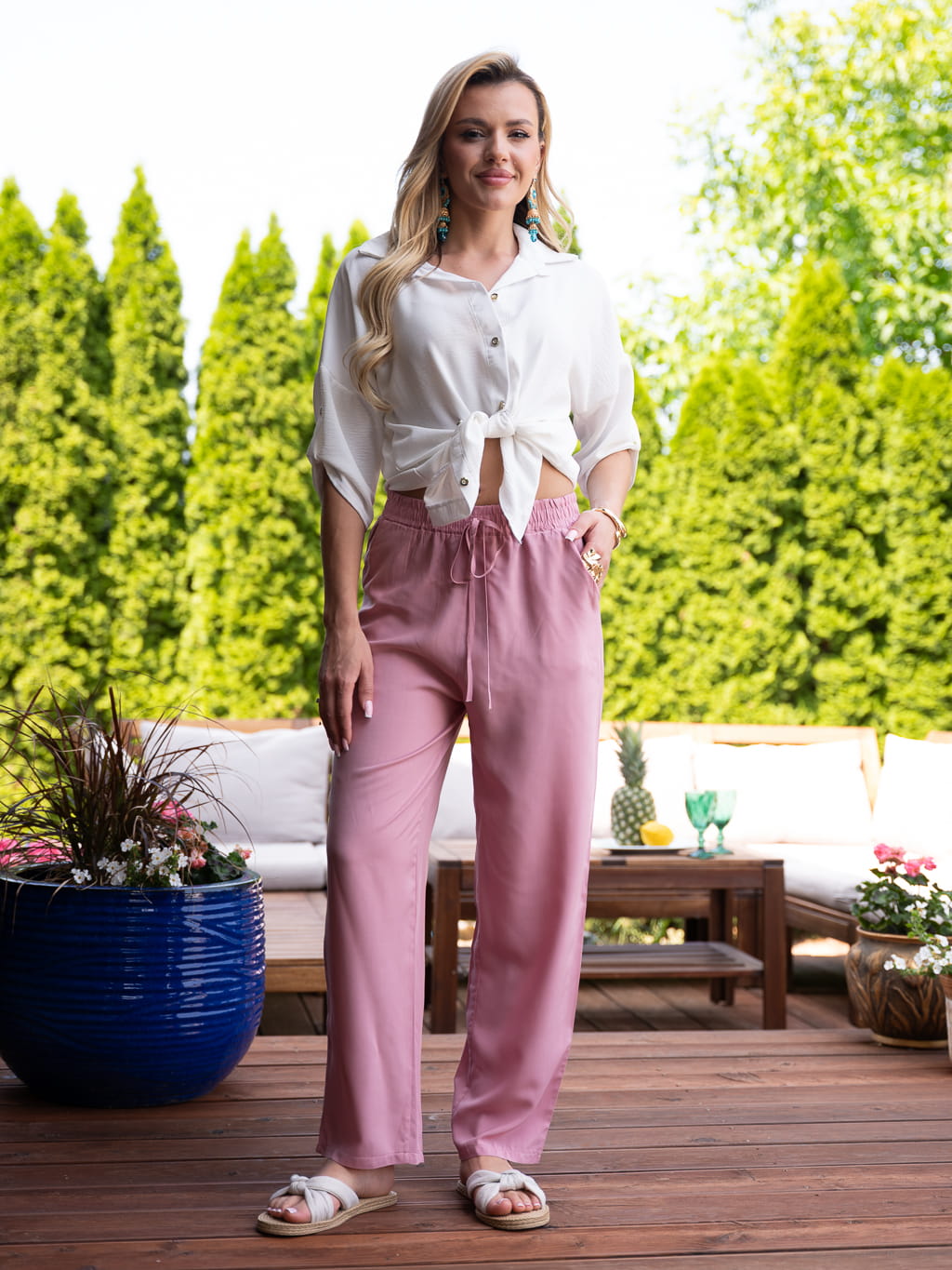 Klasyczne Szerokie spodnie CARA - różowy