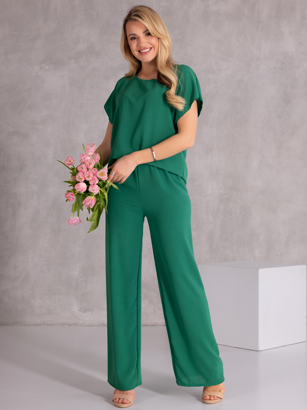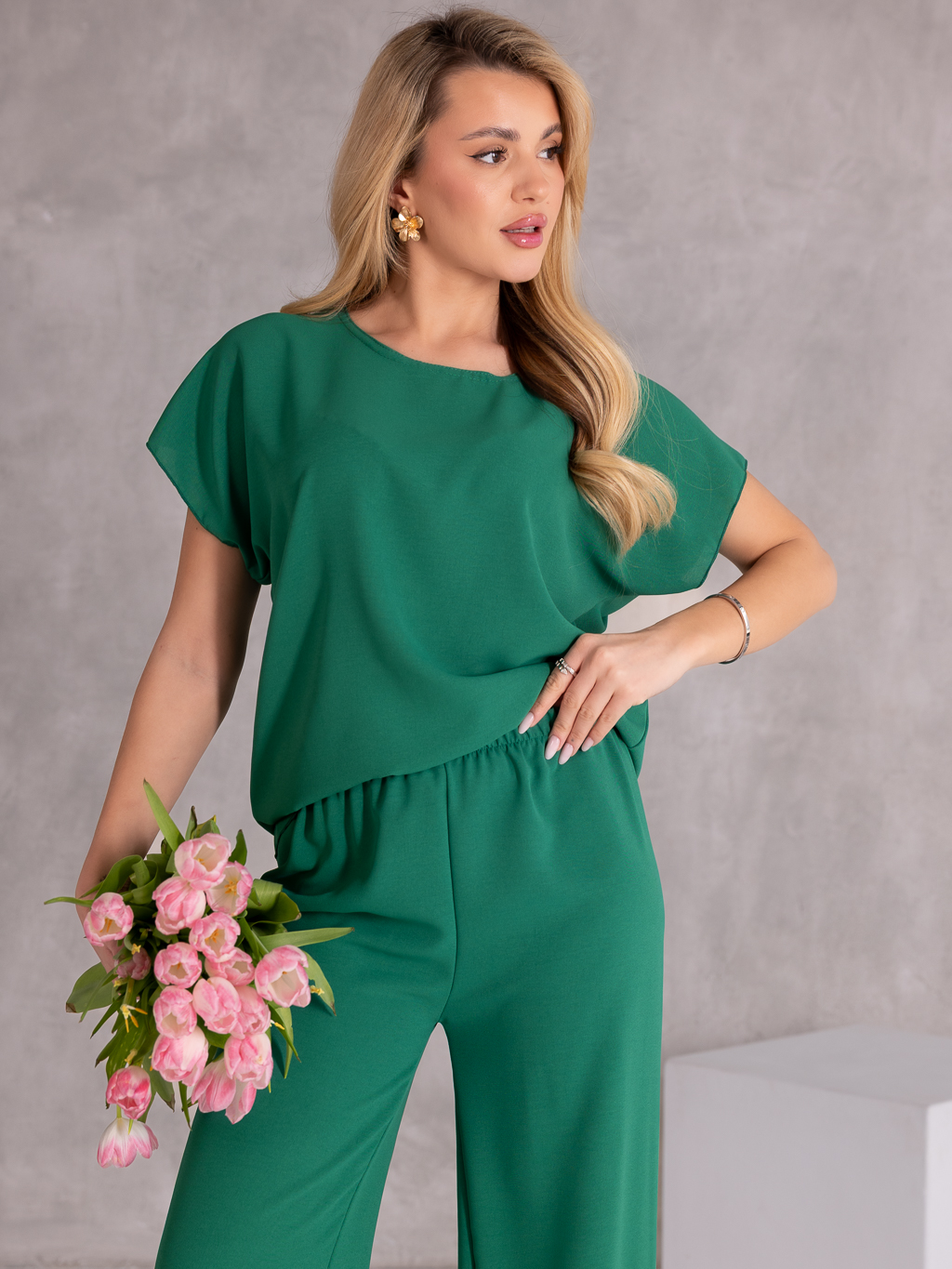 Lekki KOMPLET Bluzka Spodnie EVELONE - szmaragd