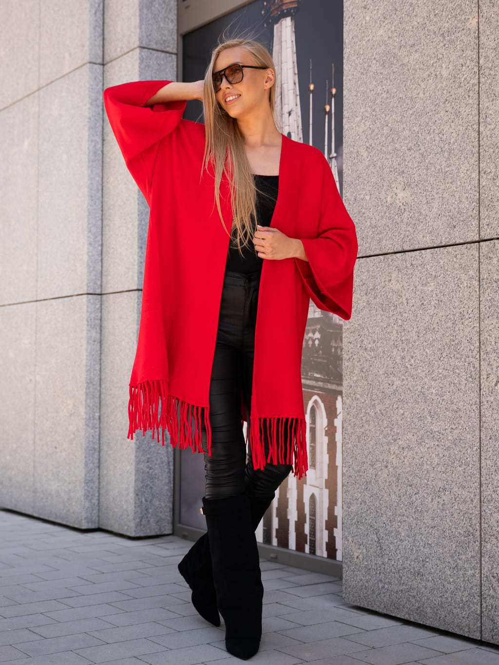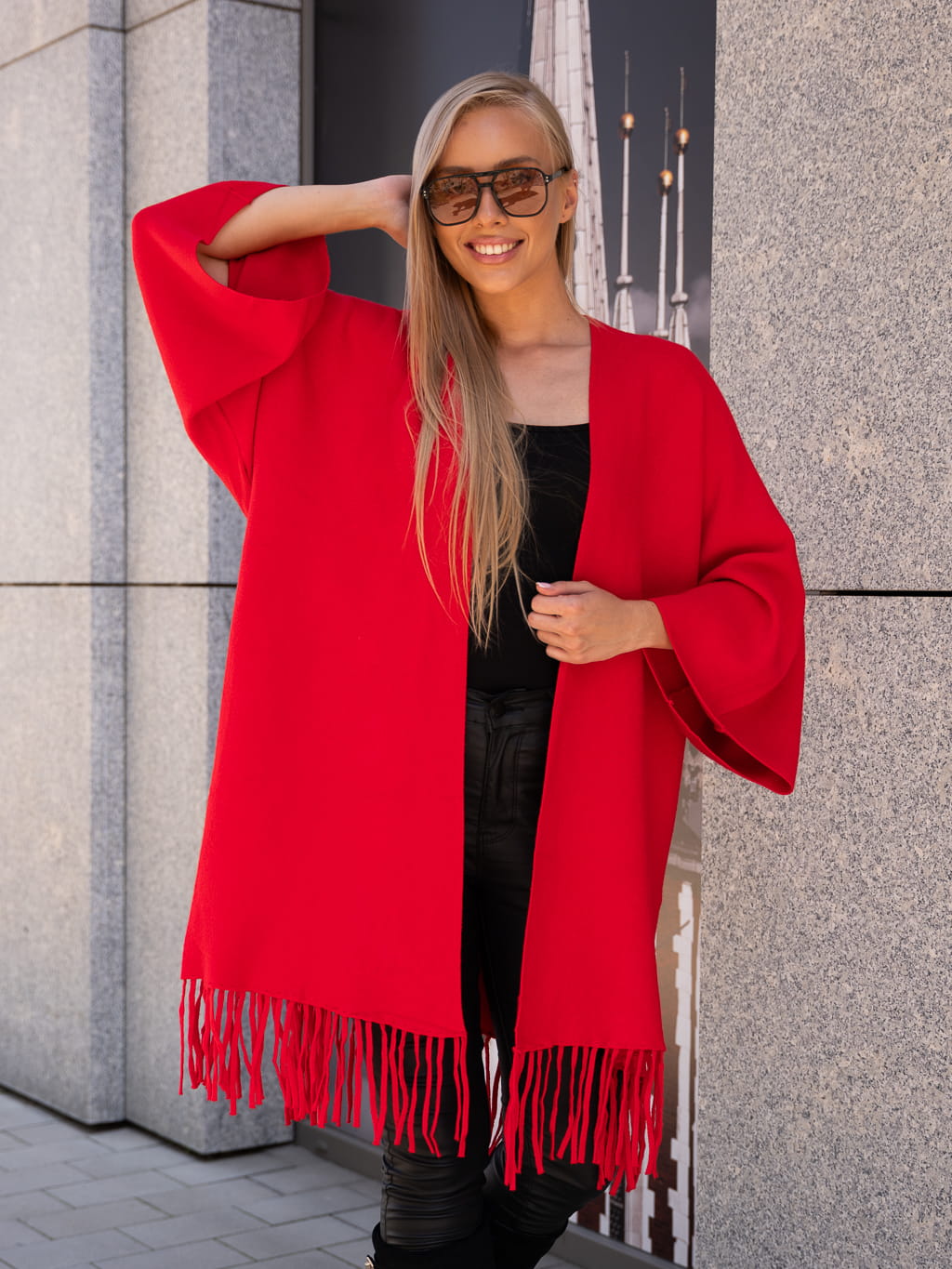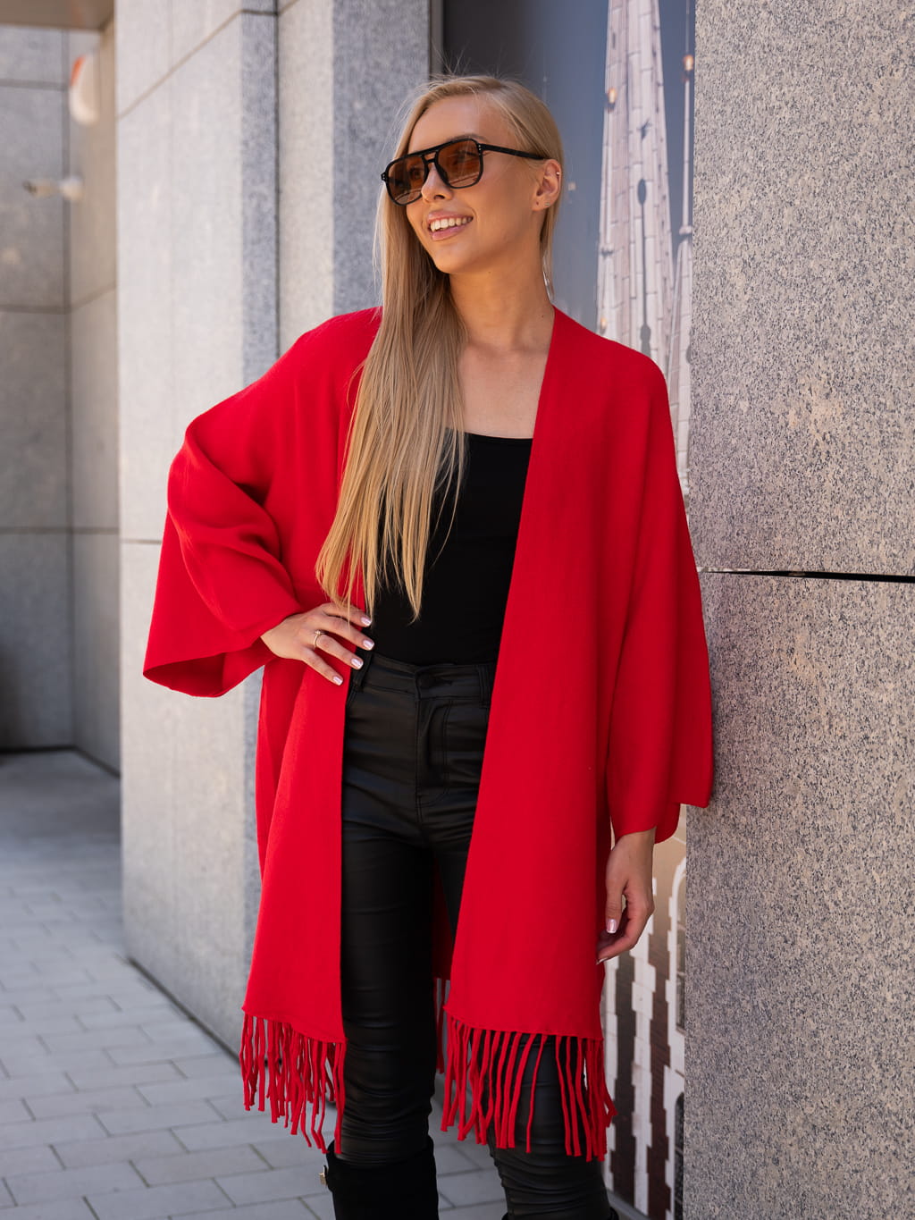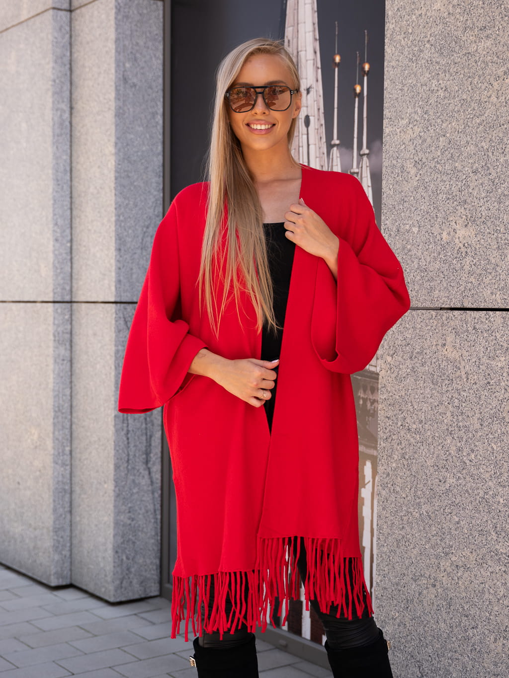 Luźny KARDIGAN z frędzelkami ZOEY - czerwony