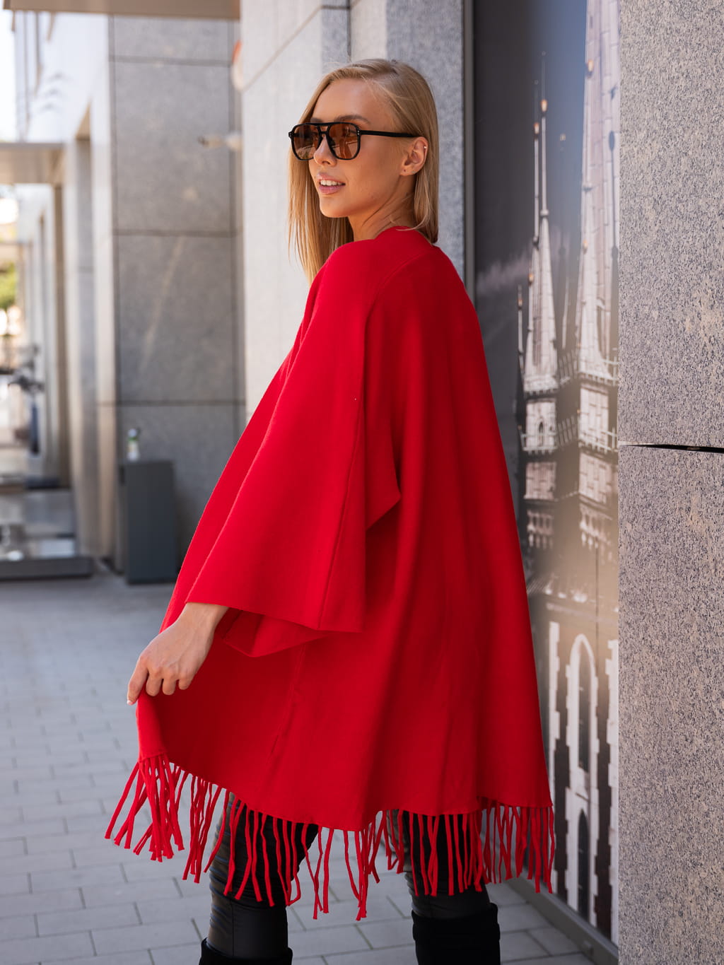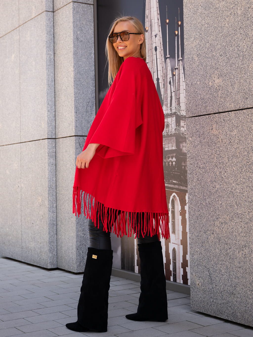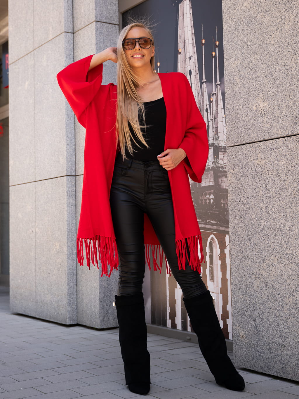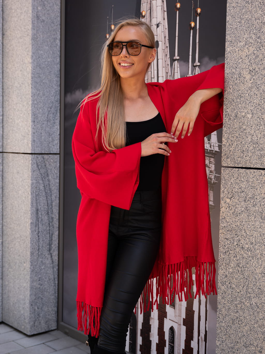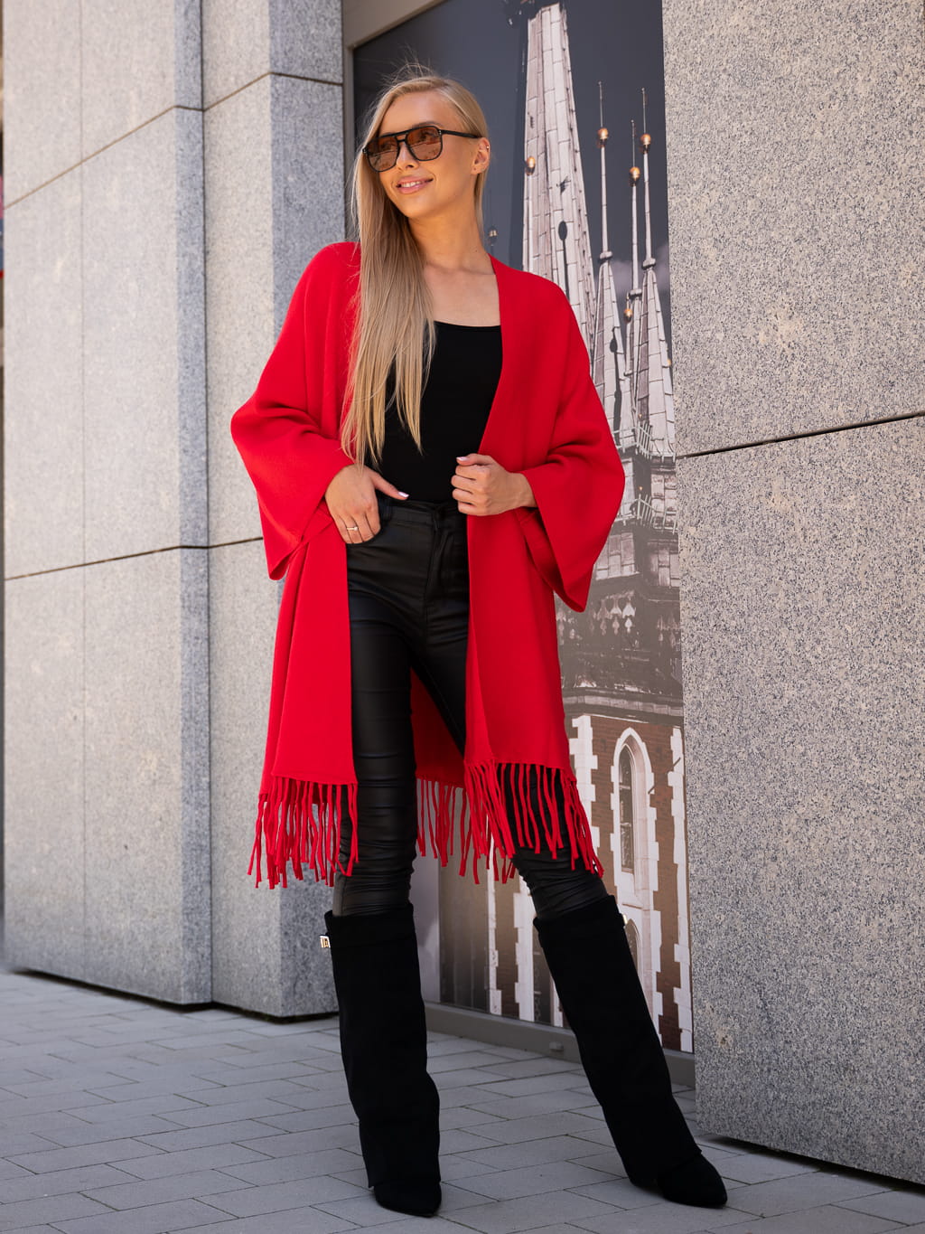 Luźny KARDIGAN z frędzelkami ZOEY - czerwony