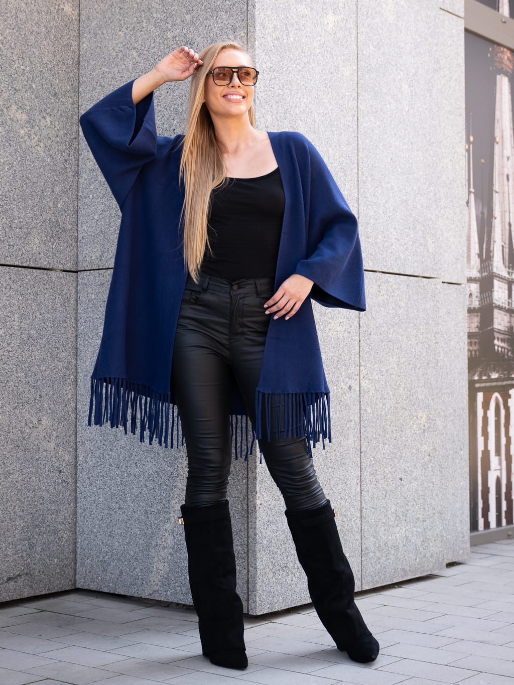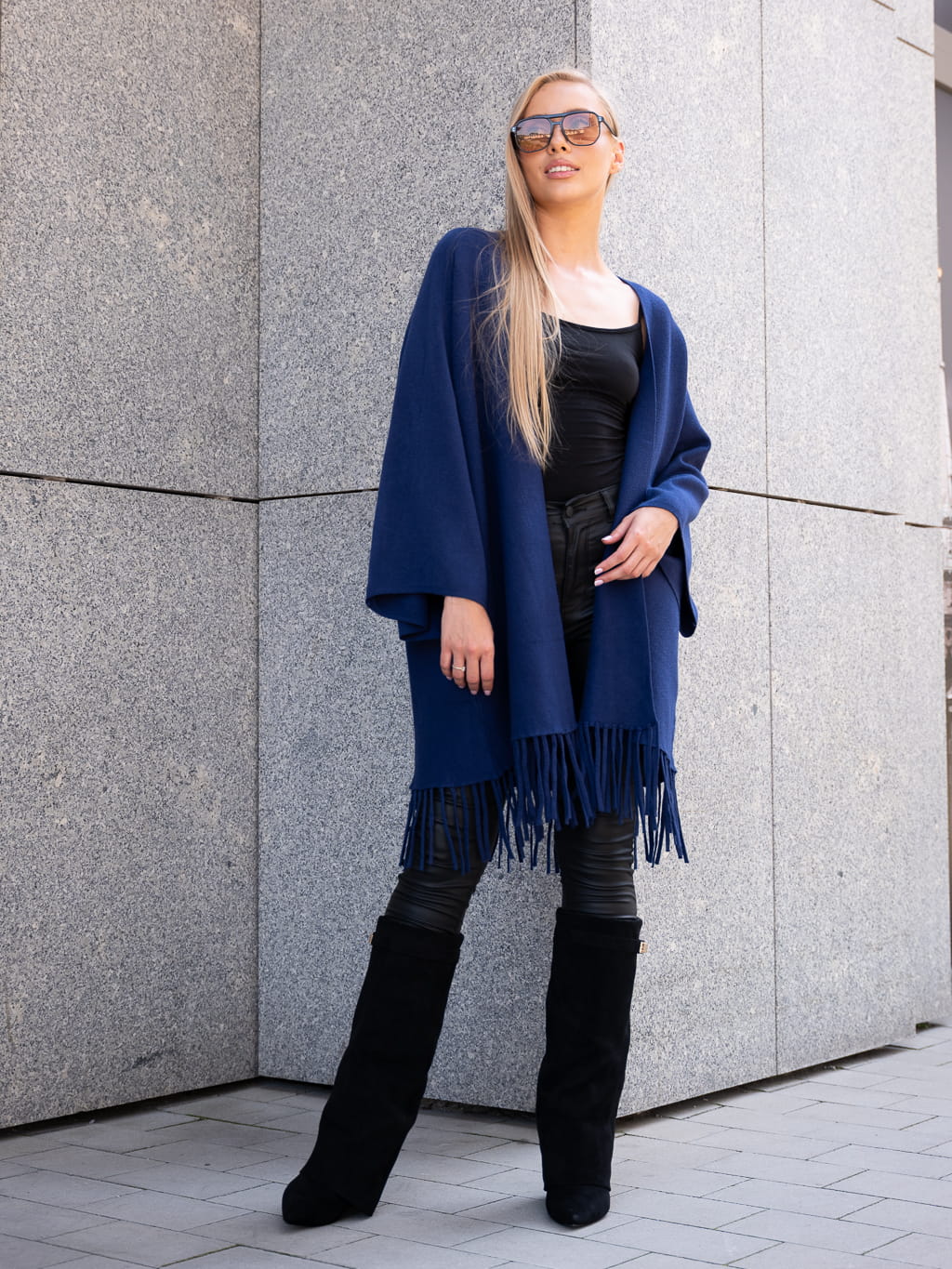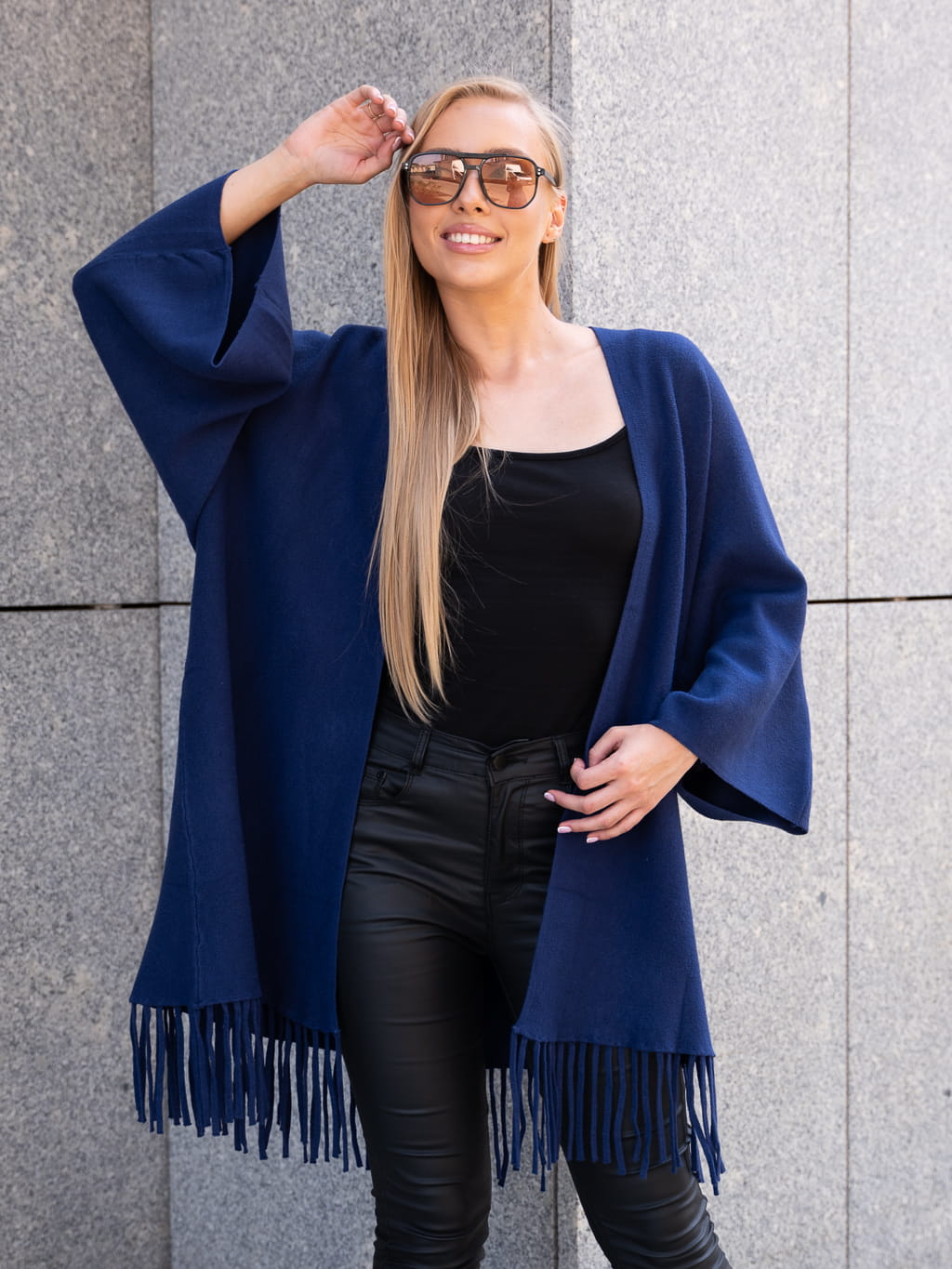 Luźny KARDIGAN z frędzelkami ZOEY - granat