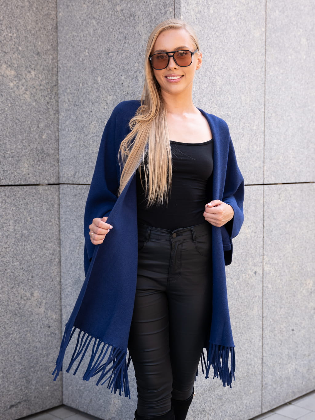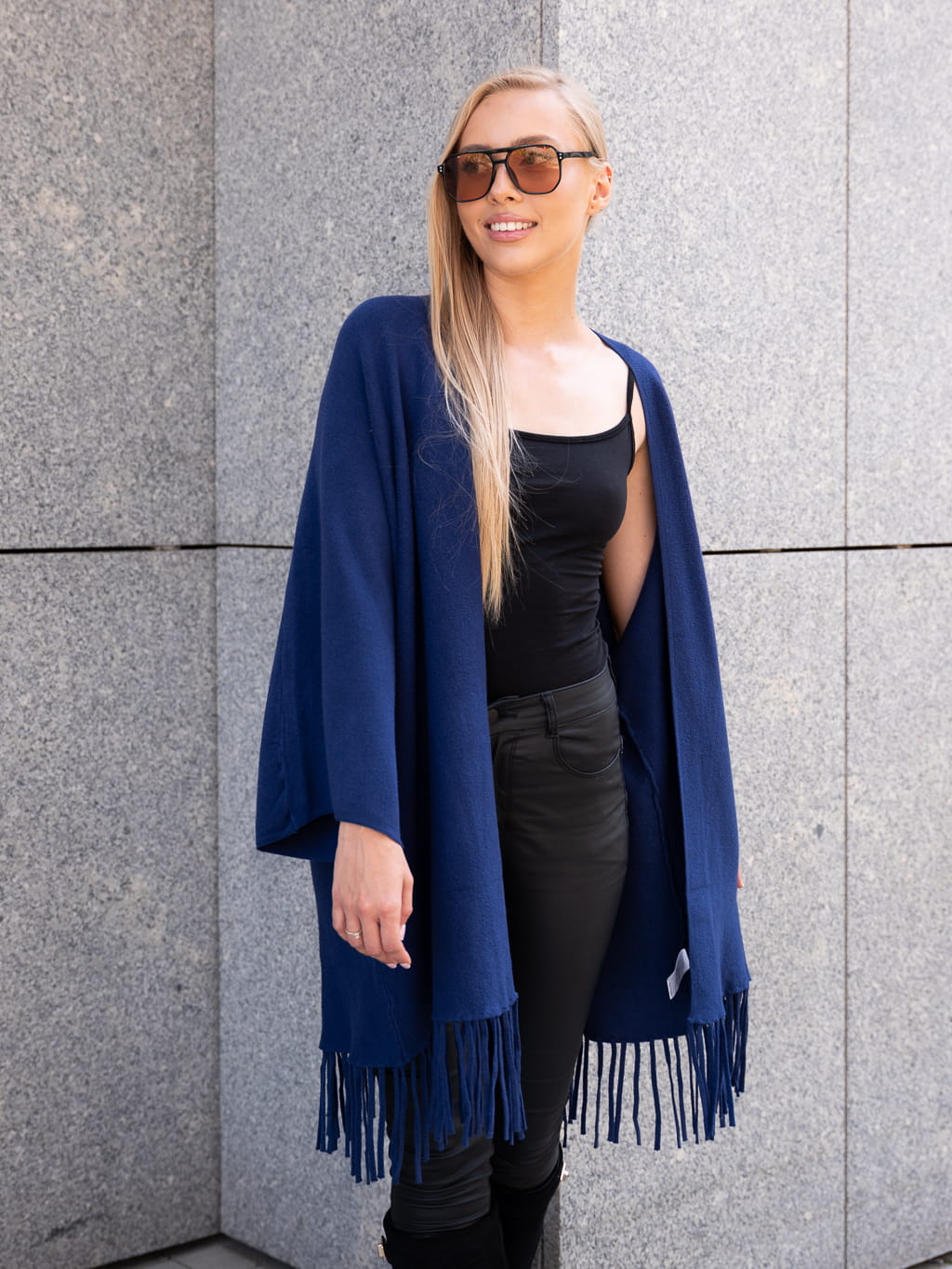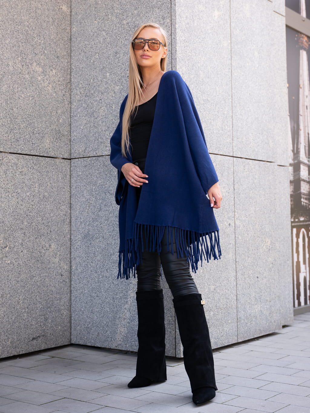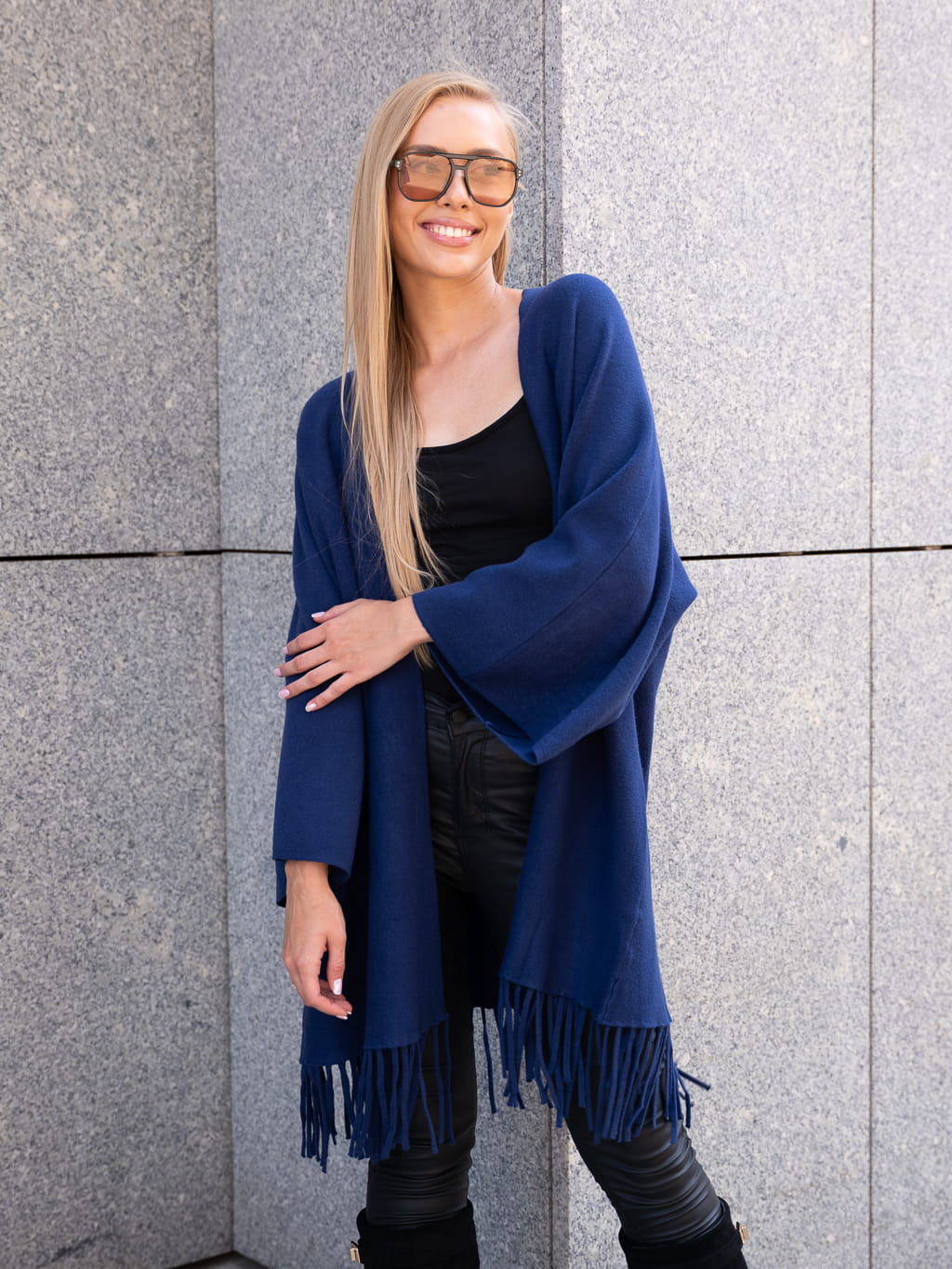 Luźny KARDIGAN z frędzelkami ZOEY - granat