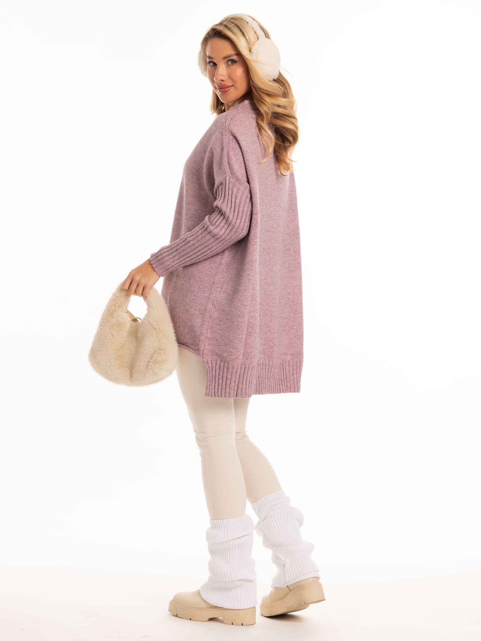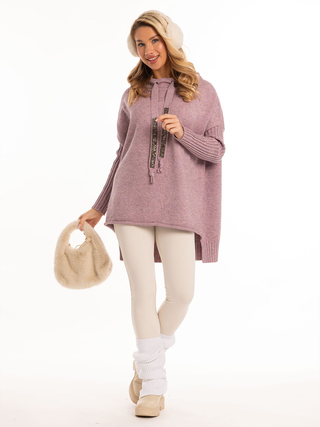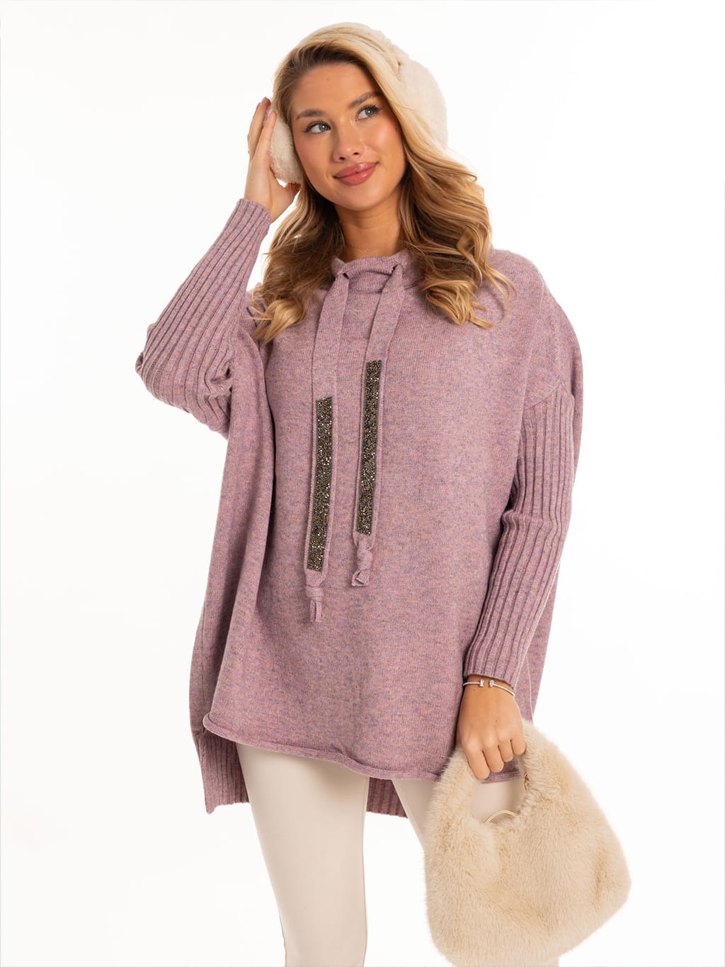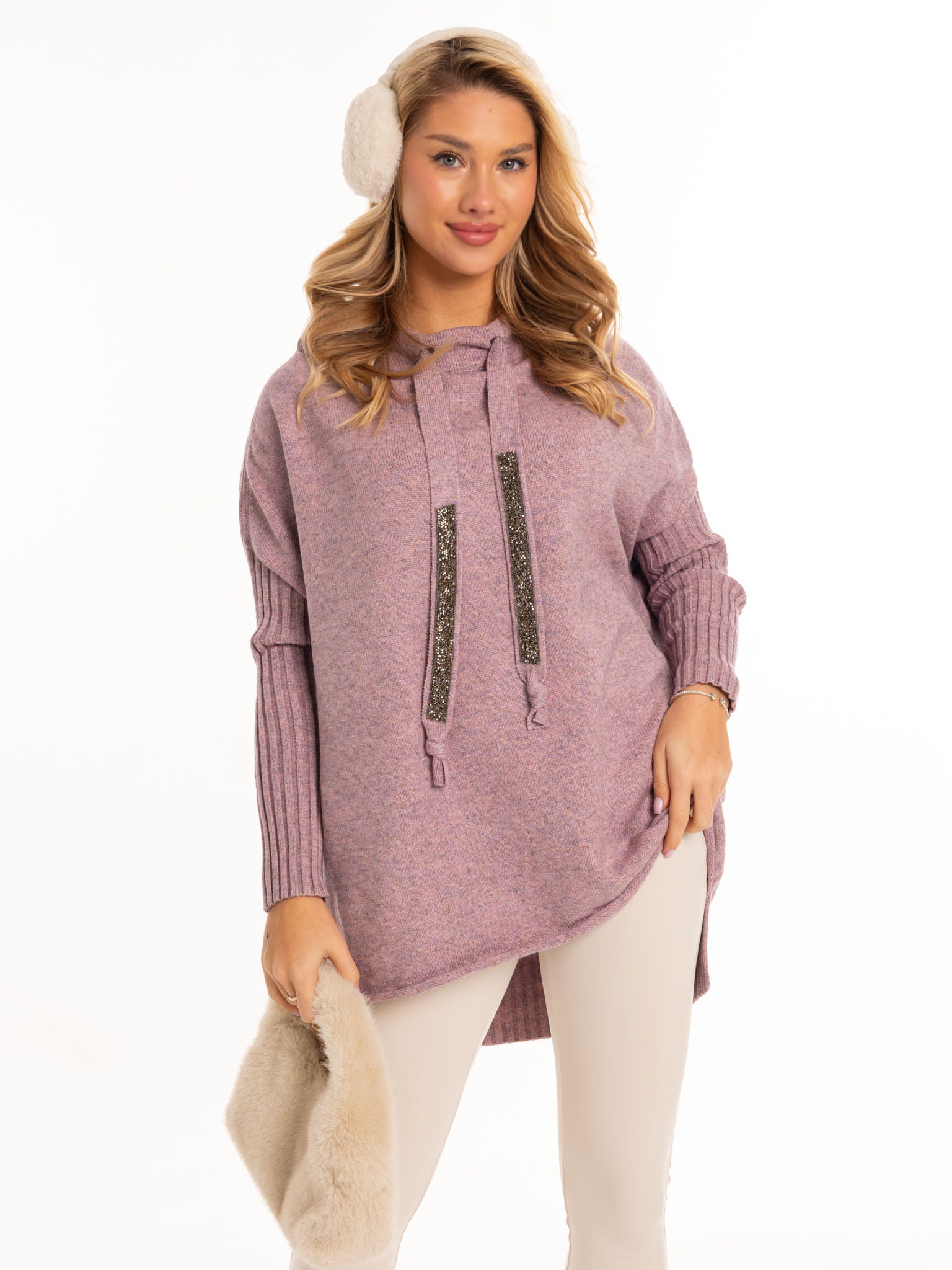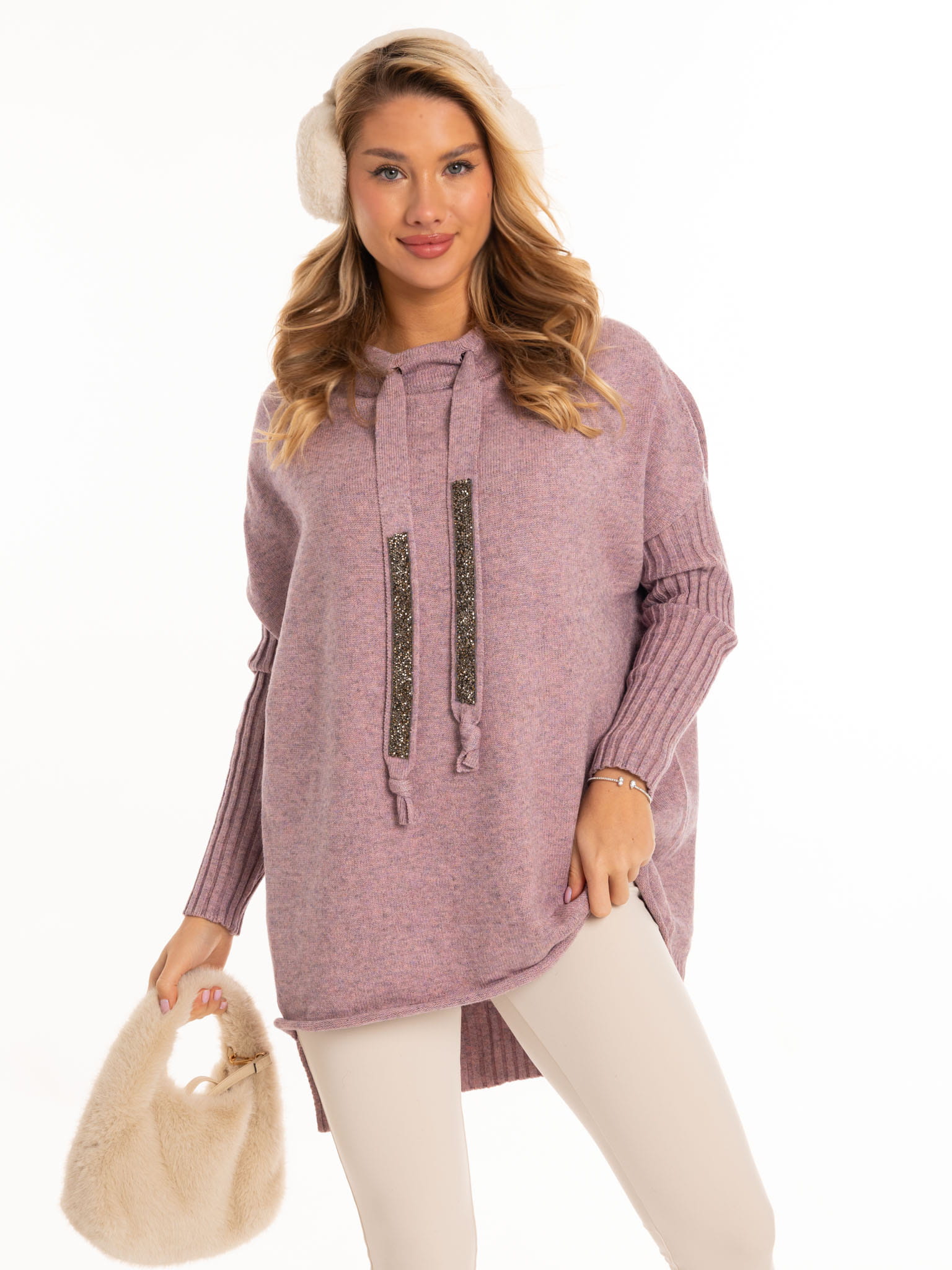 Ten stylowy, luźny sweter to idealne połączenie wygody i subtelnego blasku. Wykonany z miękkiej, przyjemnej w dotyku dzianiny, zapewnia komfort noszenia przez cały dzień. Klasyczny krój z lekko opadającą linią ramion nadaje sylwetce swobodny, nonszalancki charakter.
