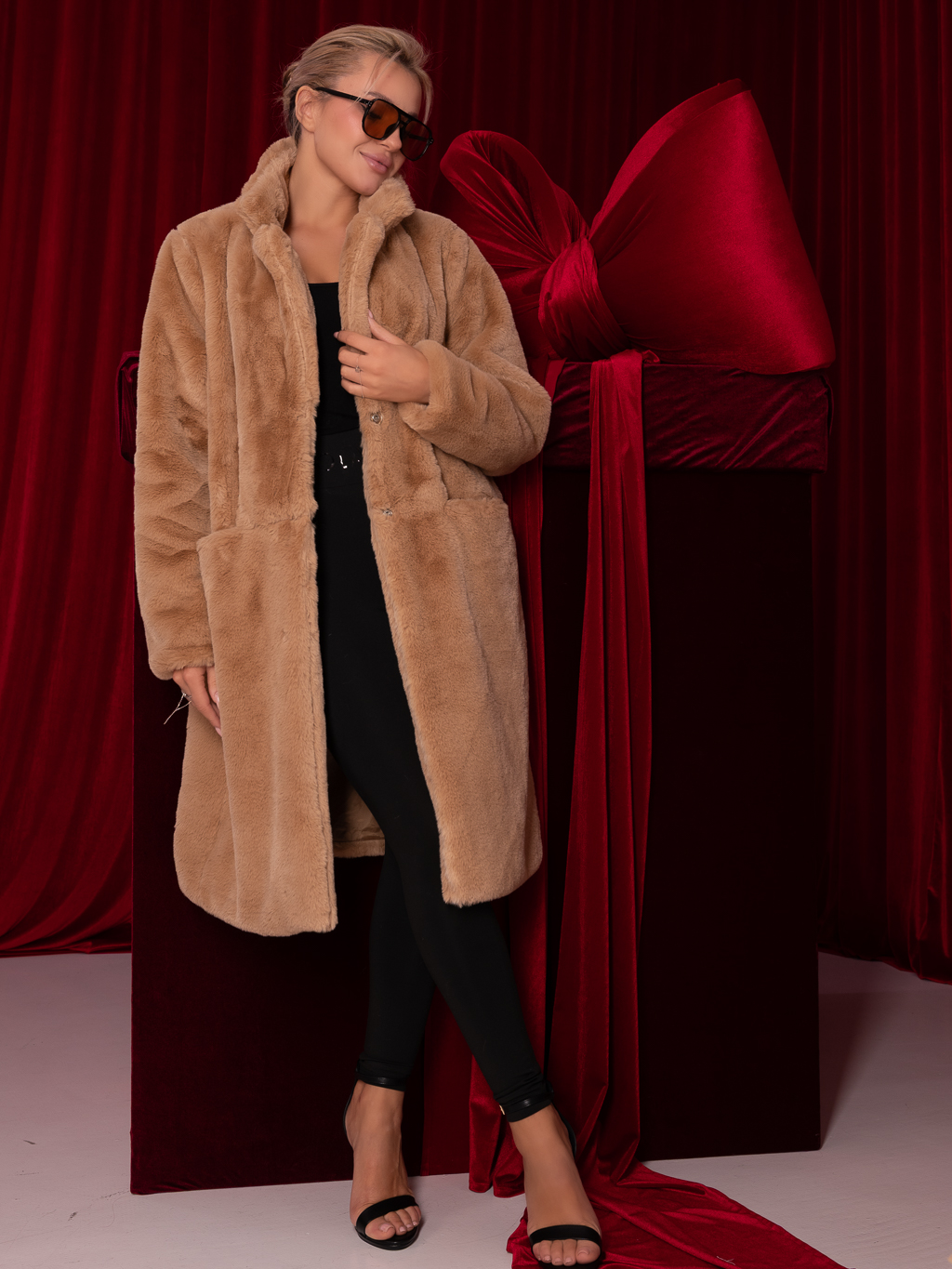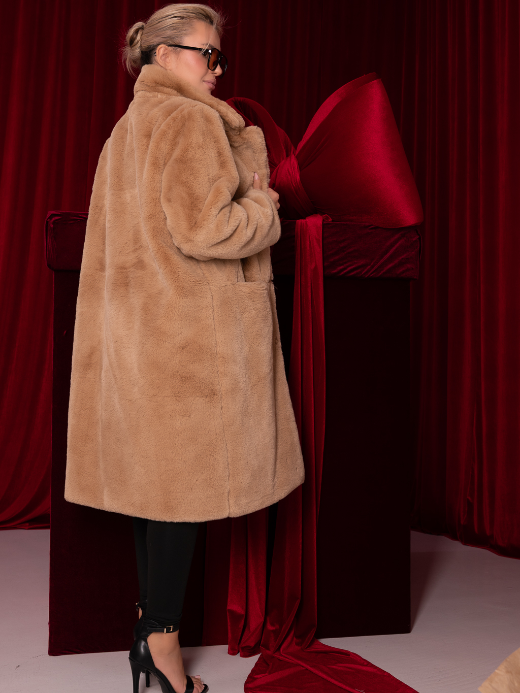 PŁASZCZ futrzany z kołnierzem i kieszeniami MAURA - carmel