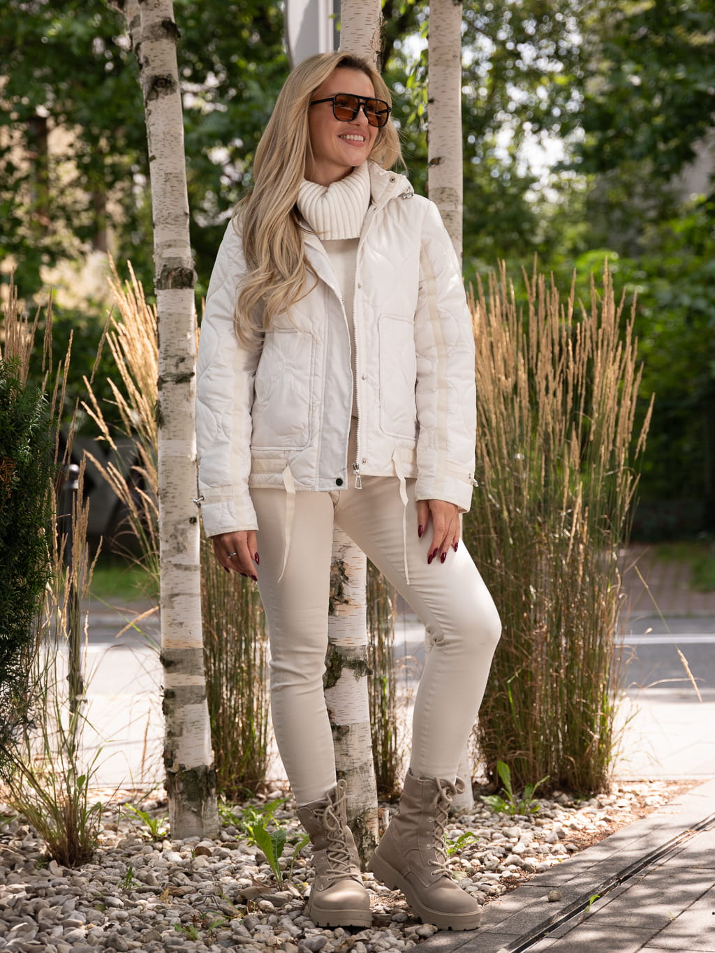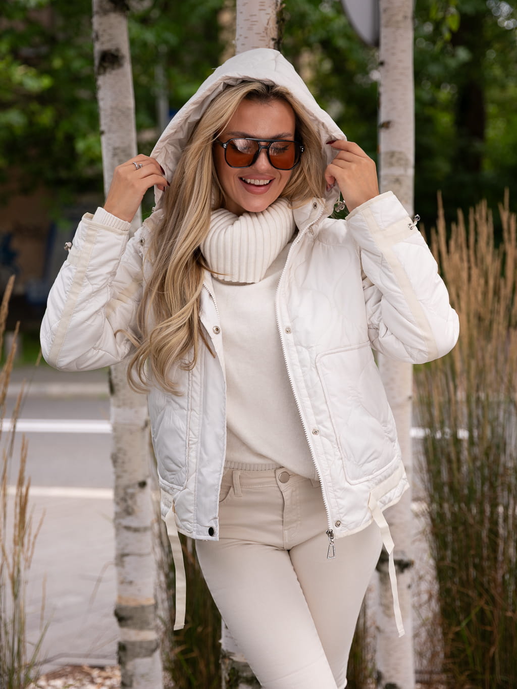 Pikowana KURTKA z przeszyciami fale RUBY - biały