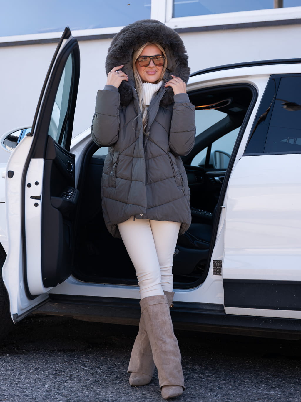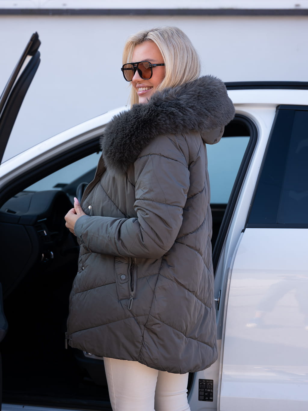Puchowa KURTKA z miękkim futerkiem LEXI - grafit