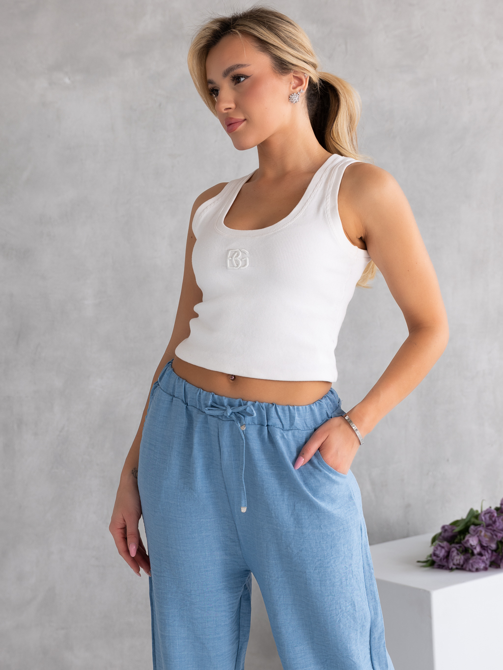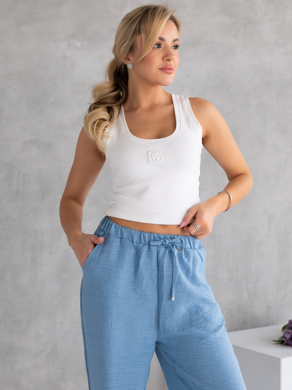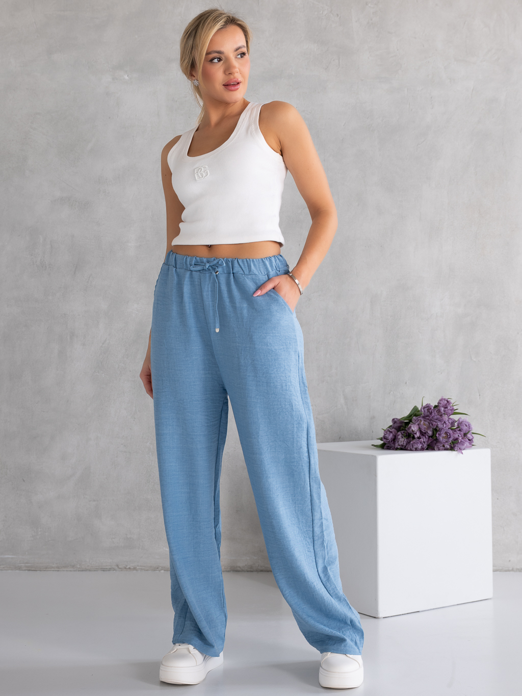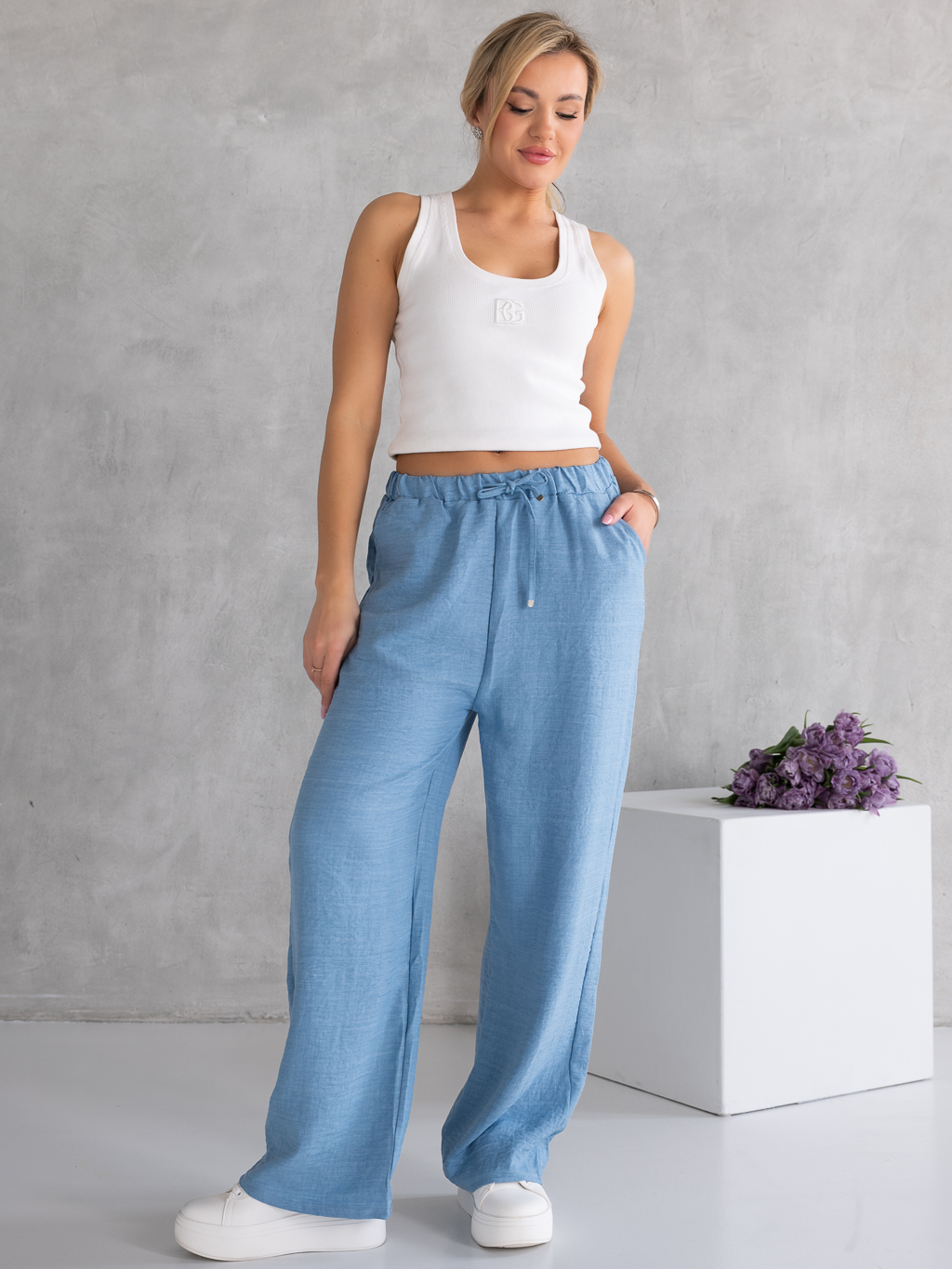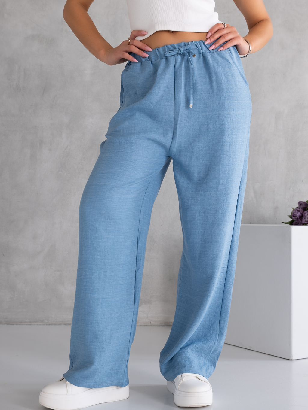 SPODNIE Ala LEN Luźne Casual PELAGIA - Błękit