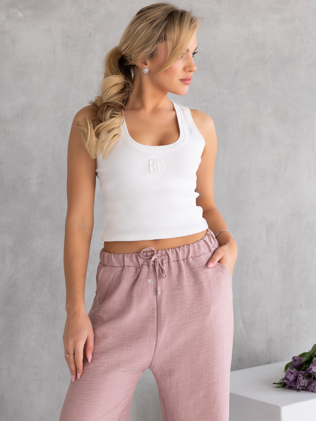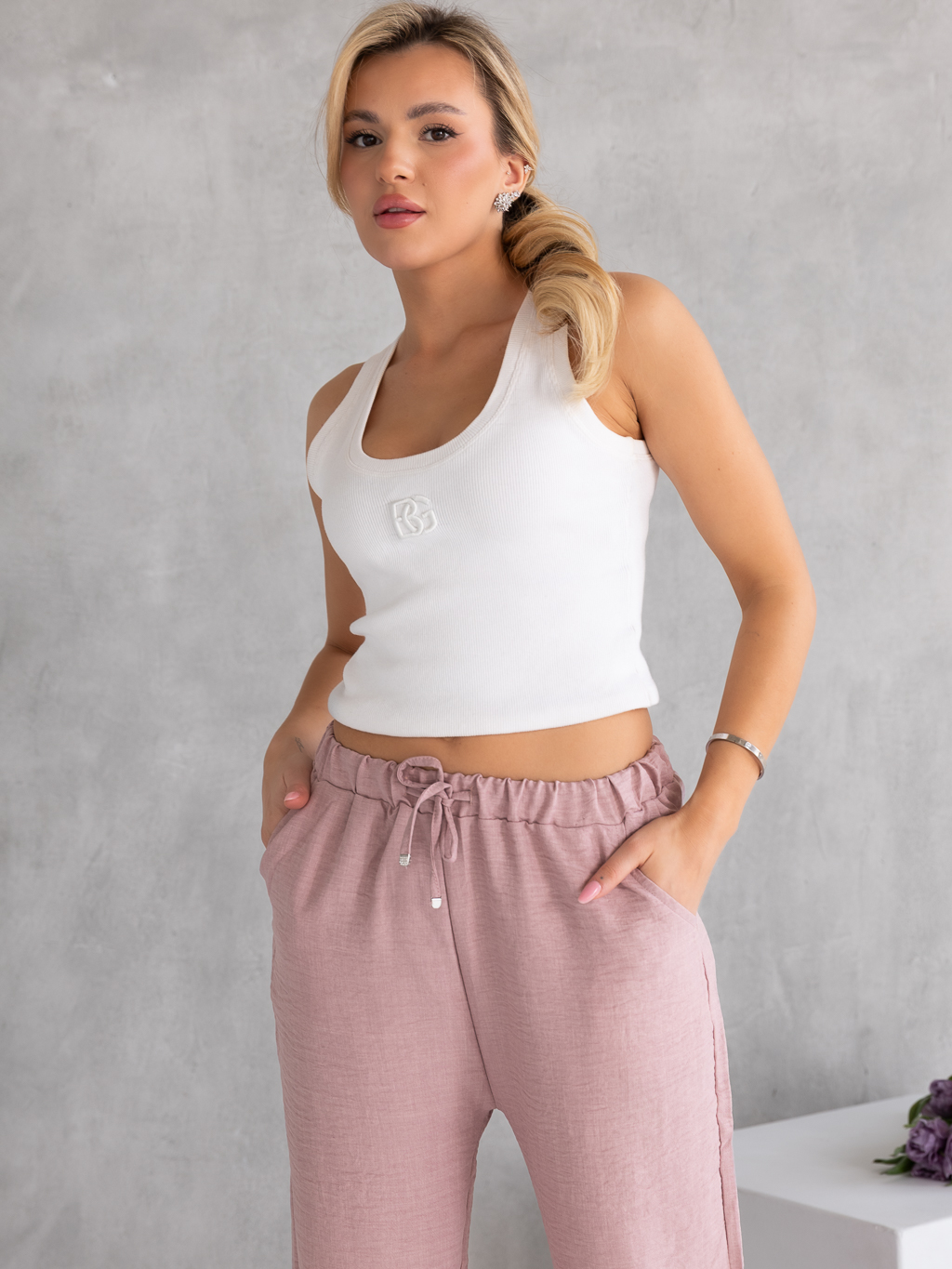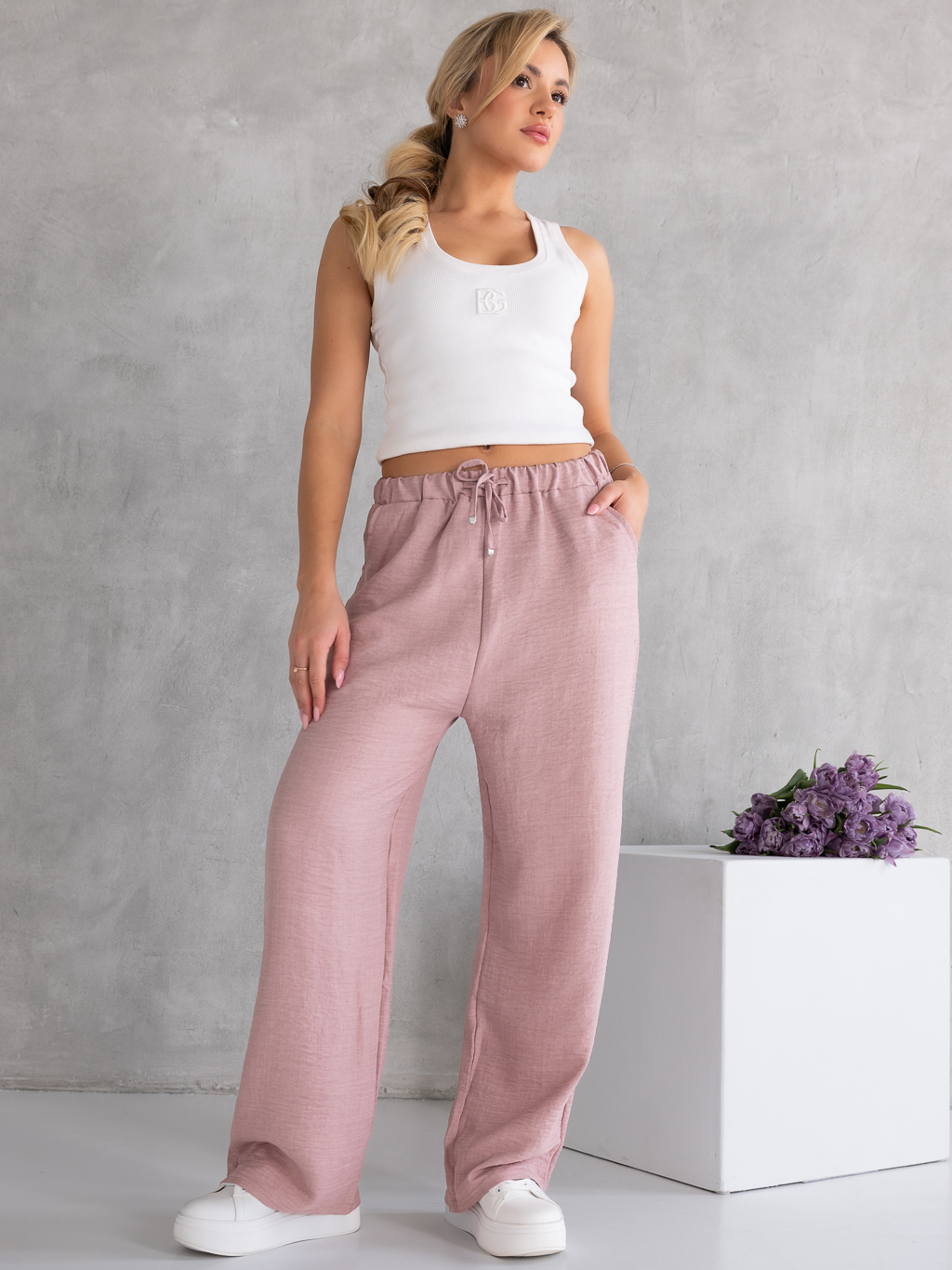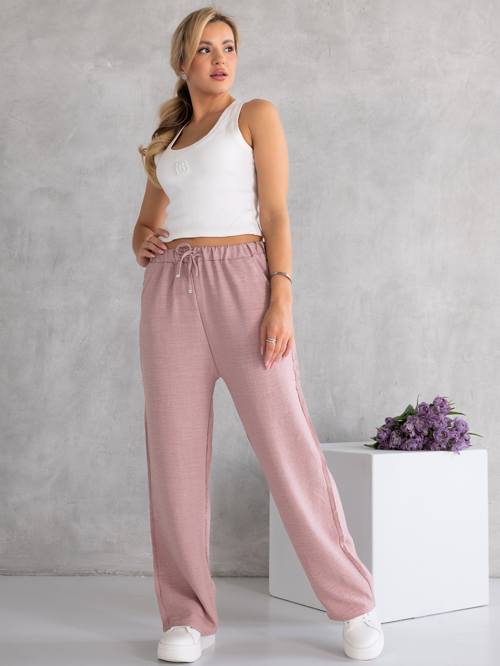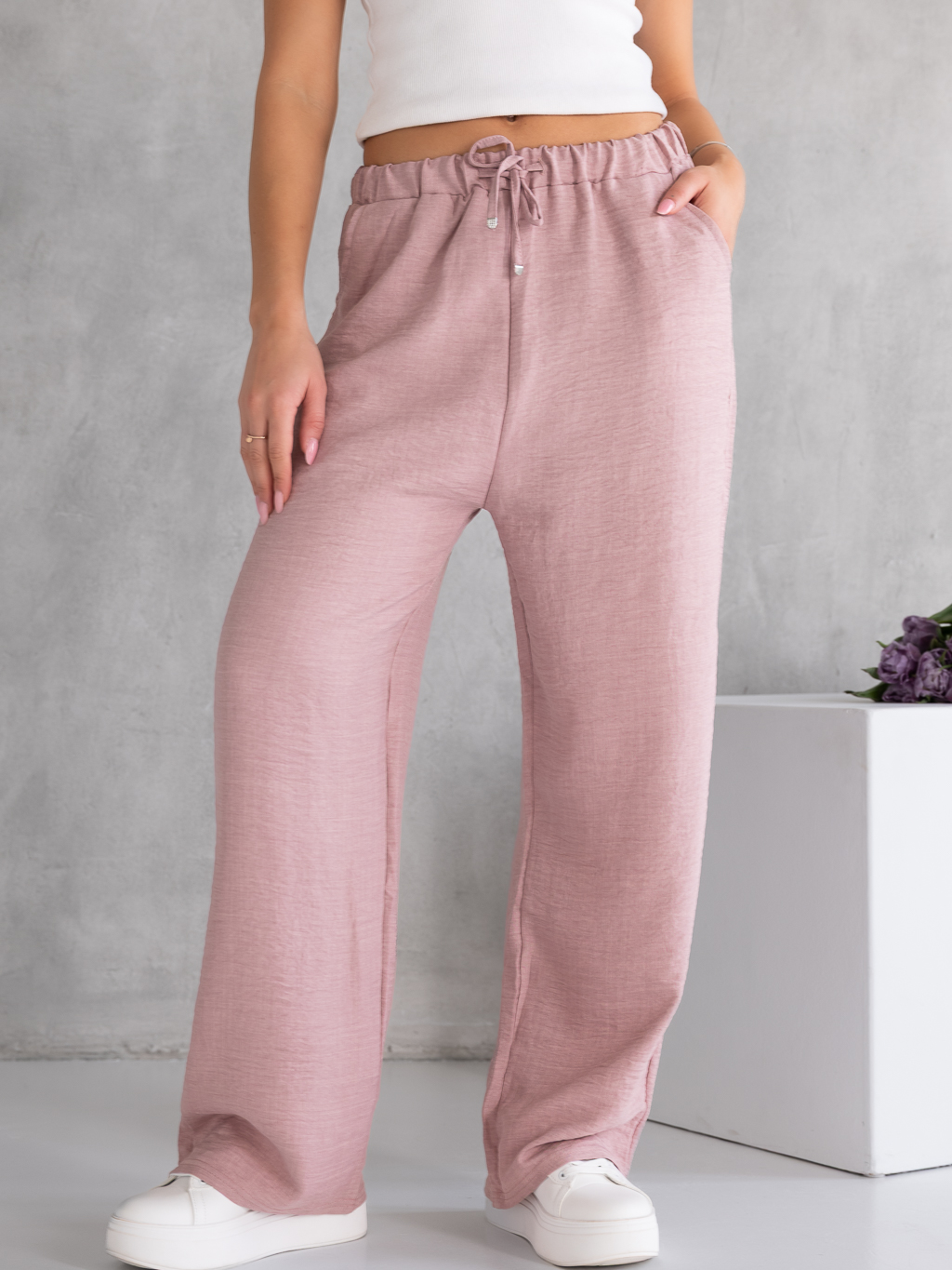 SPODNIE Ala LEN Luźne Casual PELAGIA - Puder