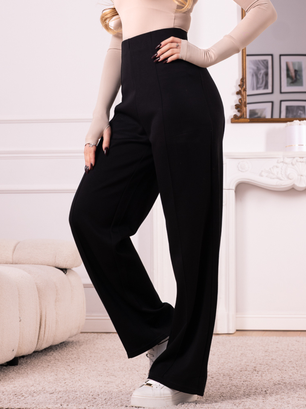 Komfortowe spodnie dresowe o szerokim fasonie, które gwarantują wygodę i swobodę noszenia. Przeszycia wzdłuż nogawek nadają im nowoczesnego wyglądu oraz optycznie wydłużają sylwetkę. Idealne do codziennych stylizacji, na co dzień, do domu, na spacer lub w luźnym, miejskim stylu.