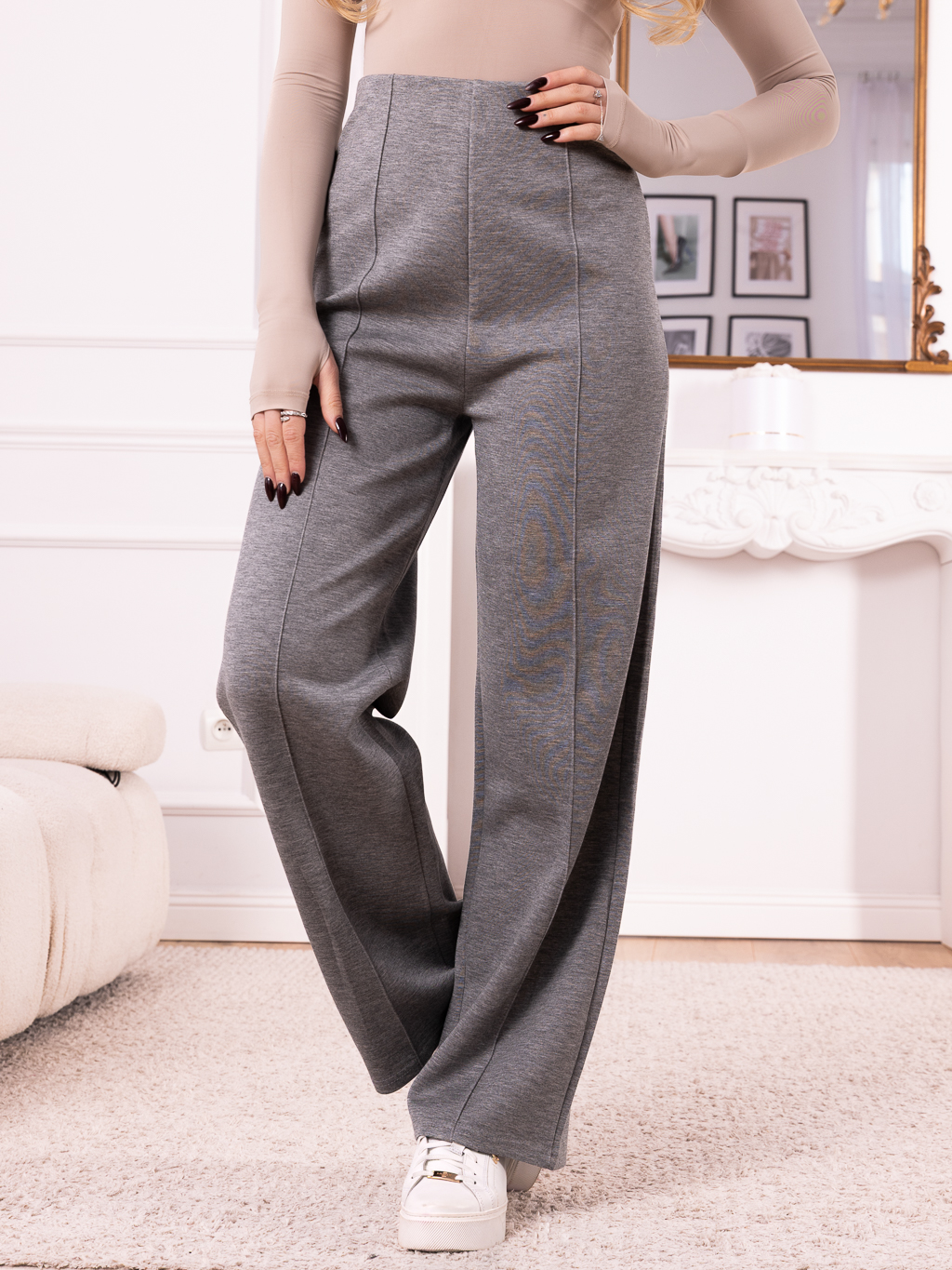 Komfortowe spodnie dresowe o szerokim fasonie, które gwarantują wygodę i swobodę noszenia. Przeszycia wzdłuż nogawek nadają im nowoczesnego wyglądu oraz optycznie wydłużają sylwetkę. Idealne do codziennych stylizacji, na co dzień, do domu, na spacer lub w luźnym, miejskim stylu.