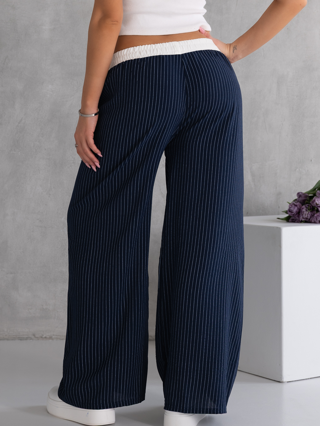 SPODNIE Szerokie PASKI Lamówka LIVA - Granat