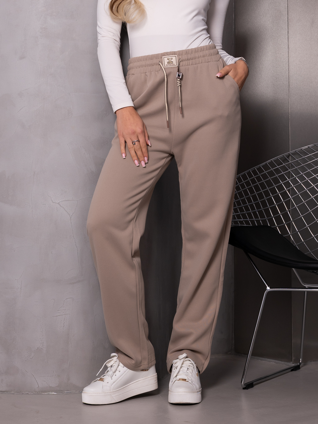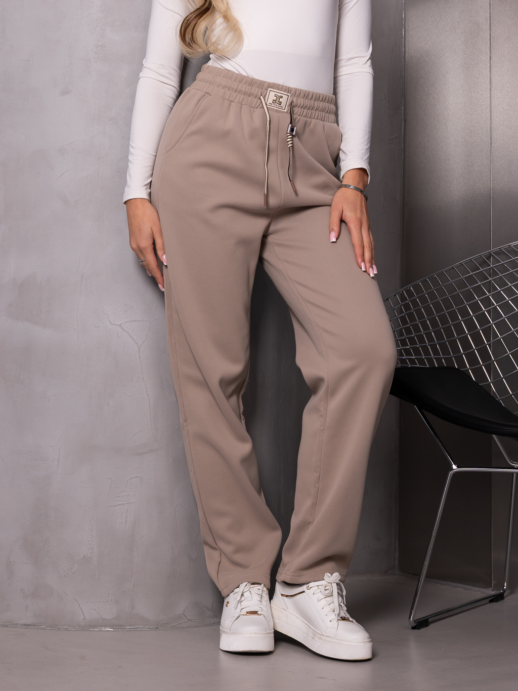 SPODNIE dresowe z naszywką EILIDH - beż