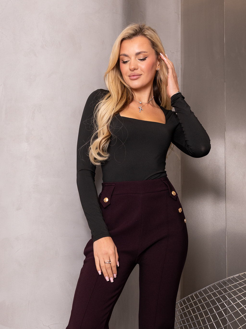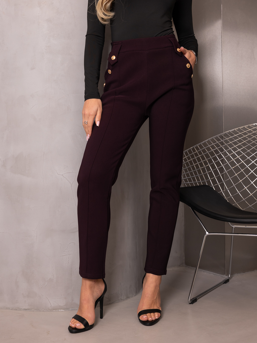 SPODNIE eleganckie ze złotymi guzikami CALISTA - bakłażan