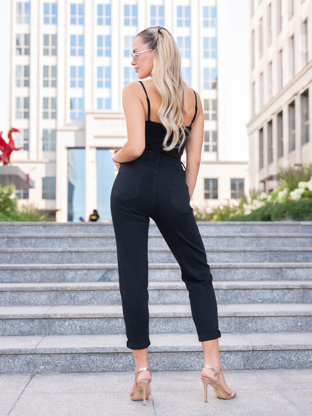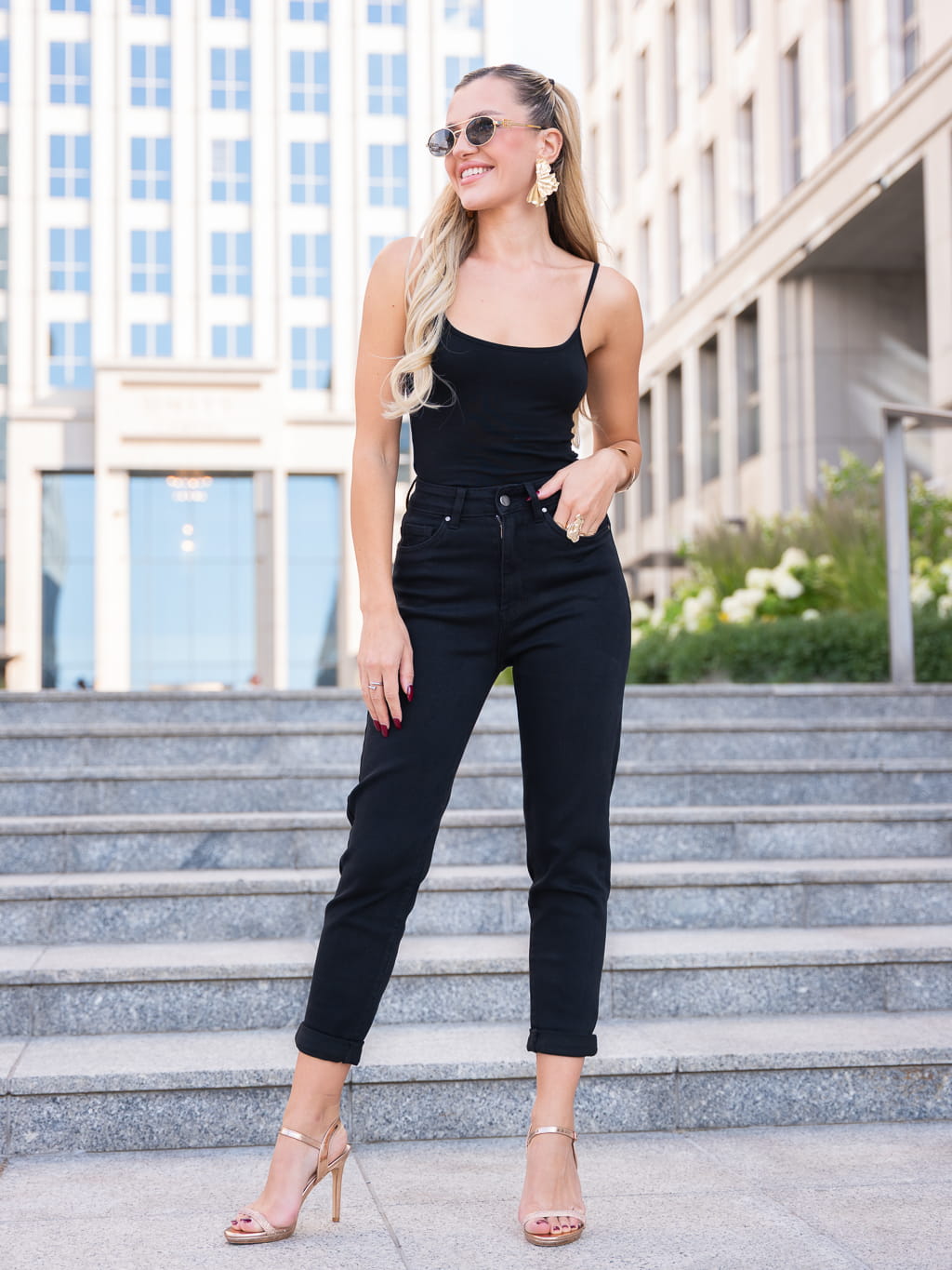 SPODNIE jeansowe mom fit z prostą nogawką SCARLETT - czarny