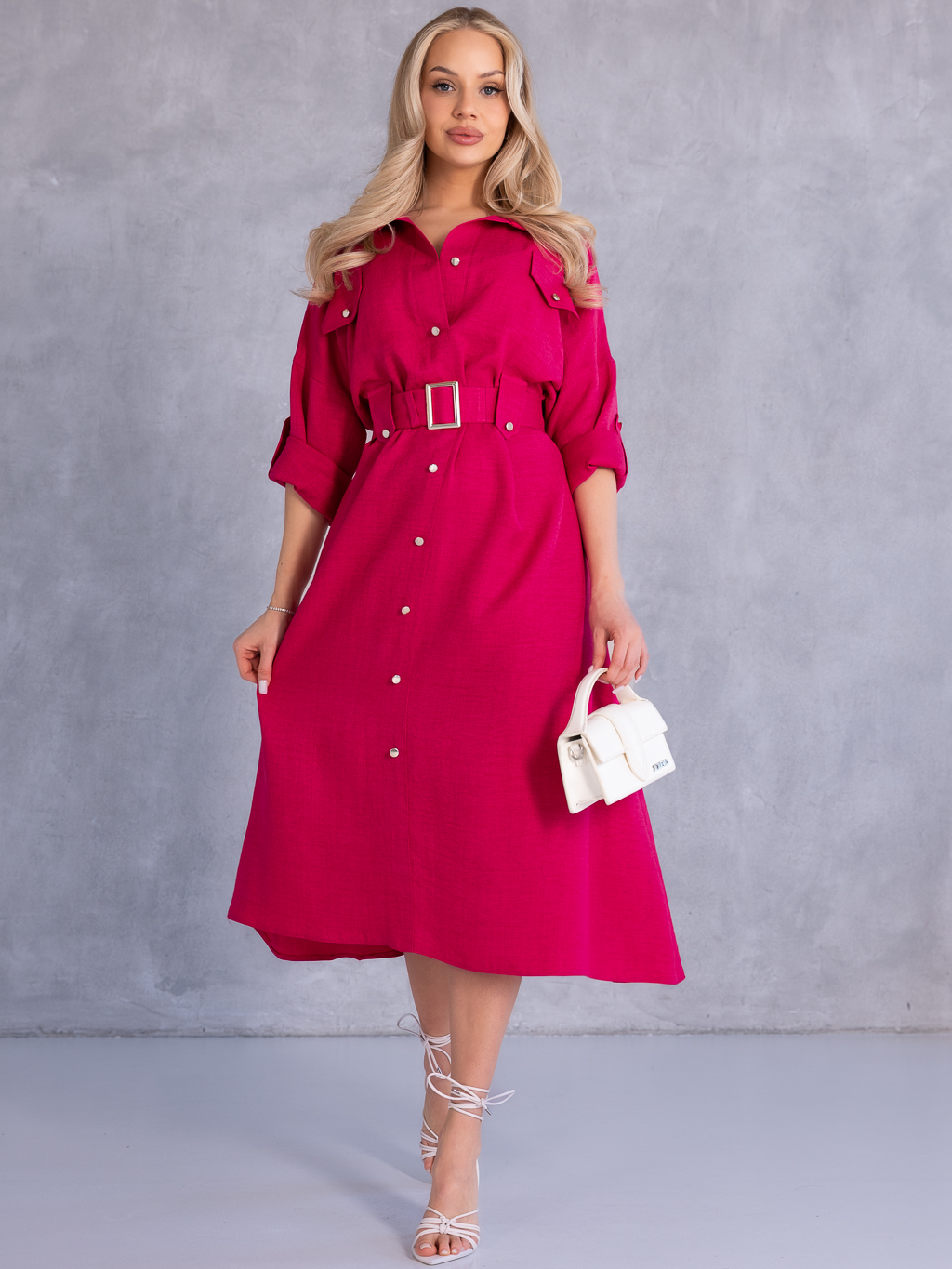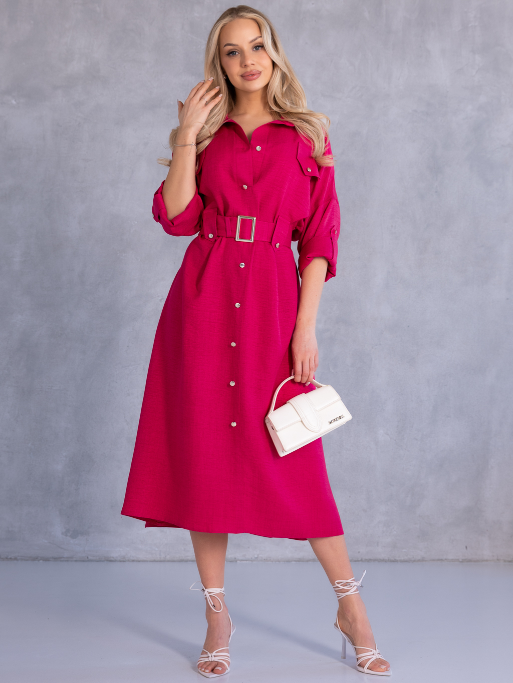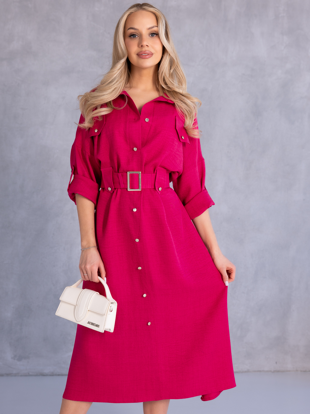 SUKIENKA Szmizjerka KOSZULOWA Midi KAILA - Fuksja