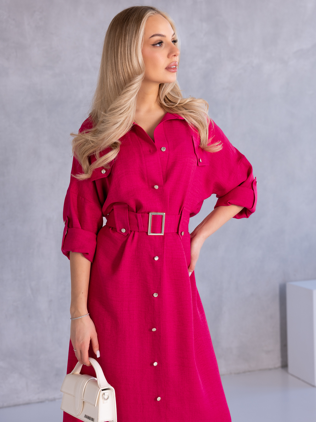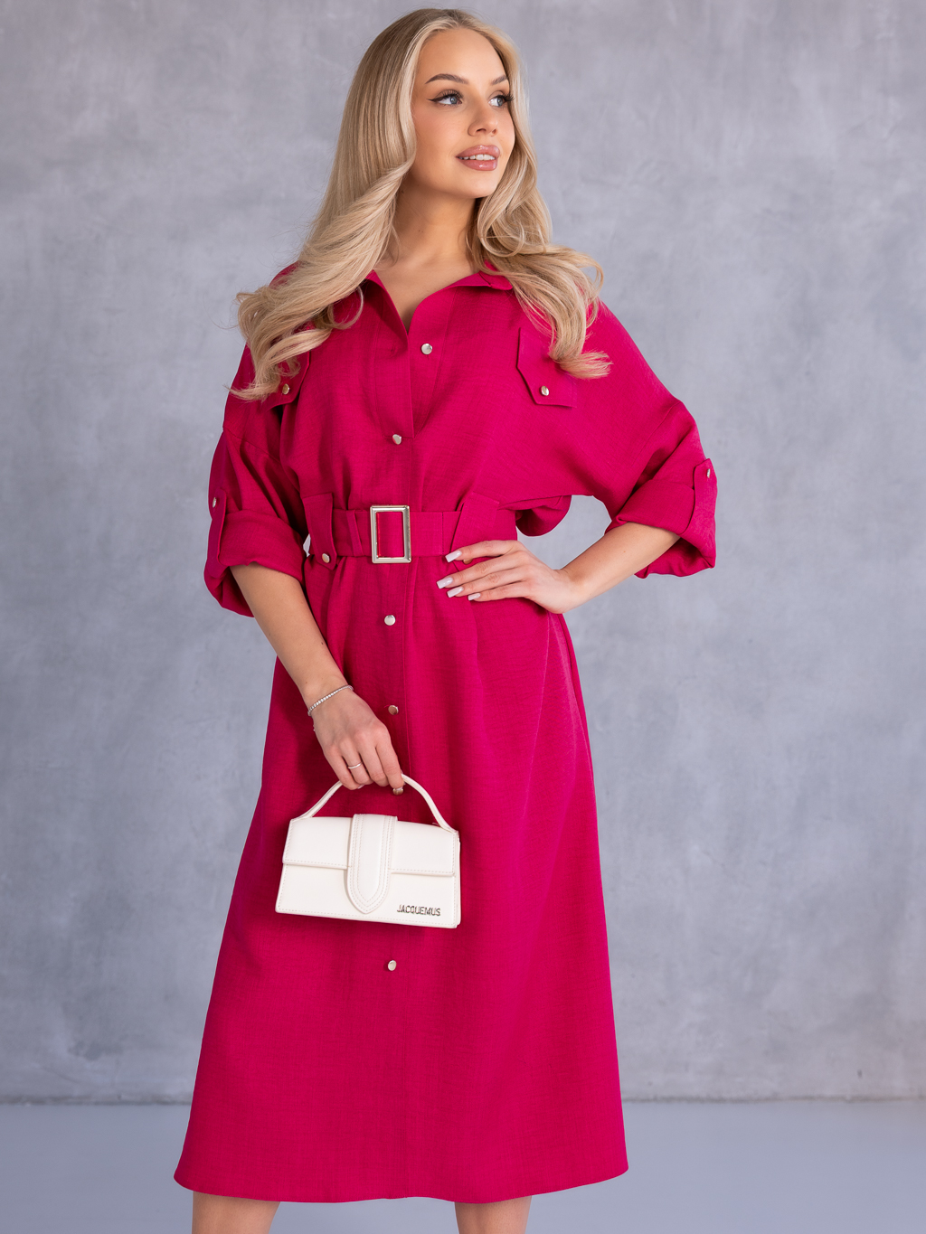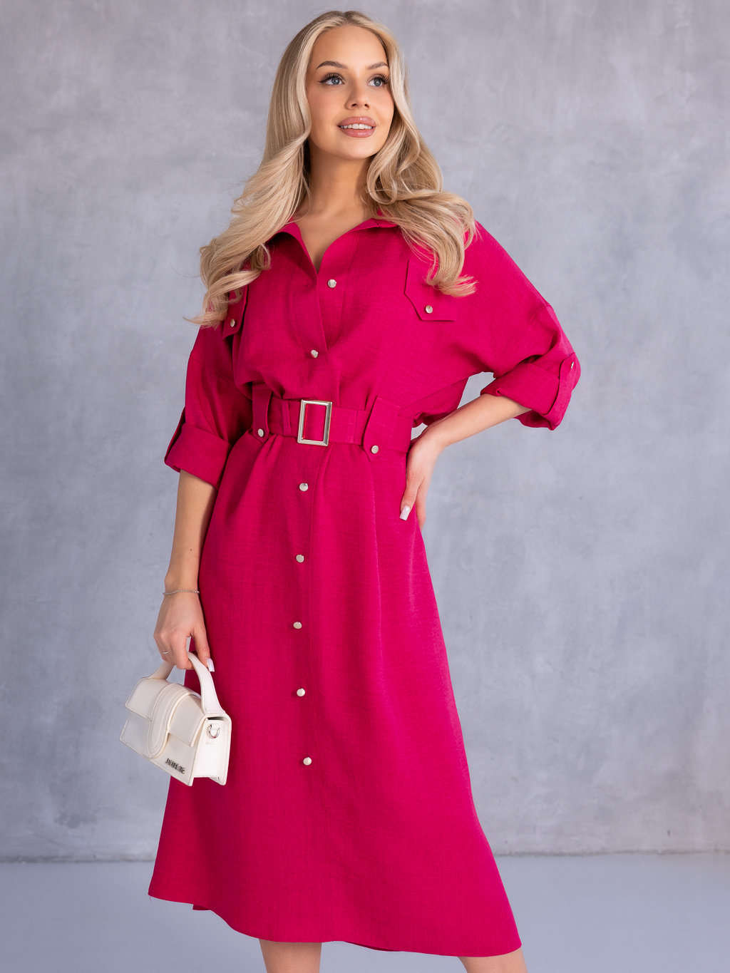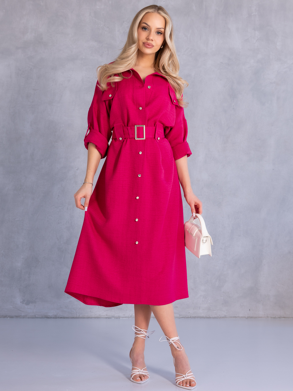 SUKIENKA Szmizjerka KOSZULOWA Midi KAILA - Fuksja