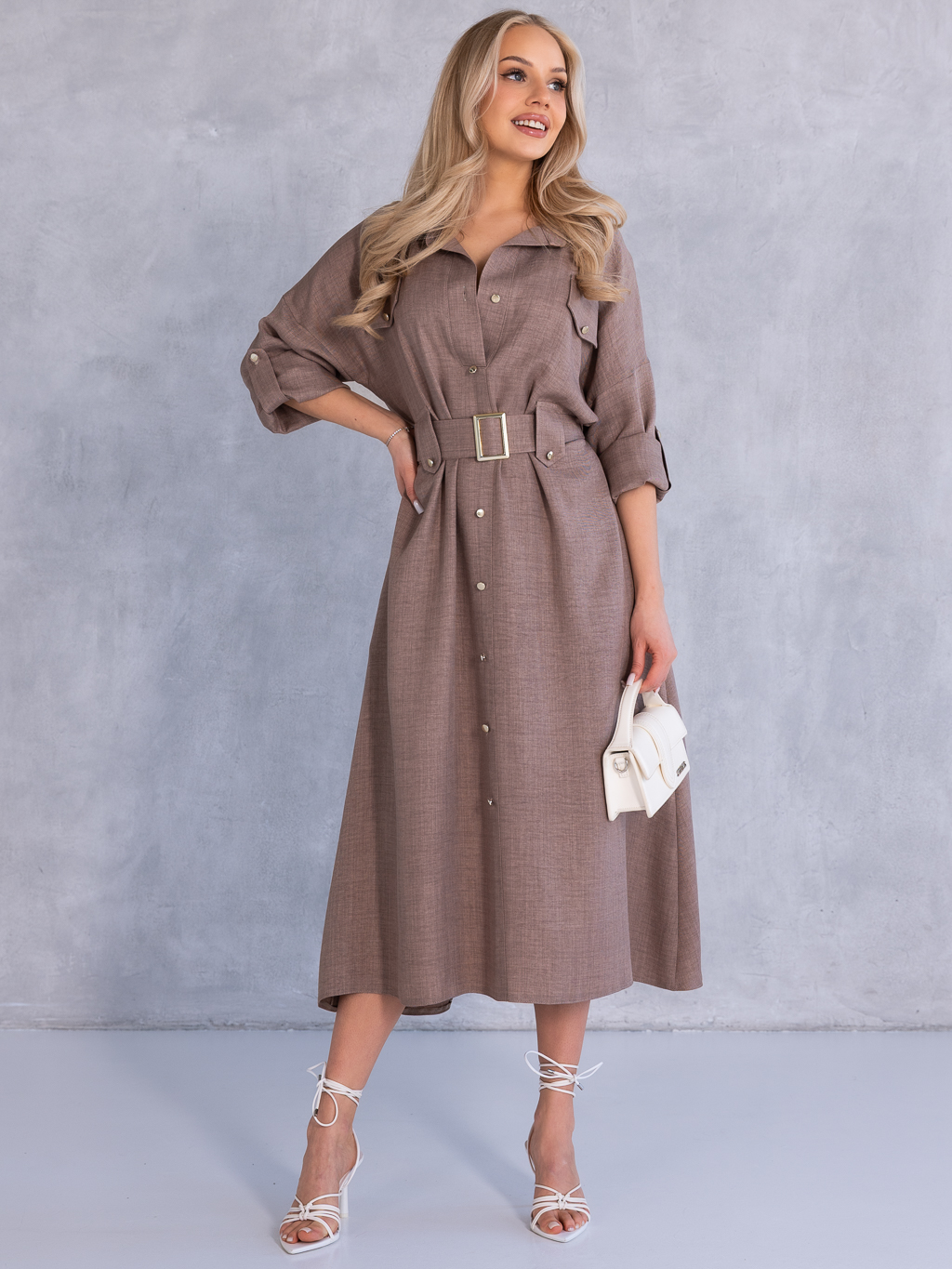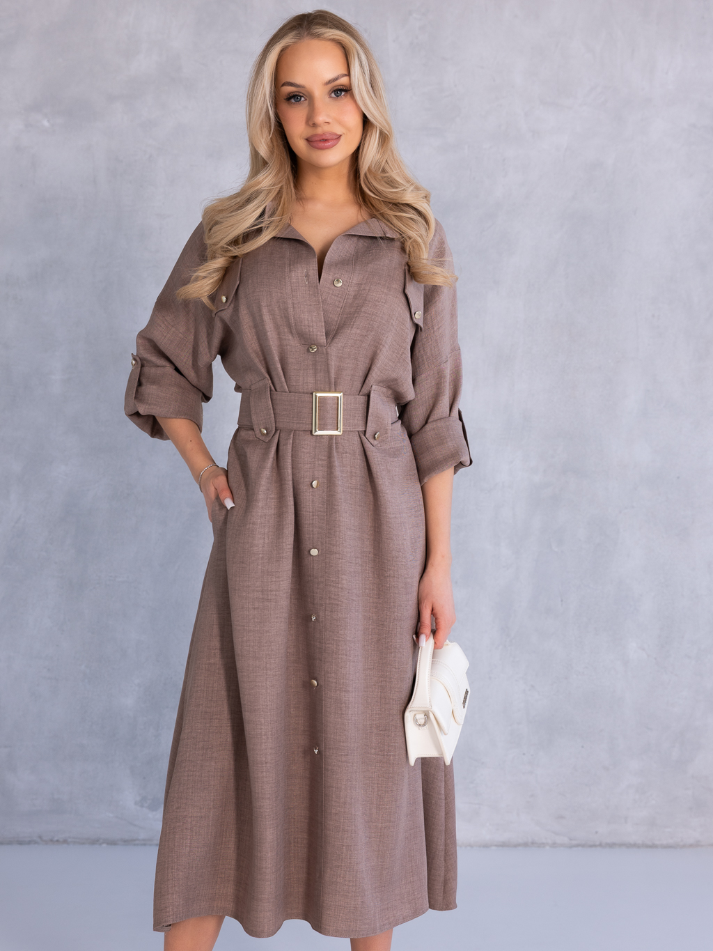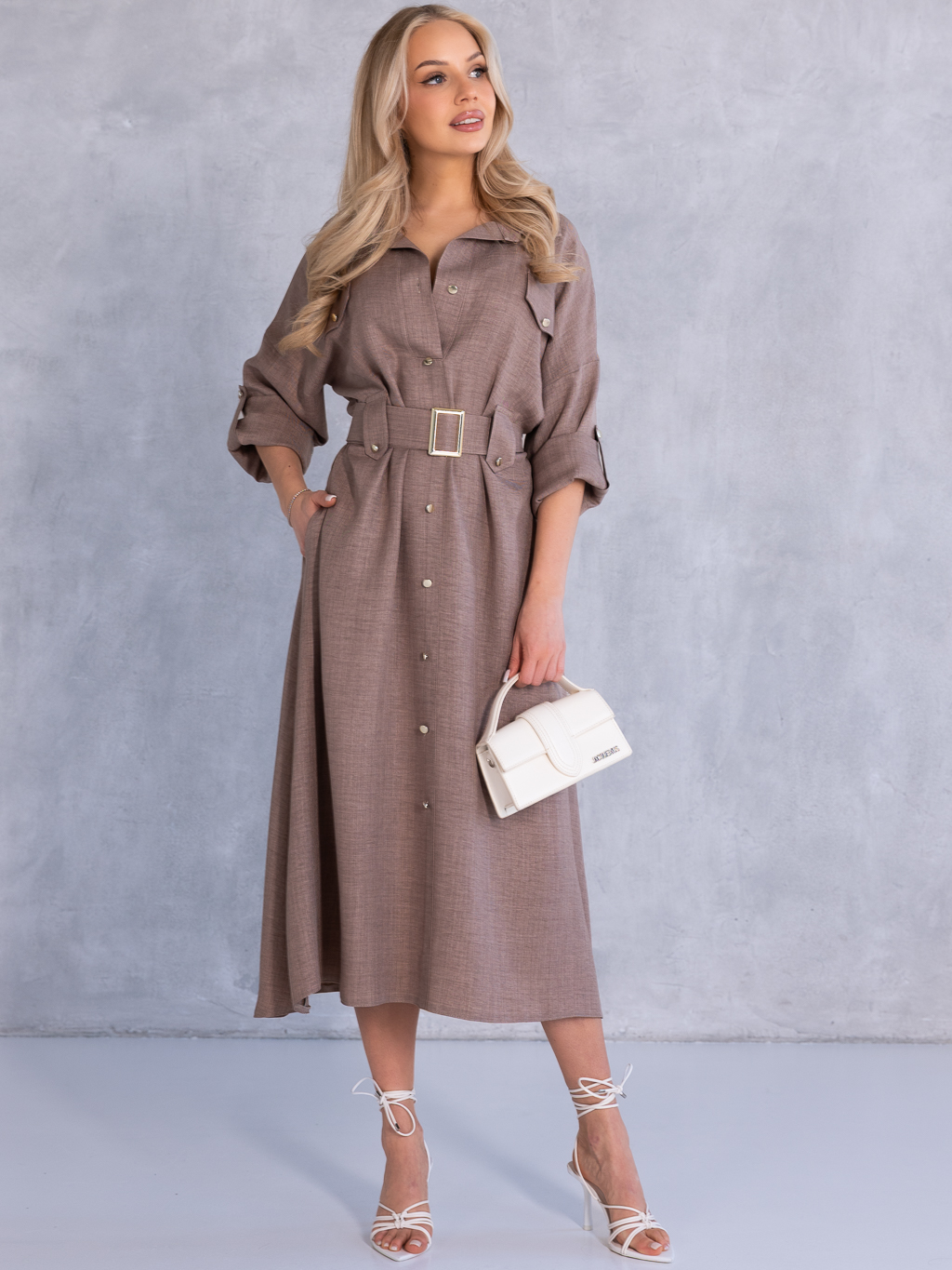 SUKIENKA Szmizjerka KOSZULOWA Midi KAILA - Kakao