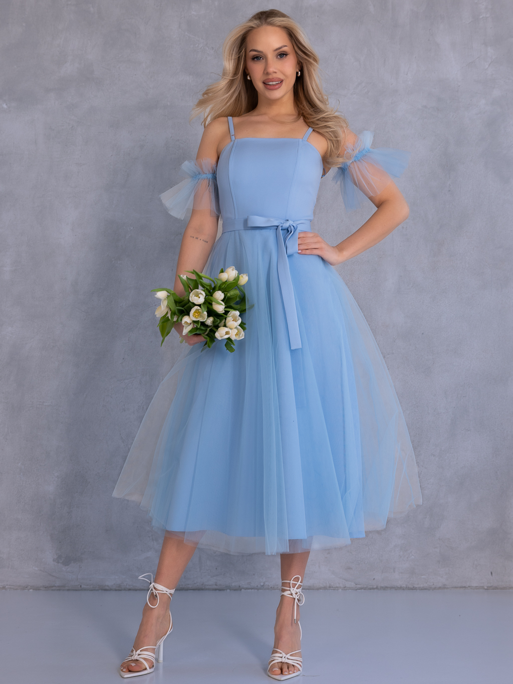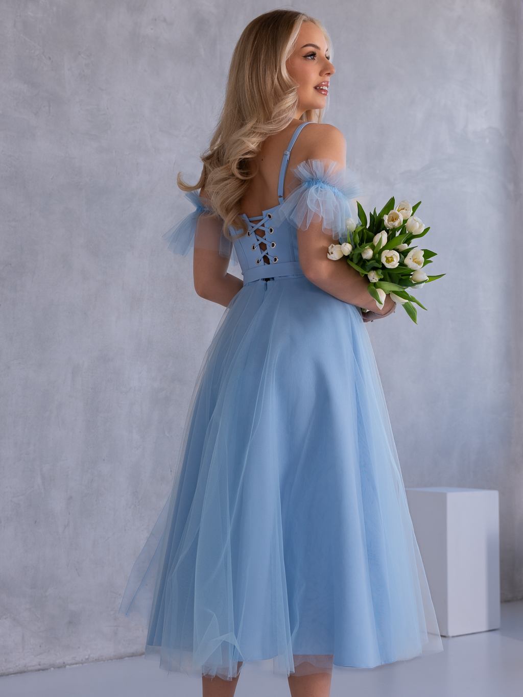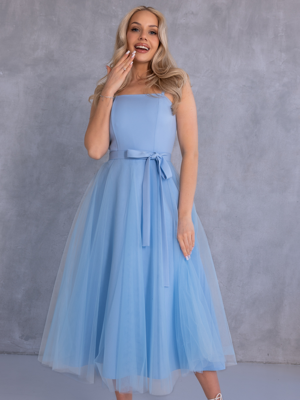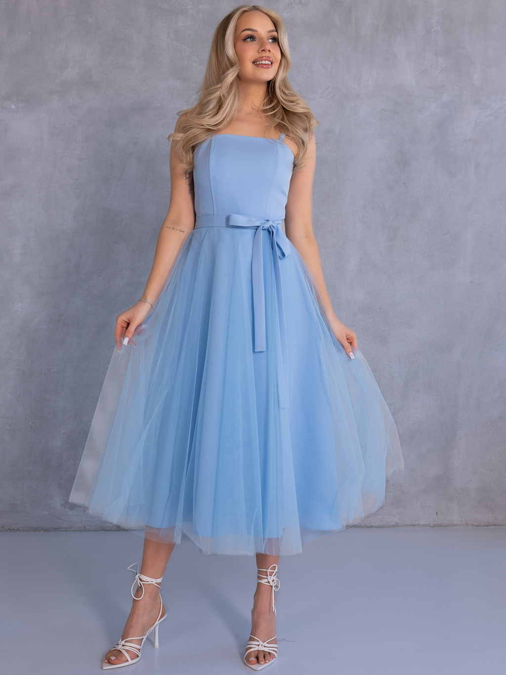 SUKIENKA Tiulowa GORSETOWA Ramiączka MIRABELLA - błękit