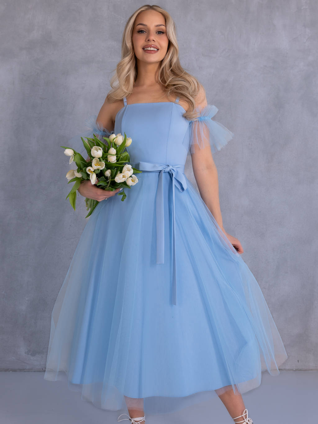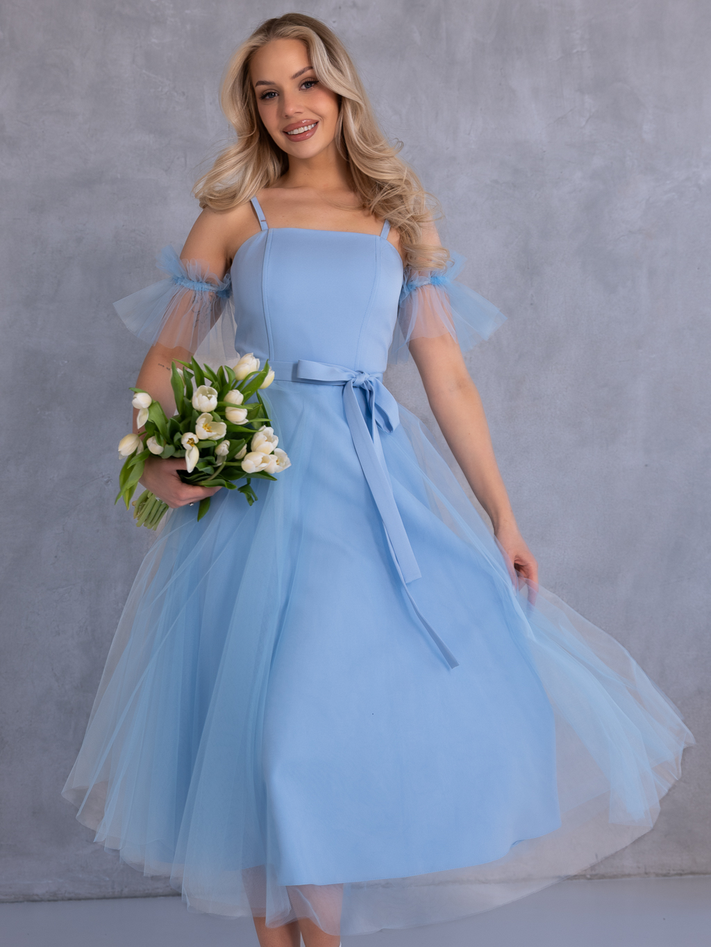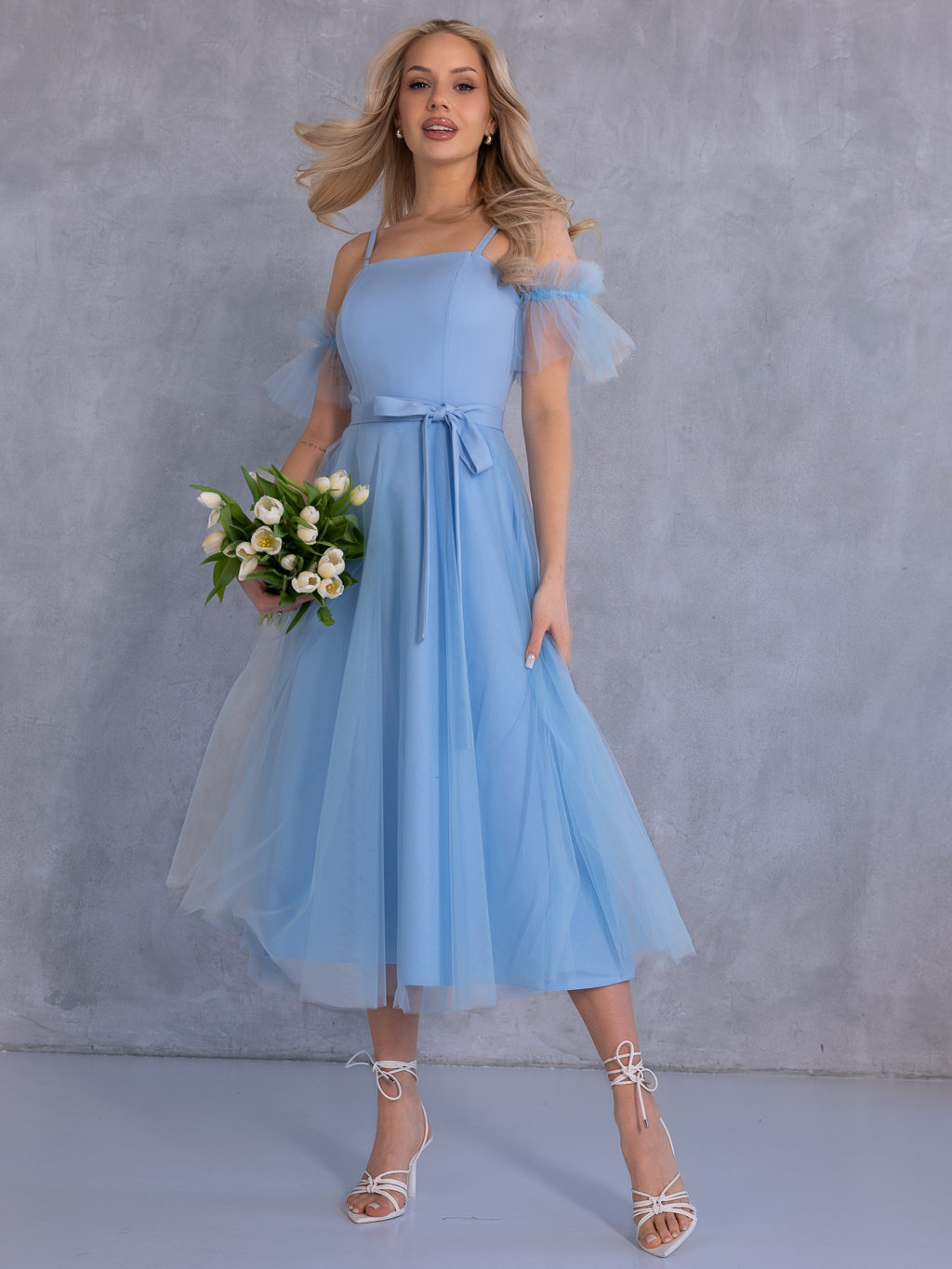 SUKIENKA Tiulowa GORSETOWA Ramiączka MIRABELLA - błękit