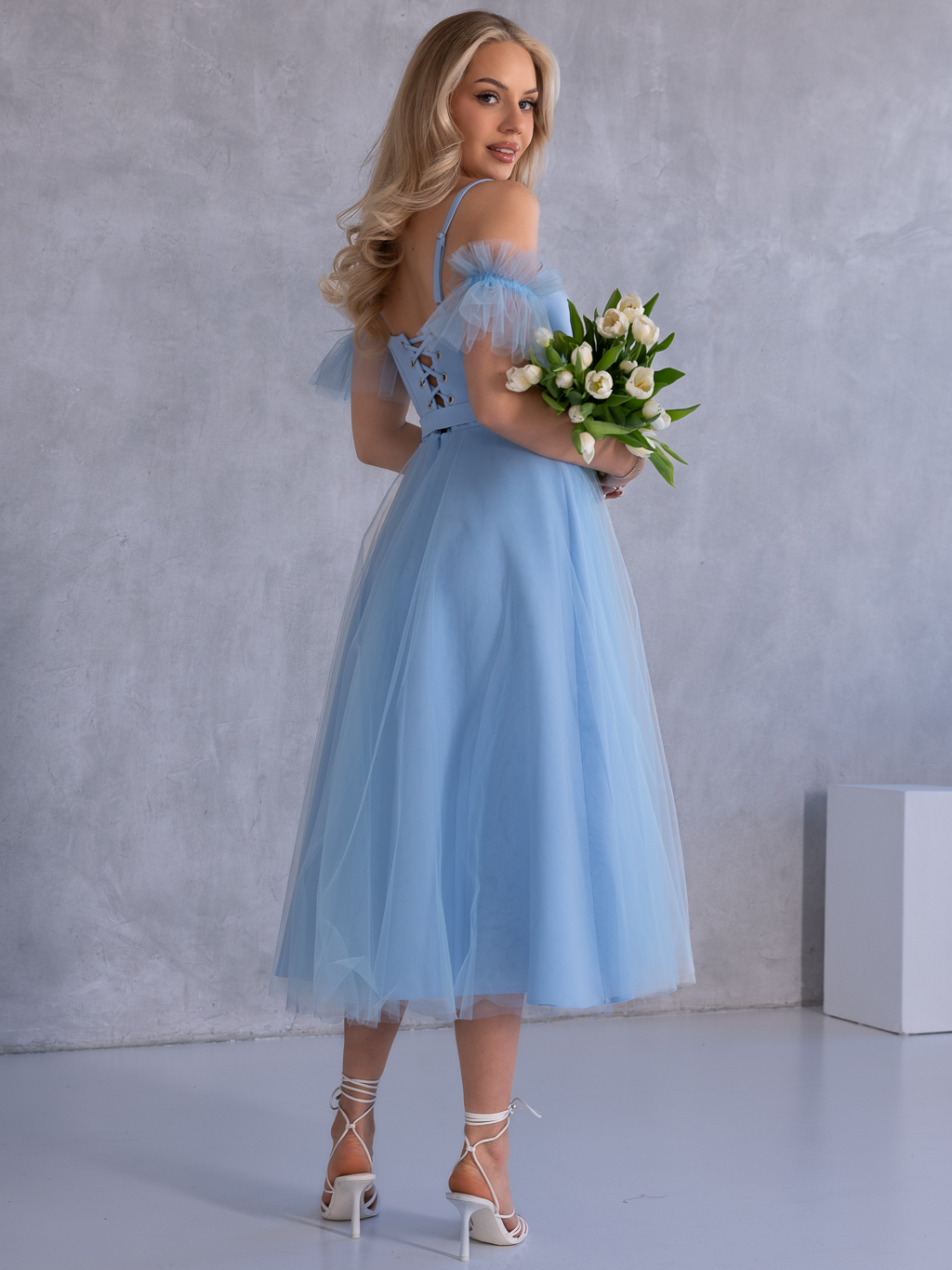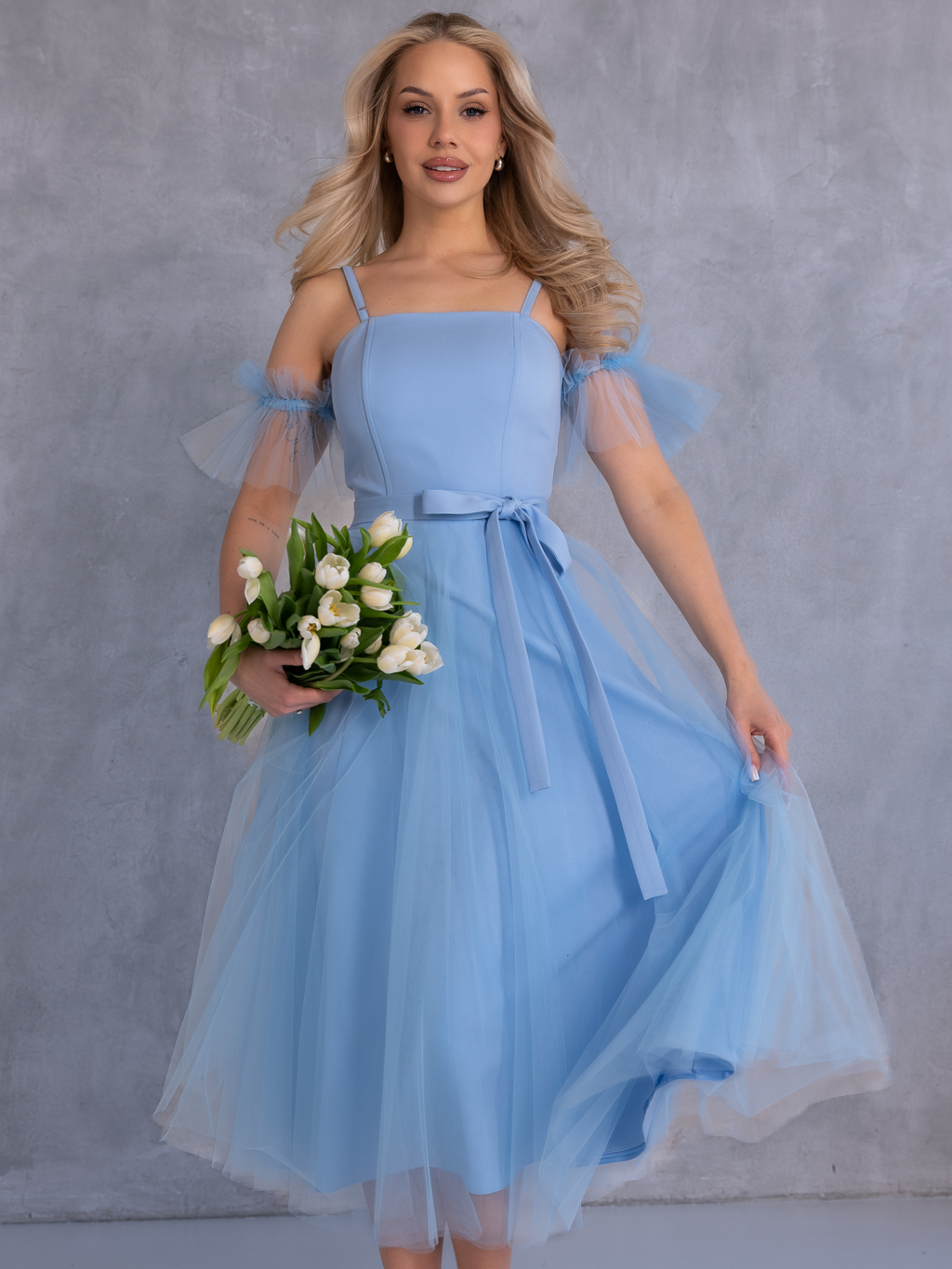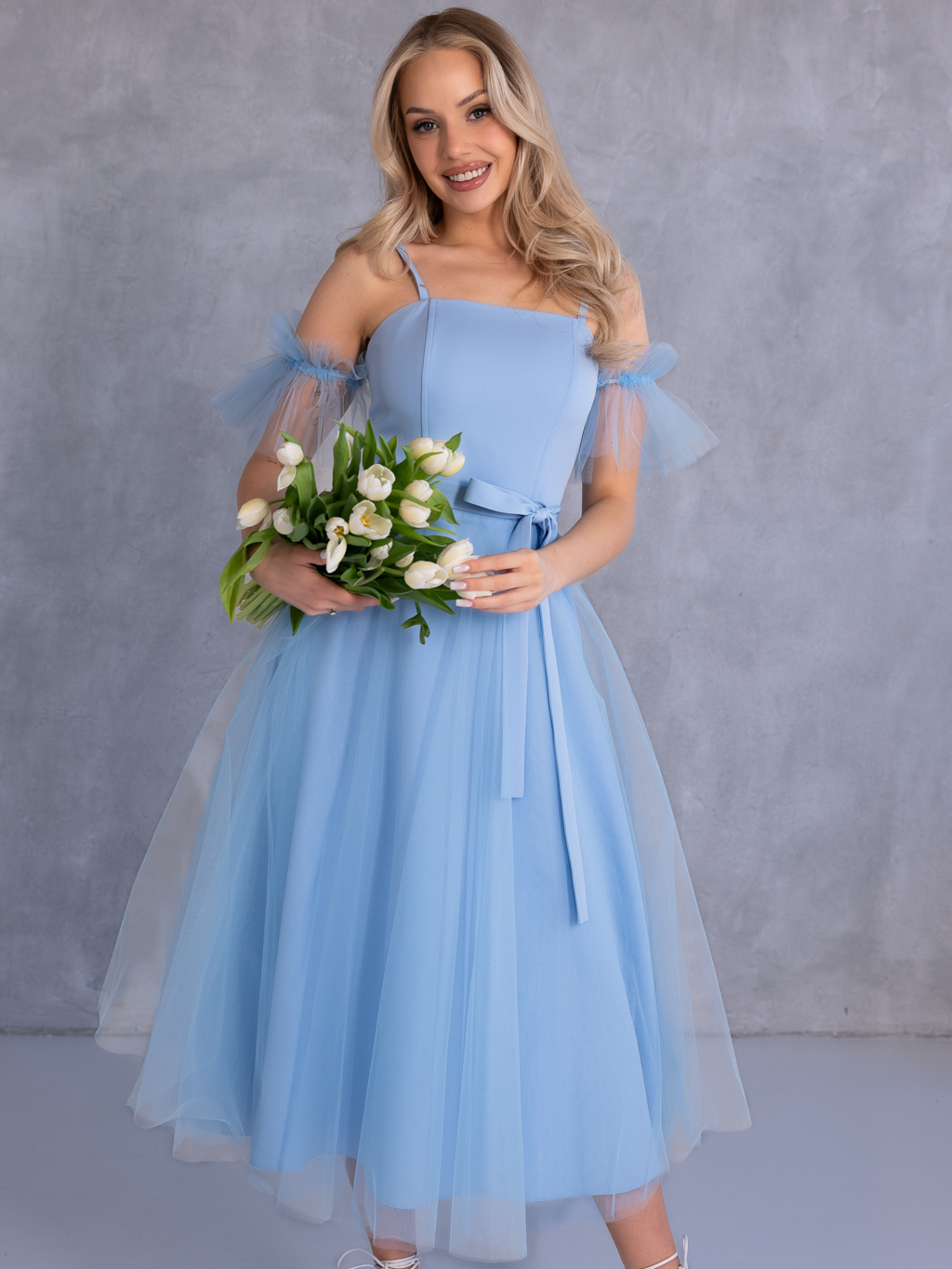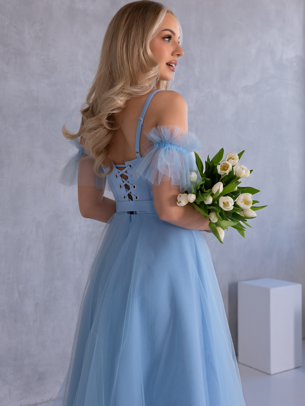 SUKIENKA Tiulowa GORSETOWA Ramiączka MIRABELLA - błękit