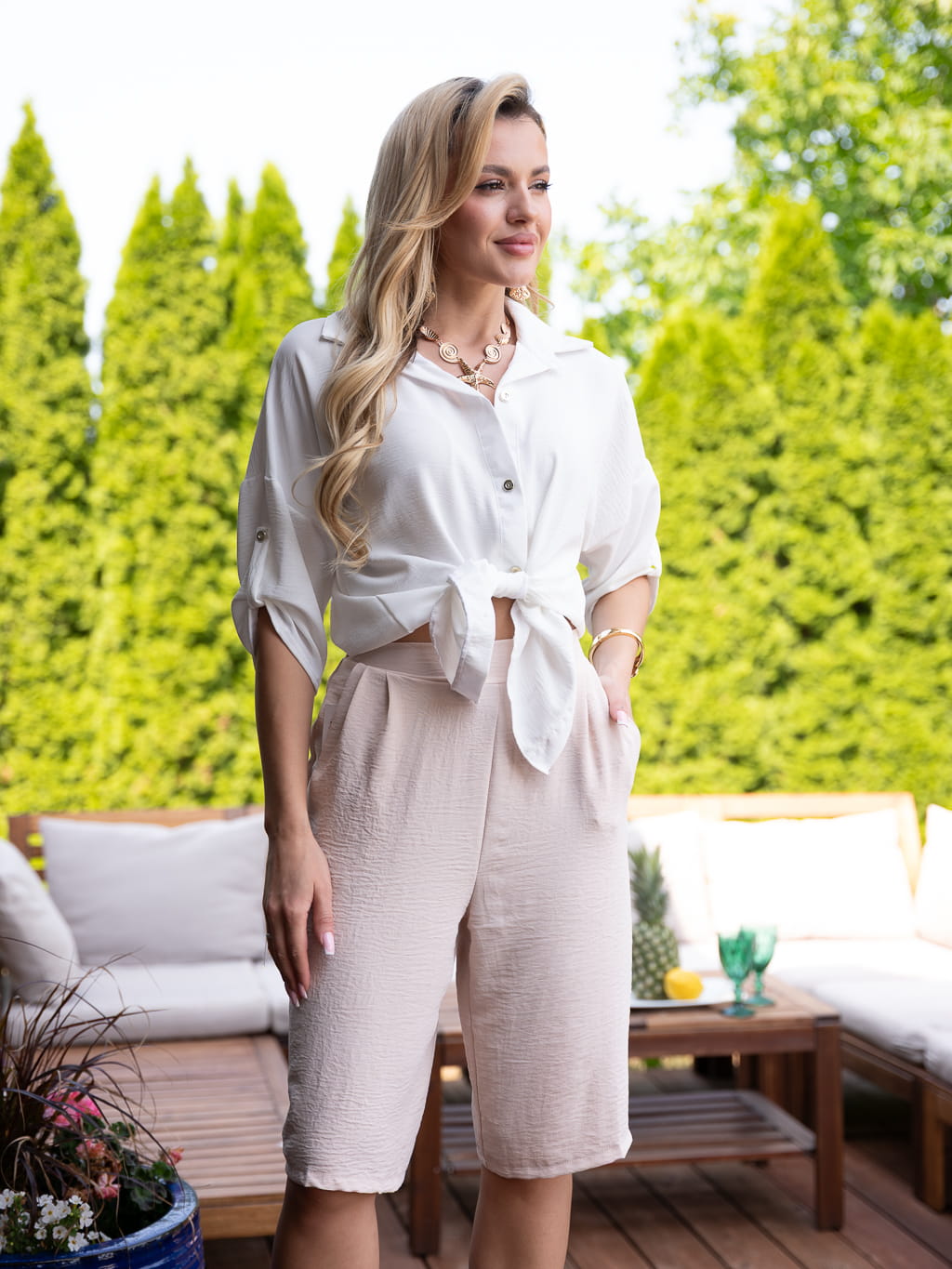 Spodenki BERMUDY na gumce MILA - ecru