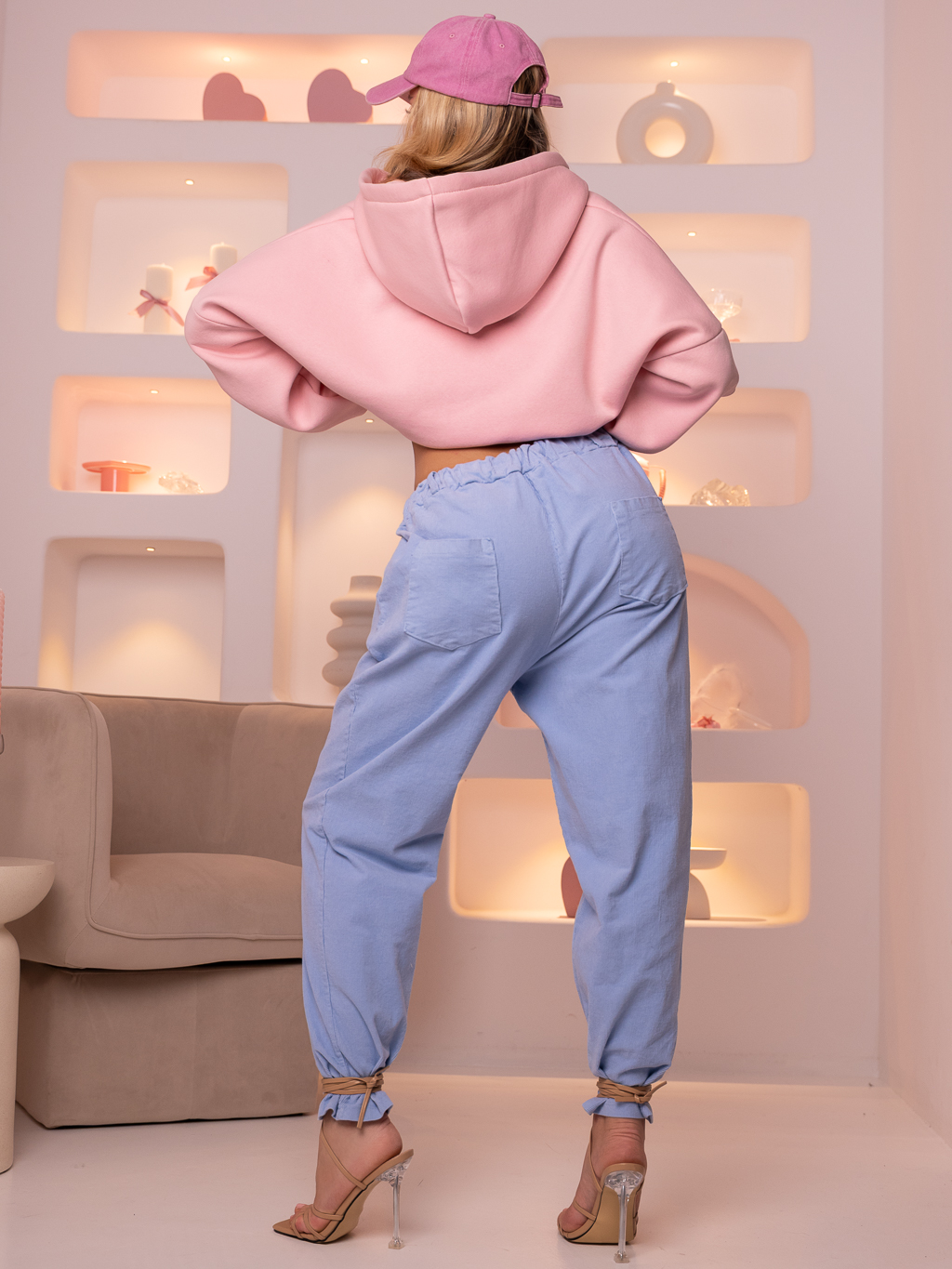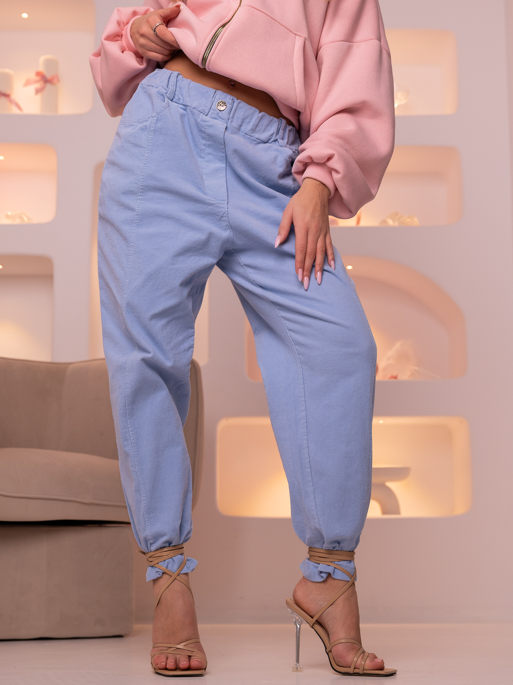 Spodnie SZTRUKSOWE Luźne Przeszycia DILARA - Błękit