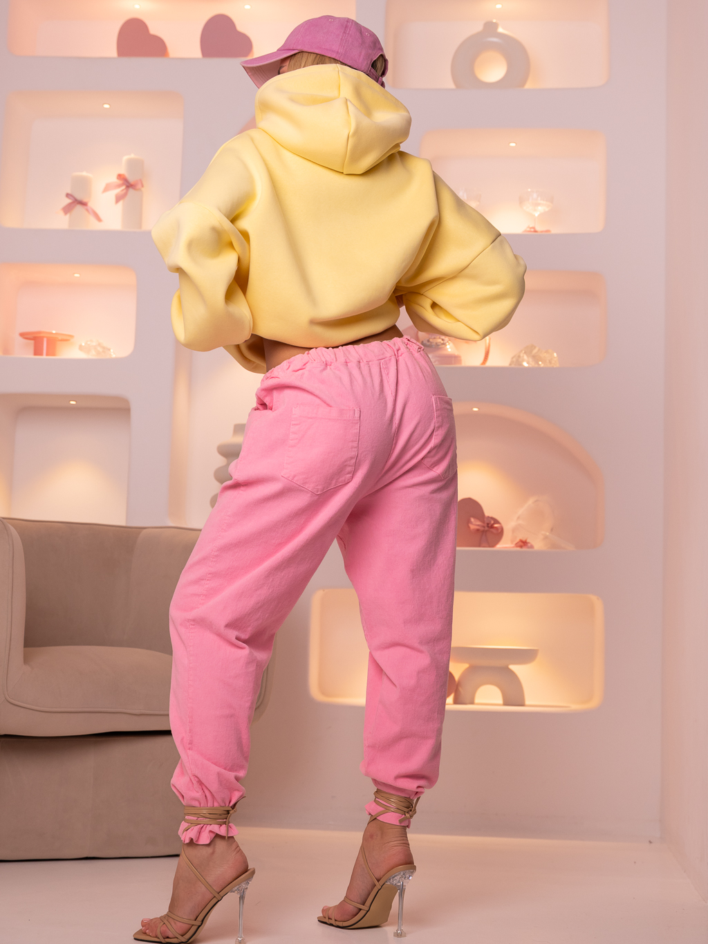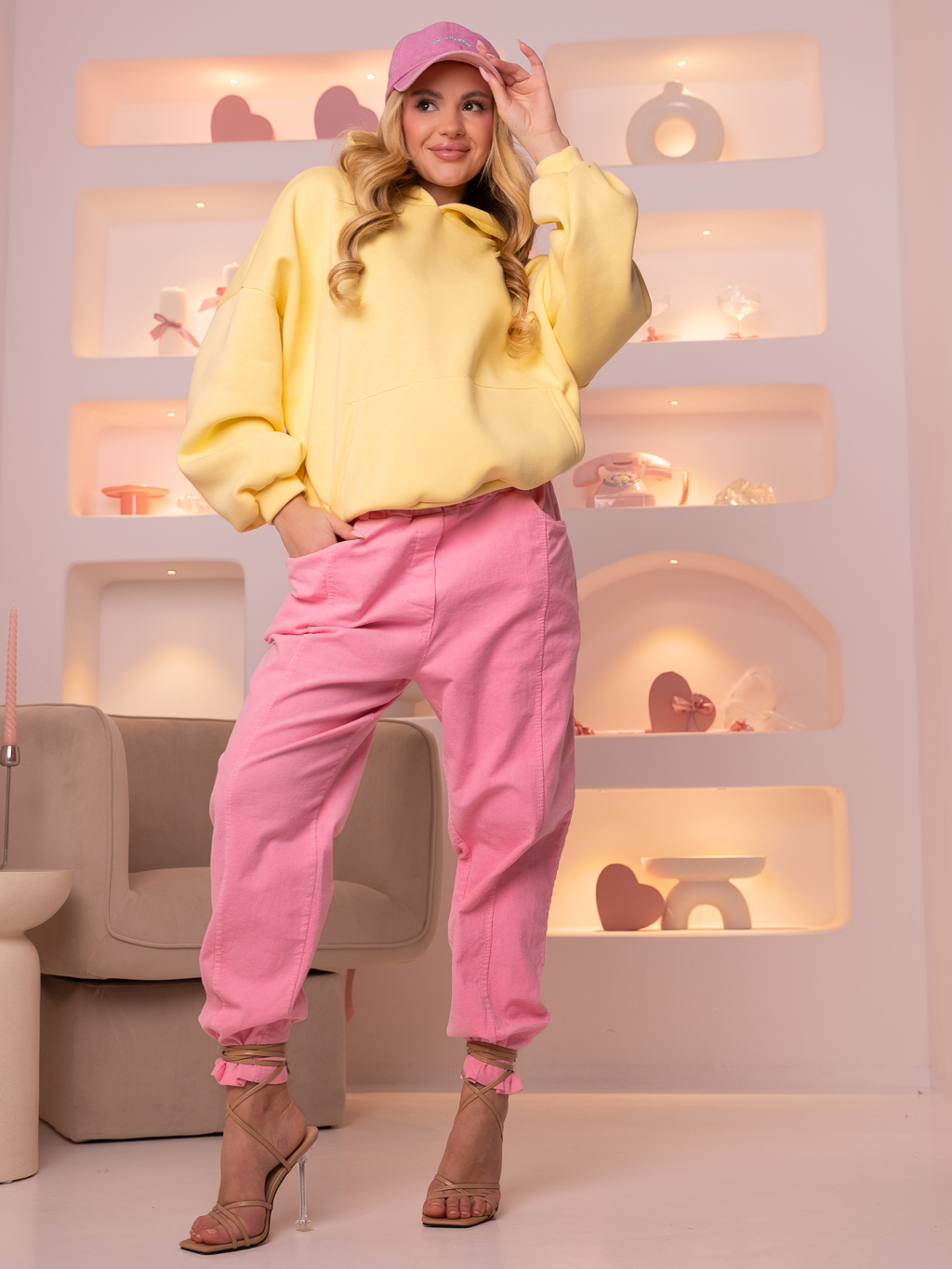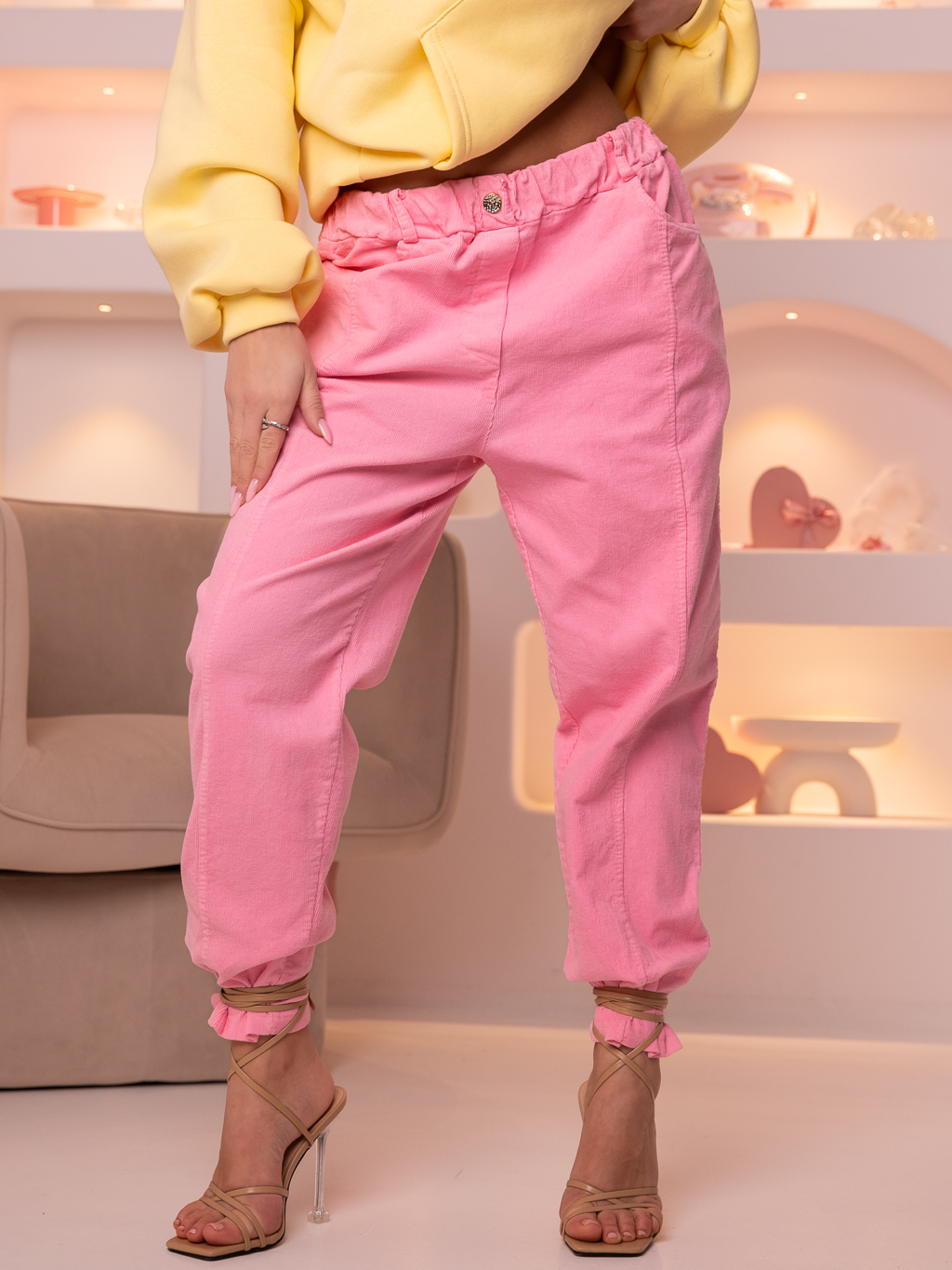 Spodnie SZTRUKSOWE Luźne Przeszycia DILARA - Róż
