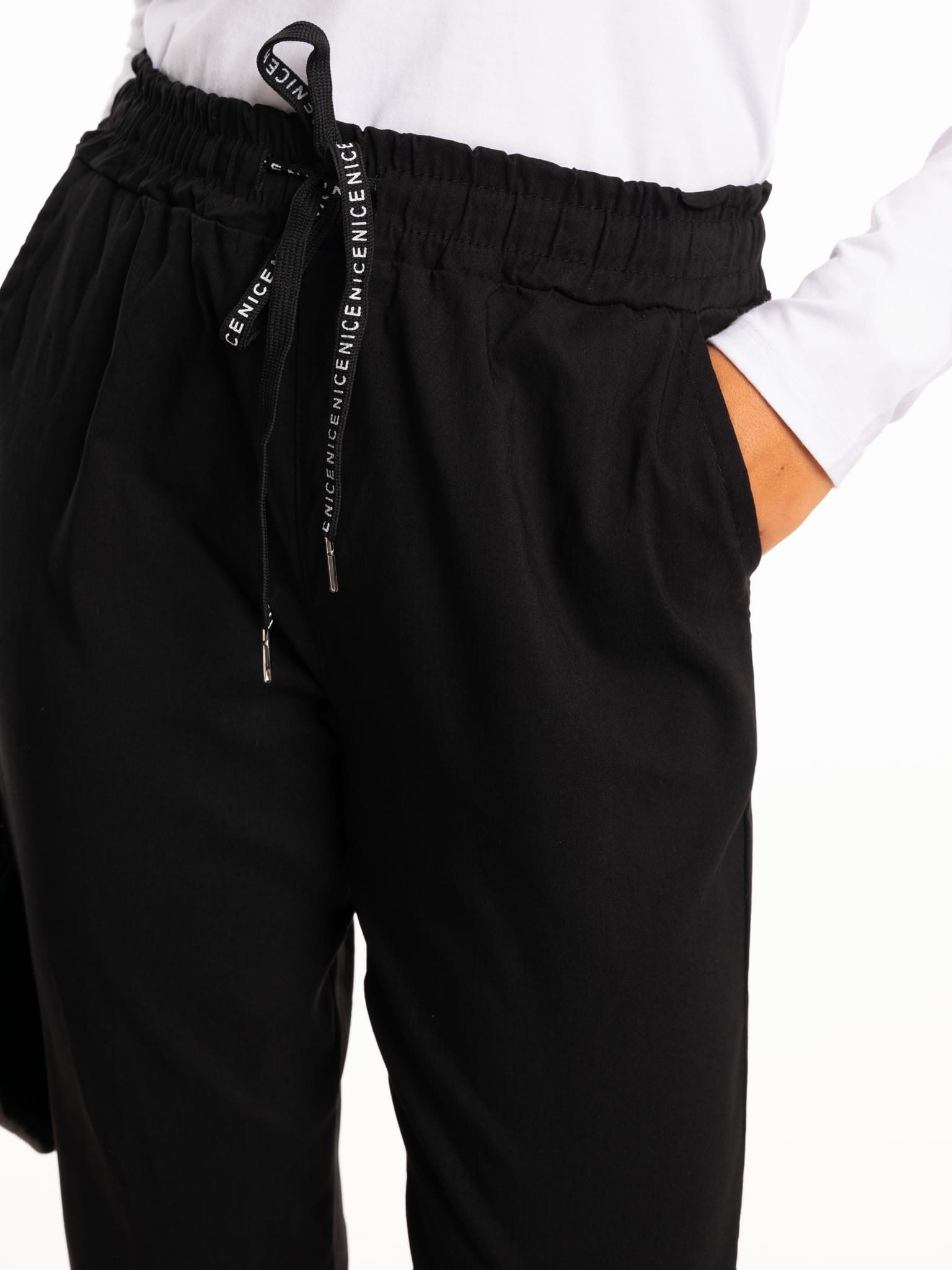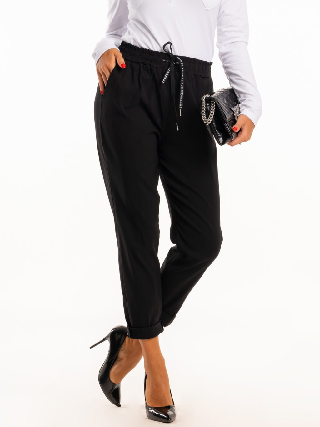 Elastyczne spodnie cygaretki. Pas na gumce. Idealny wybór na co dzień.