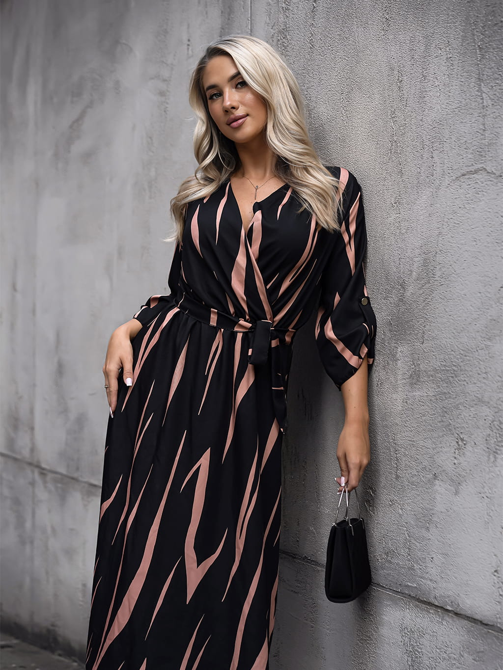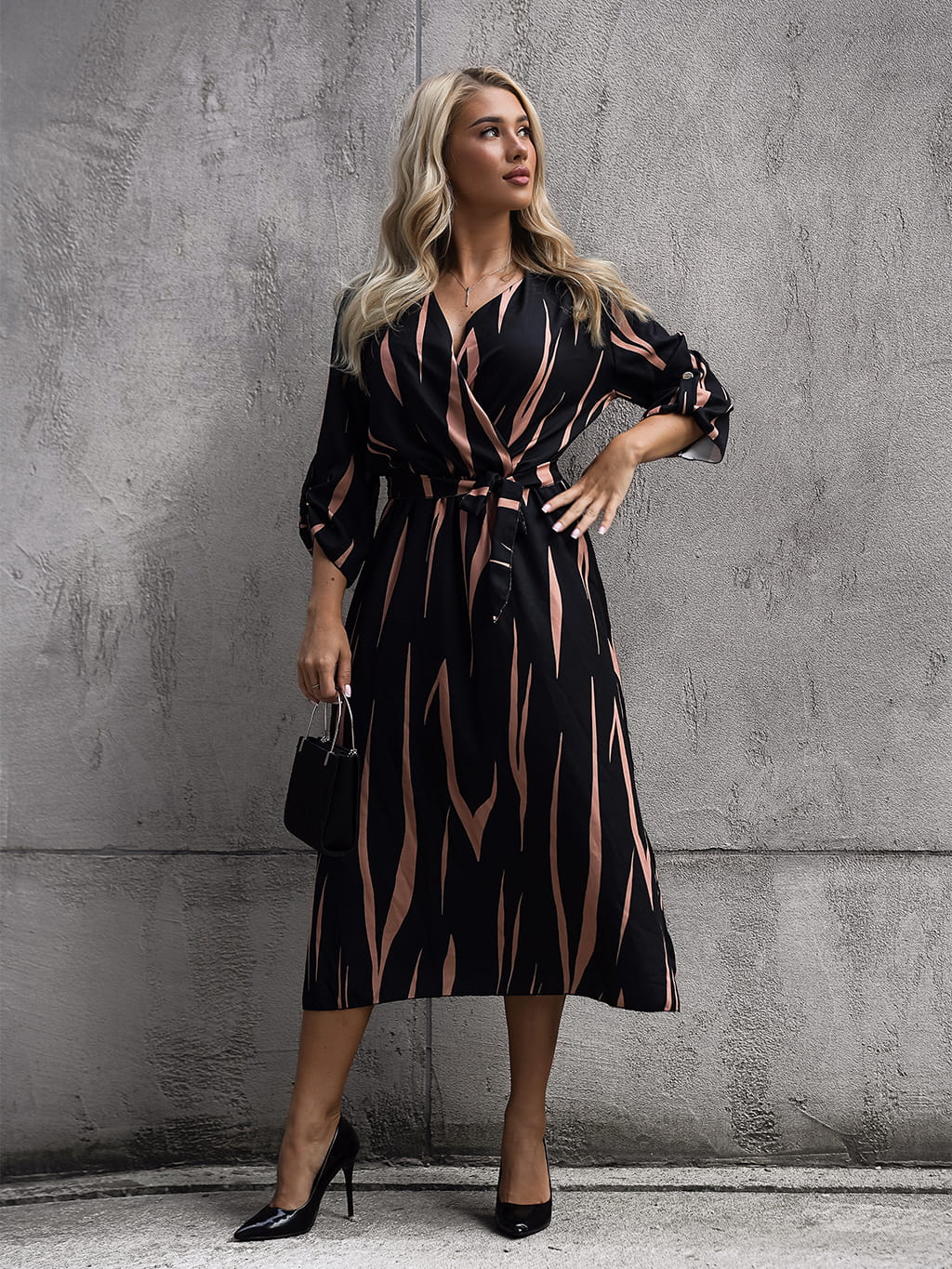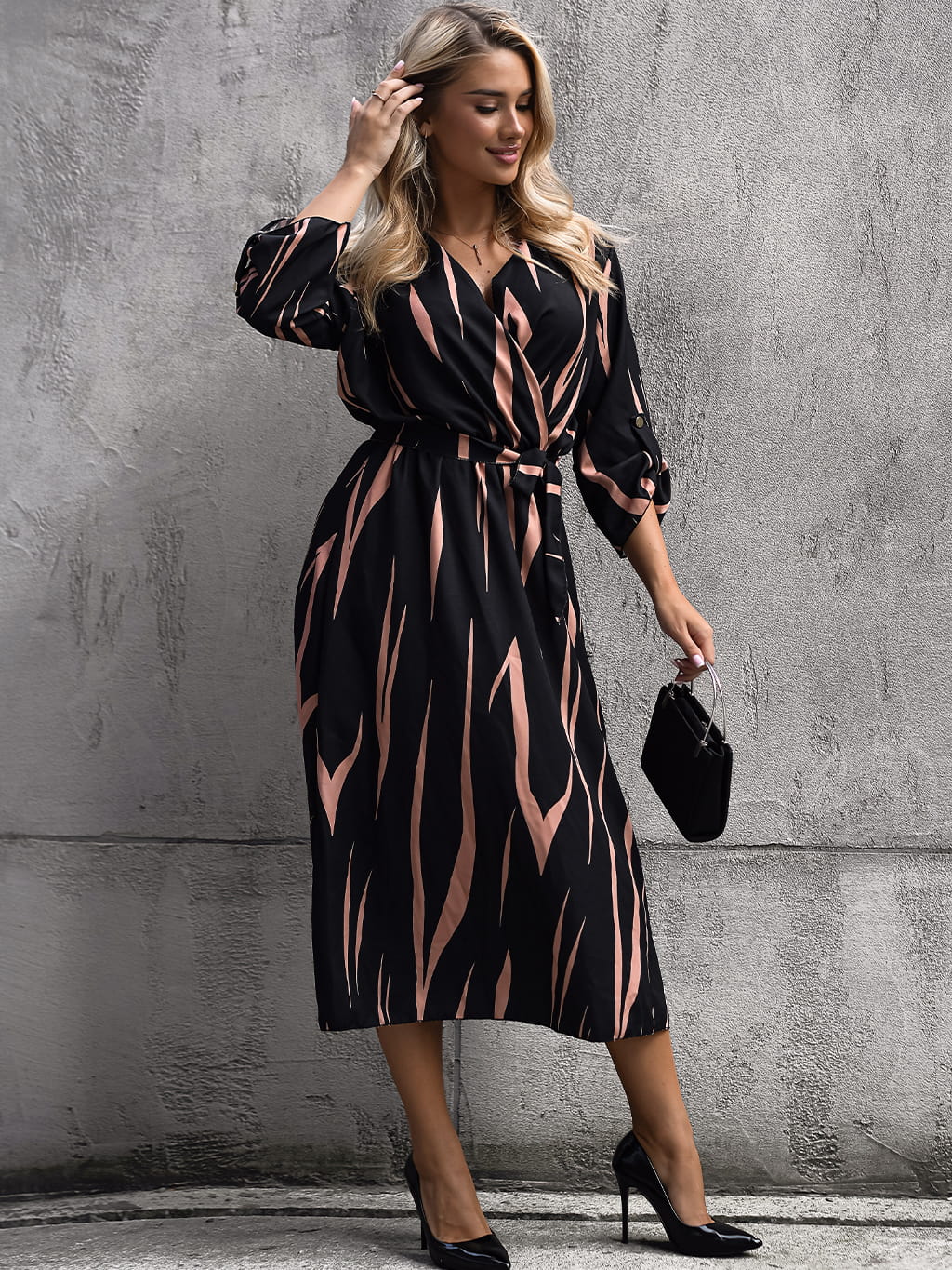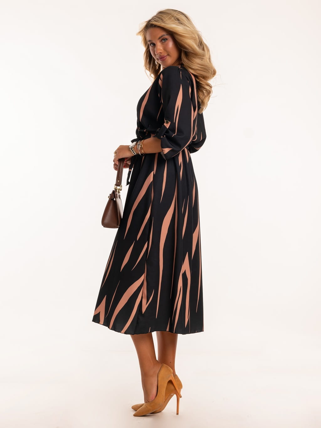 Sukienka kopertowa midi - karmel