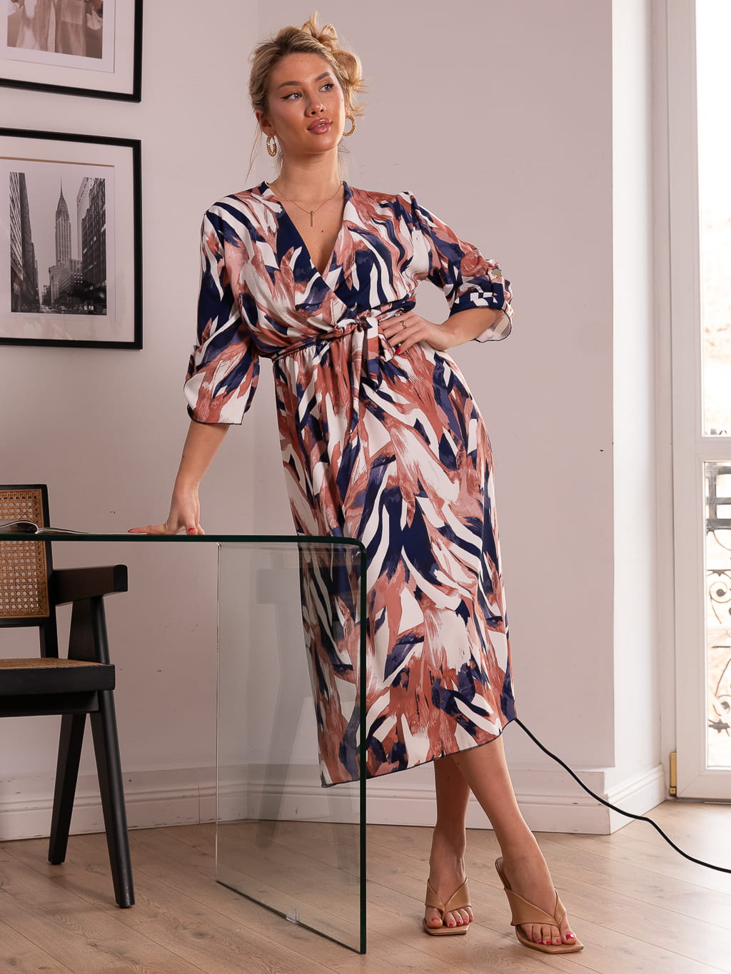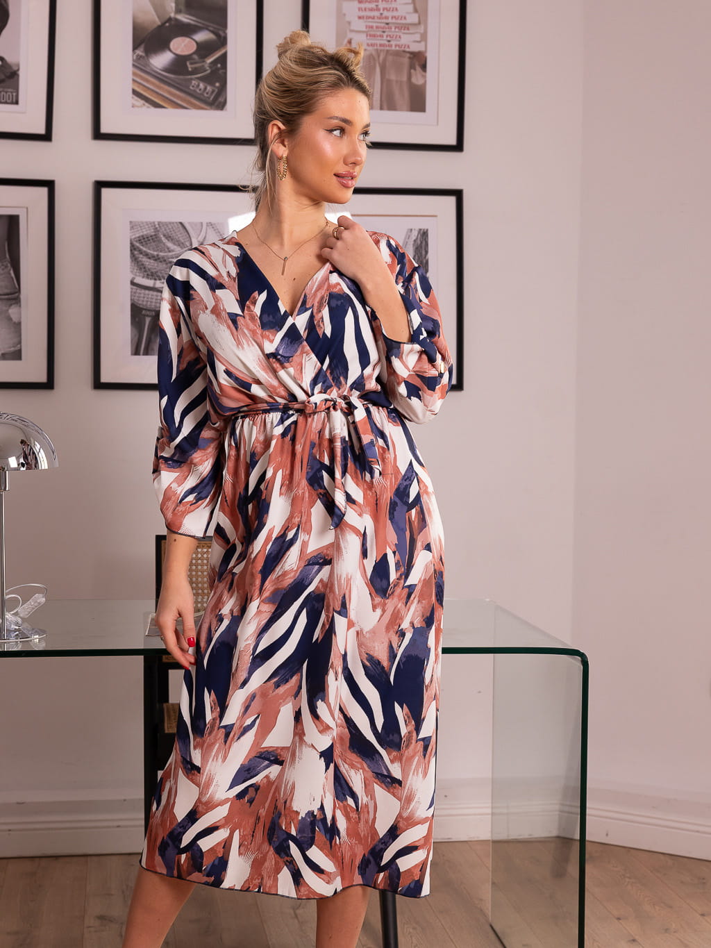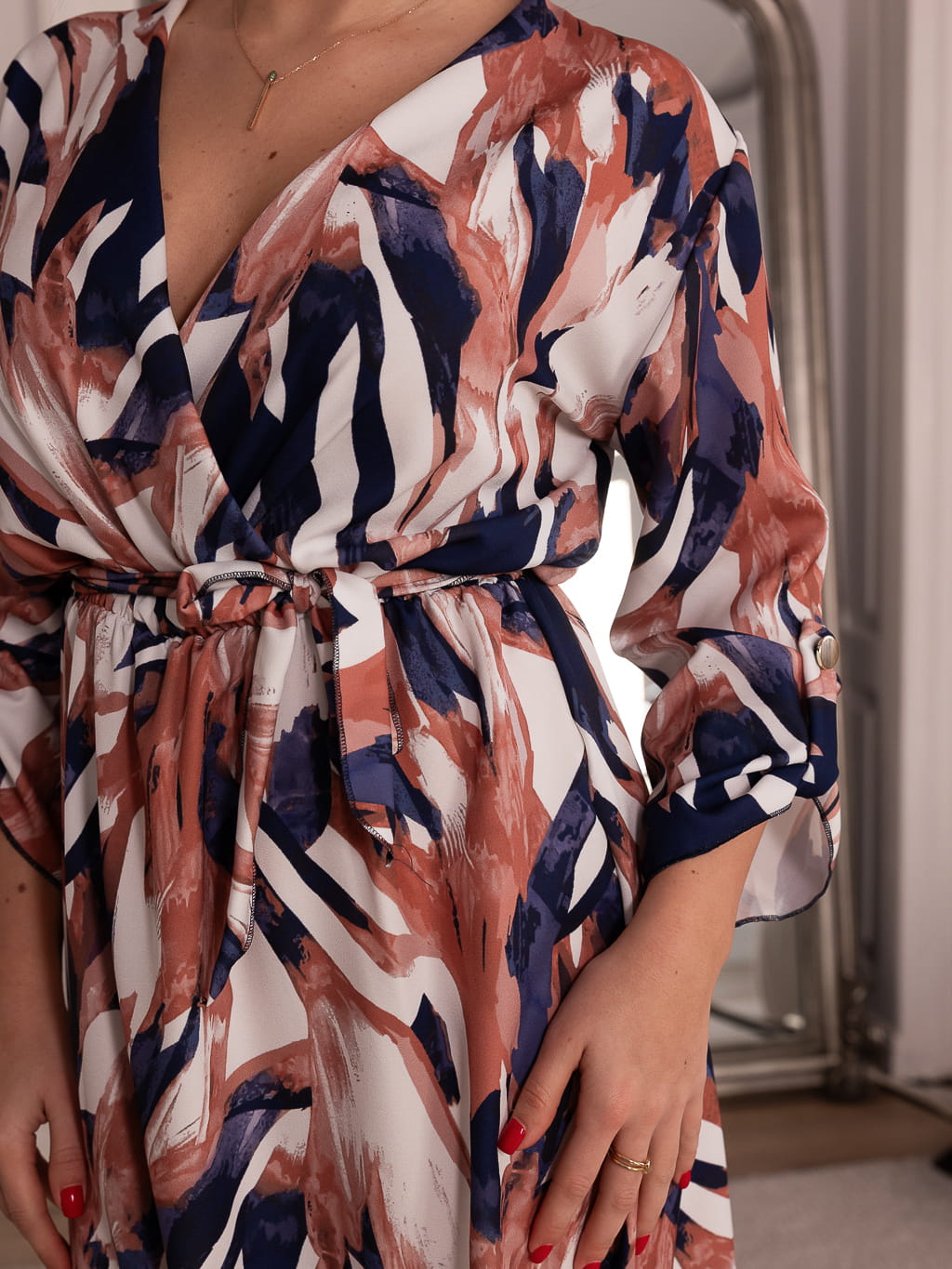 Sukienka kopertowa midi - pastel beige