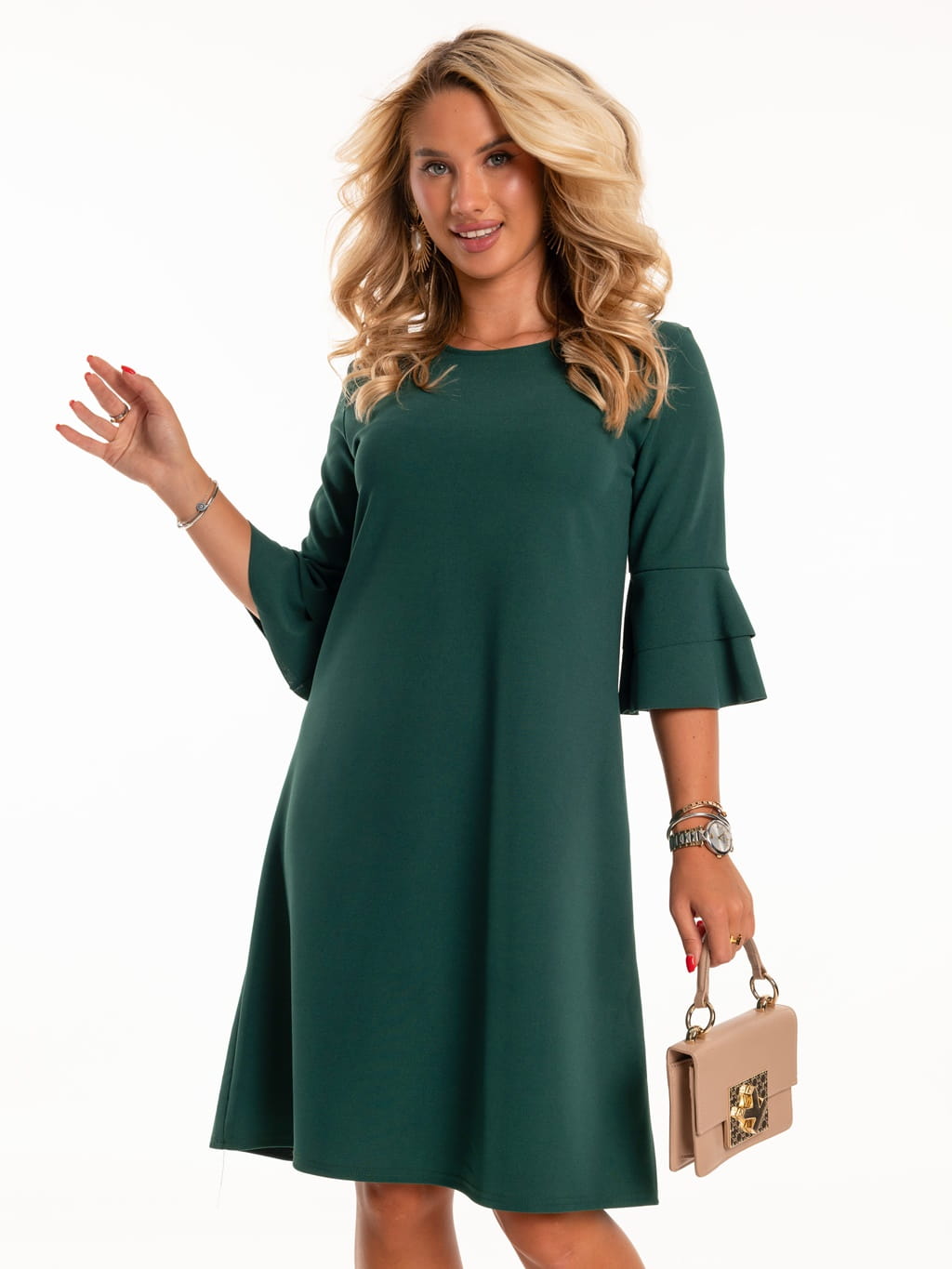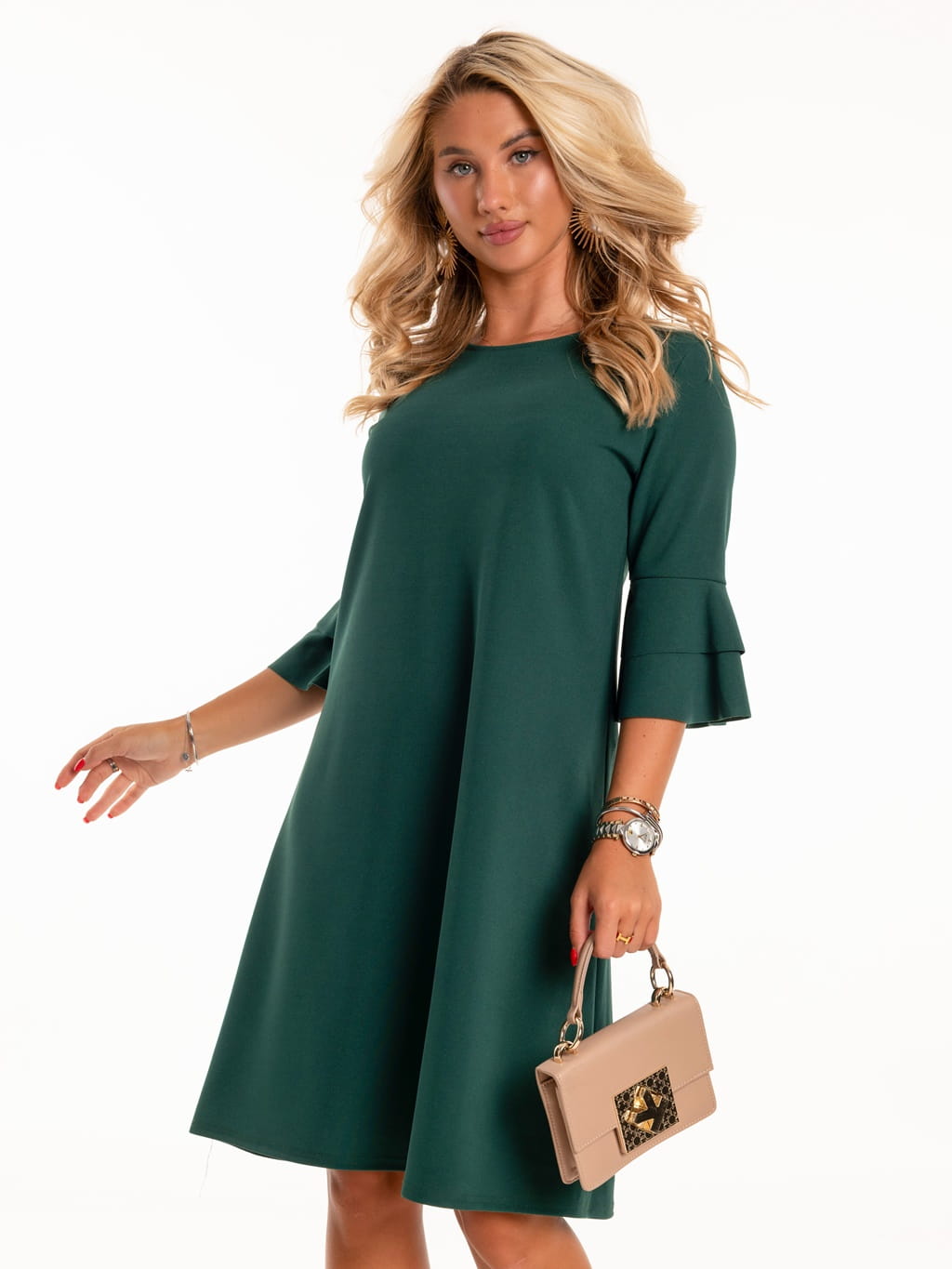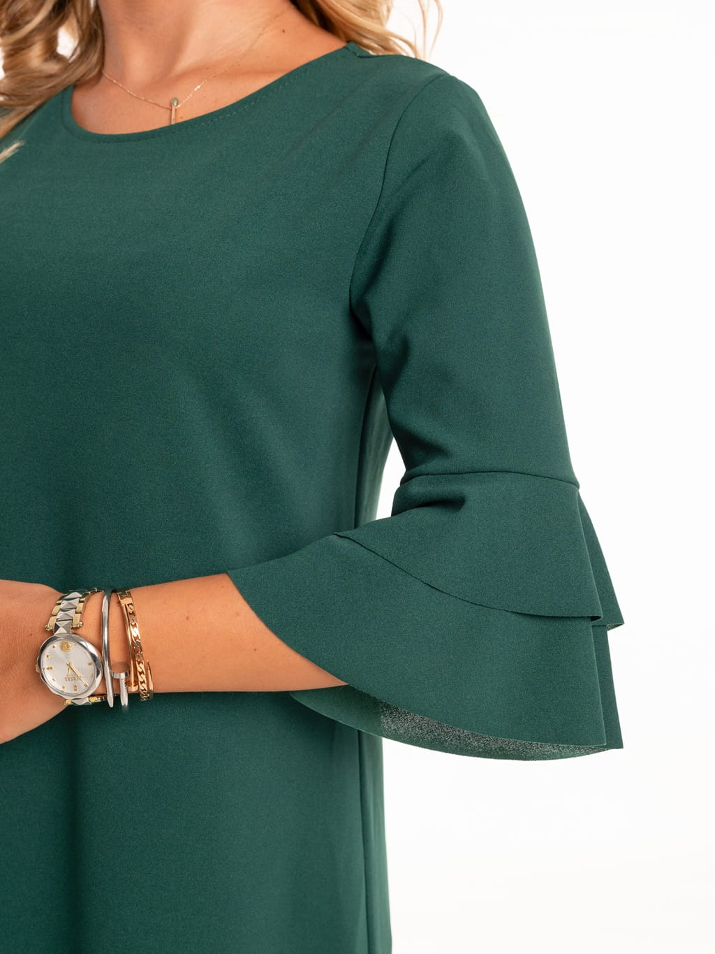 Sukienka z falbankami na rękawie - szmaragd
