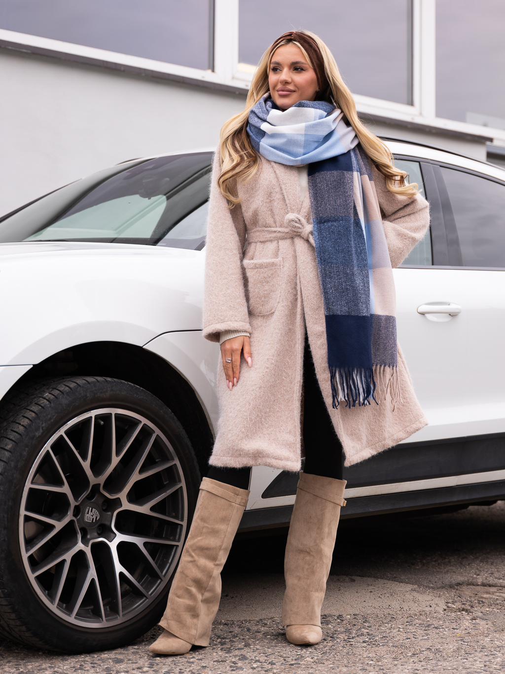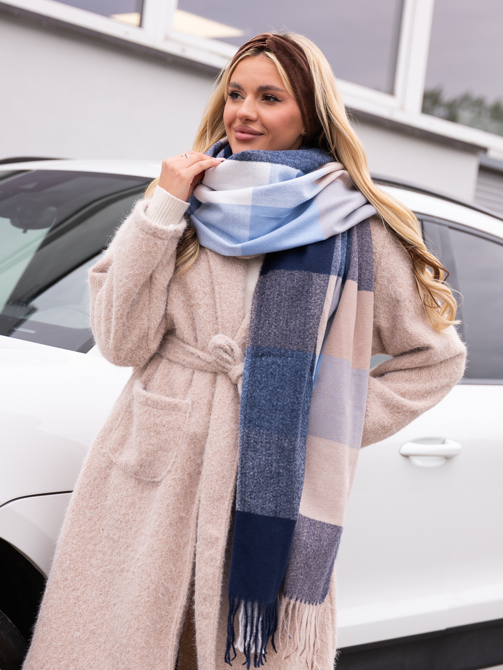 Dodaj do swojej garderoby stylowego akcentu z naszym szalem w ponadczasową kratę! Wykonany z miękkiego, przyjemnego w dotyku materiału, otuli Cię w chłodne dni zapewniając komfort i ciepło. Klasyczna krata w różnych kolorach sprawia, że szal pasuje zarówno do codziennych, jak i bardziej eleganckich stylizacji. Wykończony ozdobnymi frędzlami, dodaje lekkości i modnego charakteru. Zarzuć go na ramiona, owiń wokół szyi lub zawiąż w fantazyjny sposób!