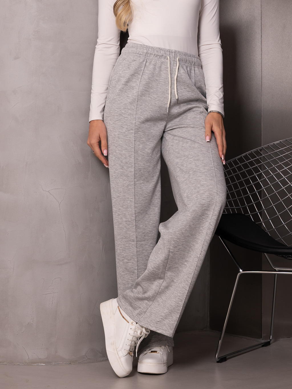Szerokie SPODNIE dresowe z przeszyciami RAINA - szary
