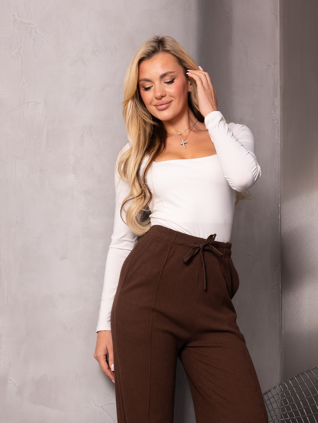 Szerokie SPODNIE w prążki z przeszyciami FAYE - brąz